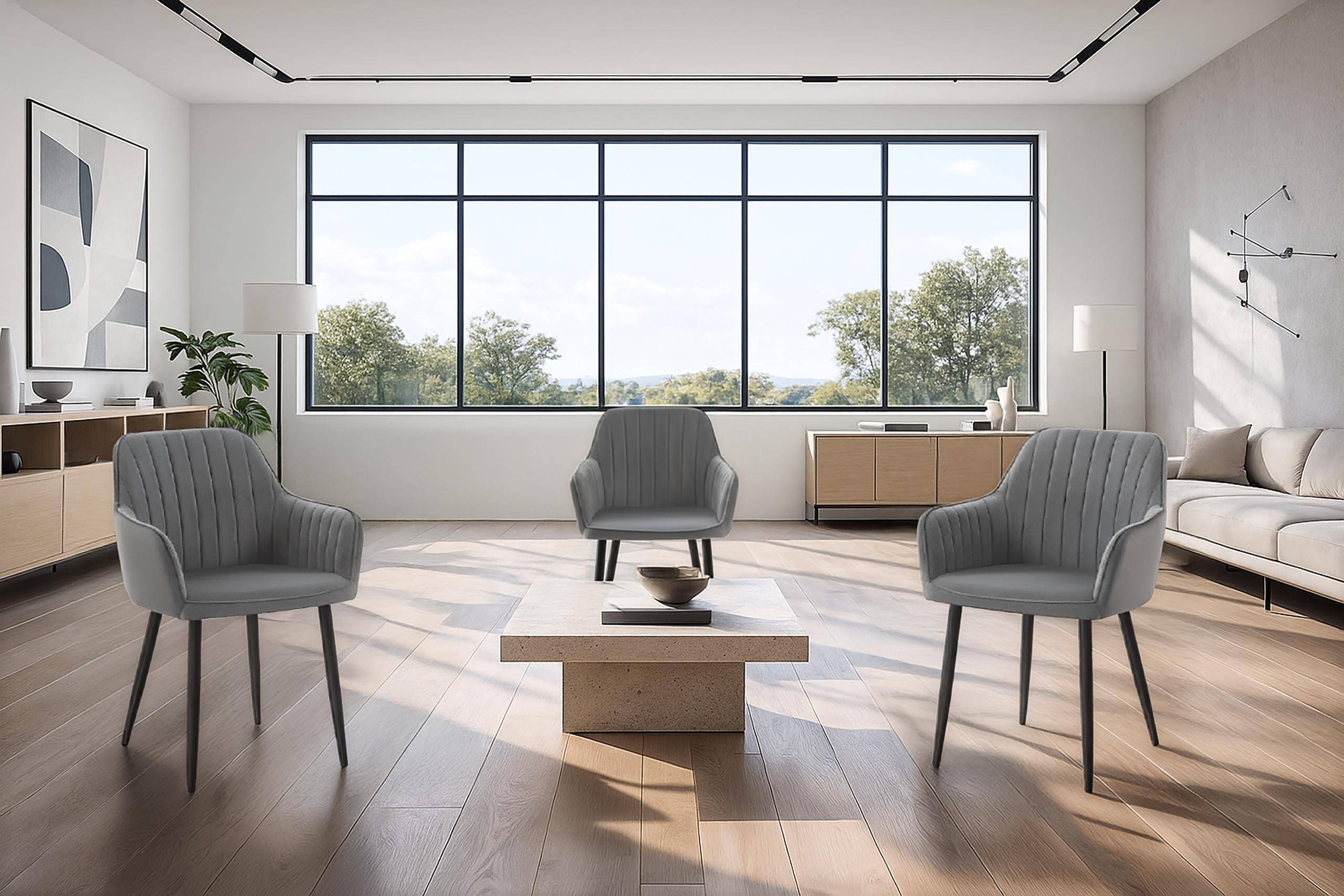 Модель KT203 Maria III у сірому кольорі — це універсальний та елегантний вибір для сучасних інтер'єрів, що поєднує зручність, м'якість оксамитової тканини та позачасовий дизайн.