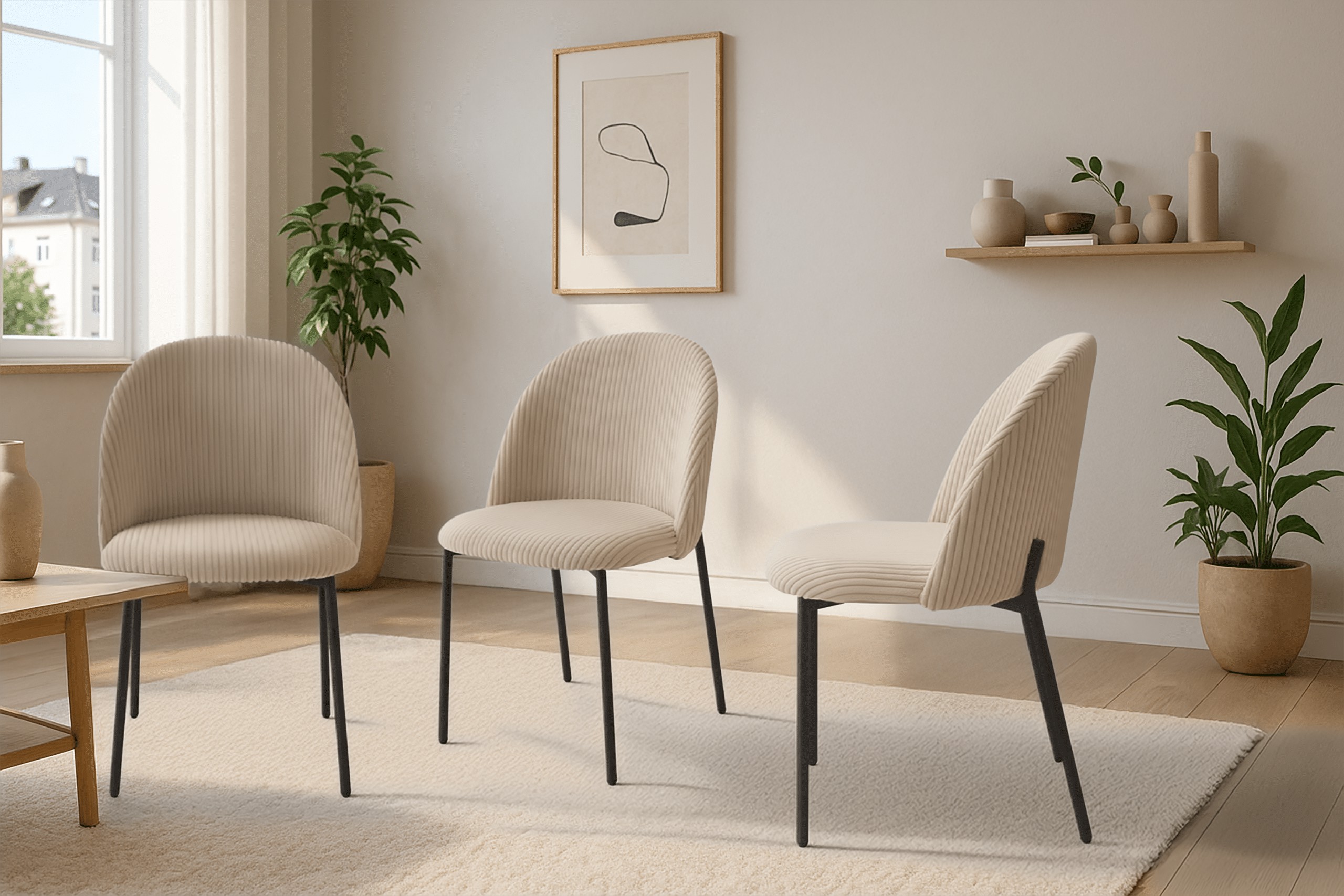 Стілець Ines — це поєднання сучасної форми, легкої конструкції та зручного сидіння, оббитого м'якою штруксовою тканиною. Завдяки універсальному дизайну він ідеально підійде для кухні, їдальні та вітальні.
