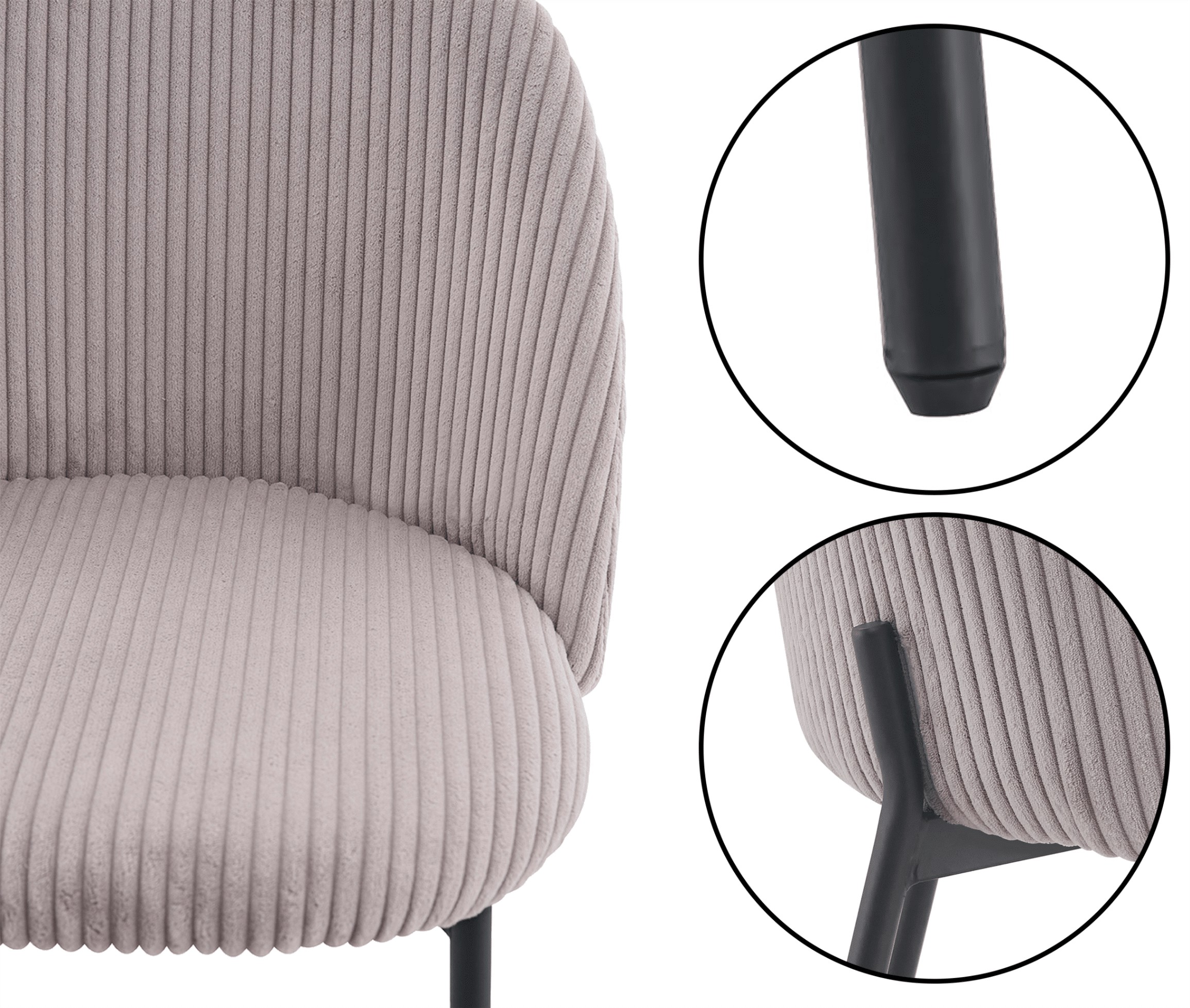 Тканина з вельвету надає стільцю виняткового характеру, забезпечуючи м'якість, міцність та приємну на дотик структуру. Модель Ines KT207 — це поєднання ретро-стилю з сучасним комфортом, ідеальне для інтер'єрів, що вимагають витонченої елегантності.