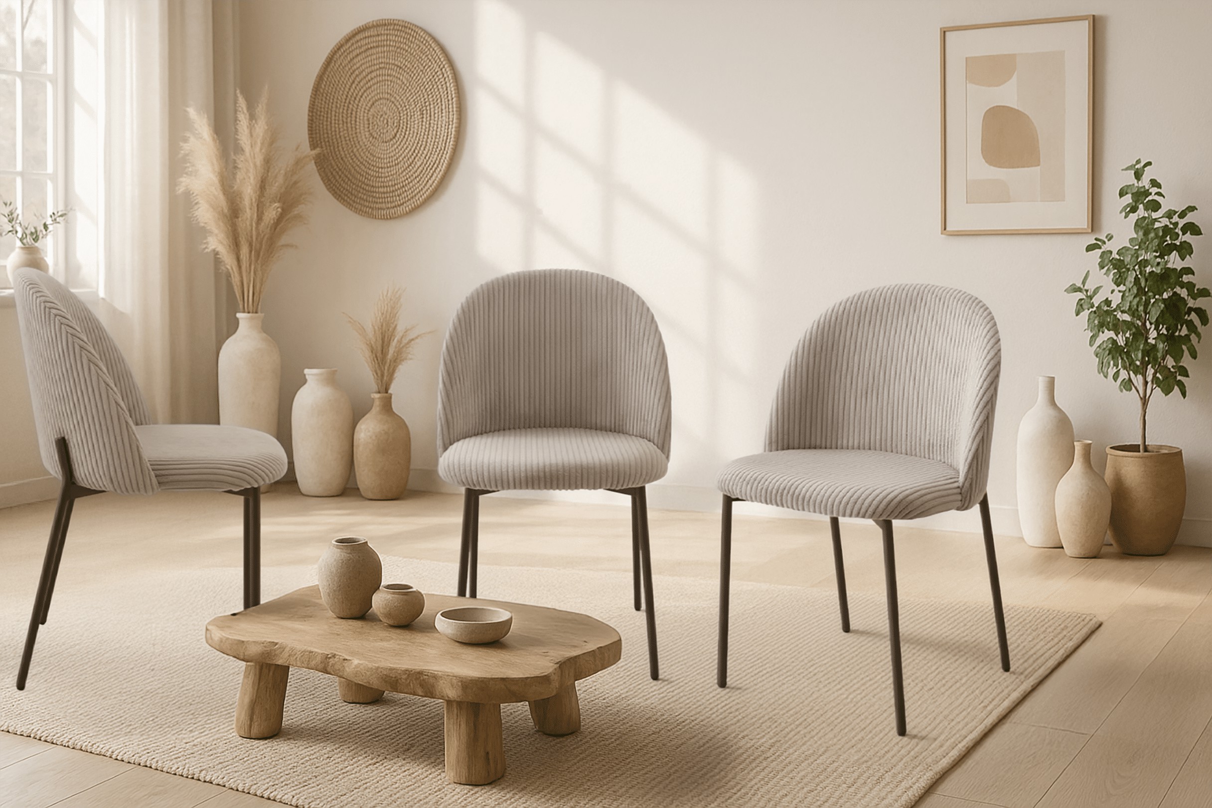 Сучасне крісло Ines поєднує легкість форм із зручністю щоденного використання. М'яке сидіння, оббите штруксовою тканиною, та стійкі металеві ніжки роблять цю модель ідеальним доповненням до інтер'єру вітальні, кухні та їдальні.