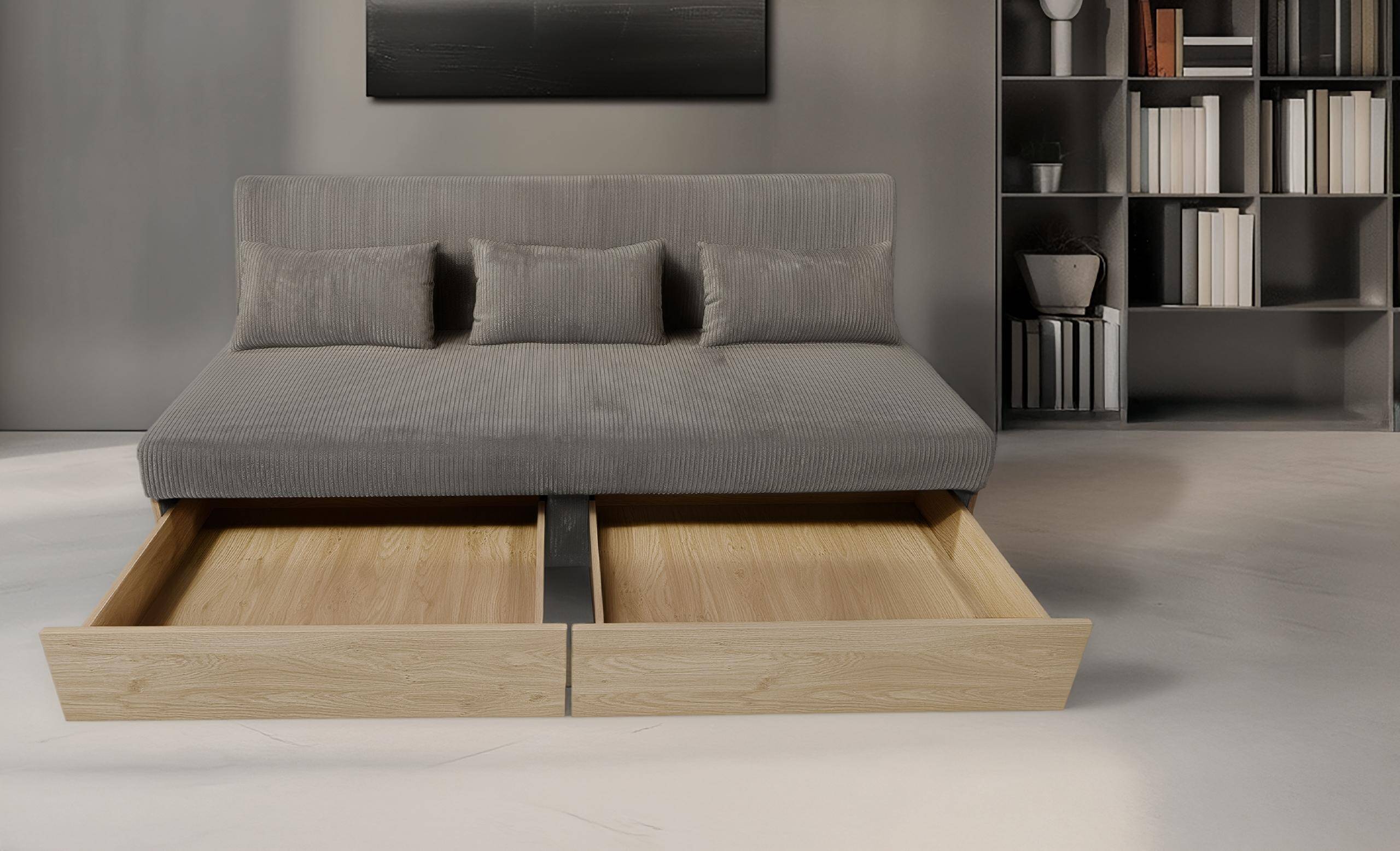 Диван Daisy з оббивкою зі штруксу — це зручне та практичне рішення, яке забезпечує комфортний відпочинок протягом дня та функціональне місце для сну, а також пропонує додатковий простір для зберігання речей.