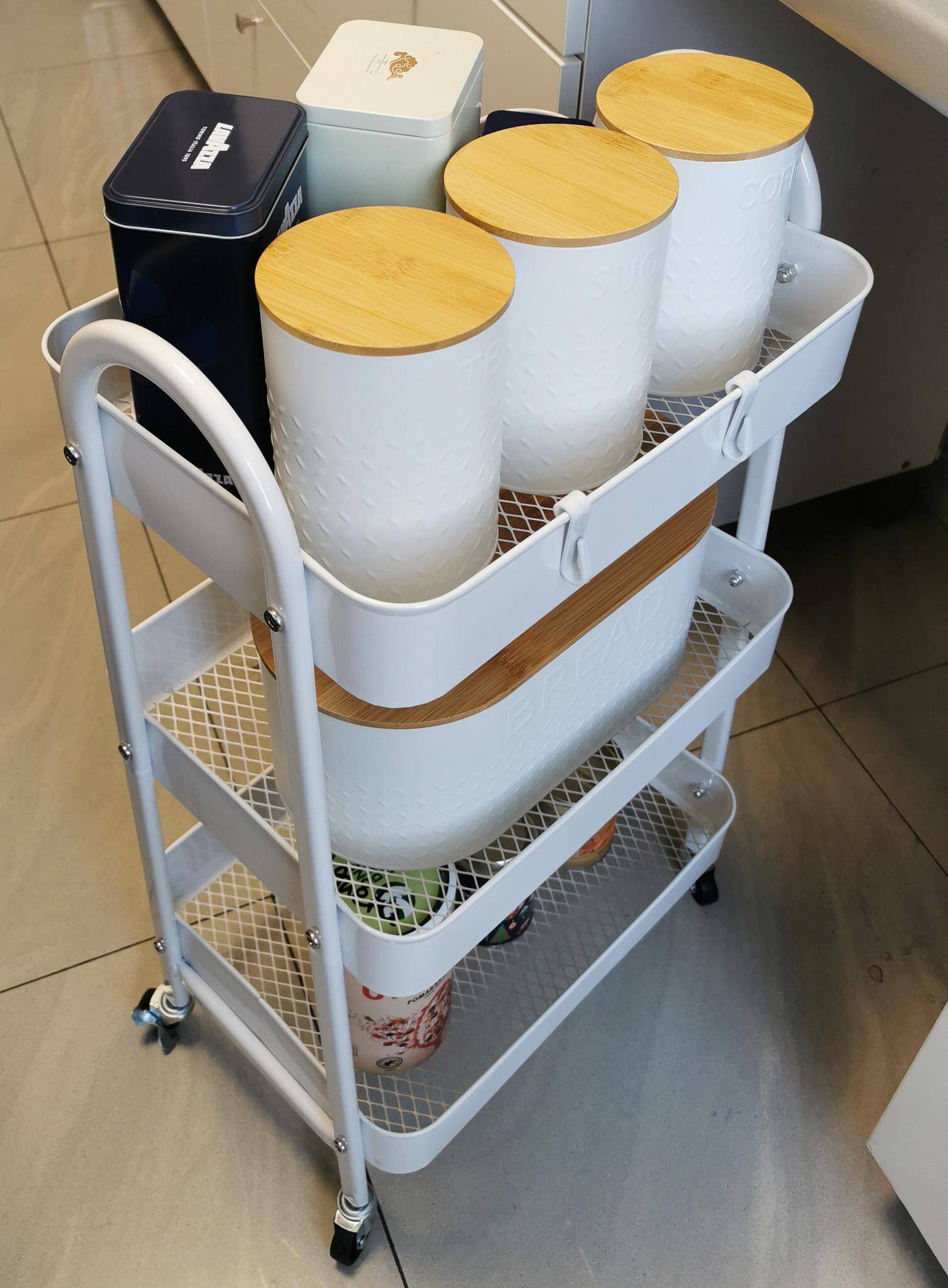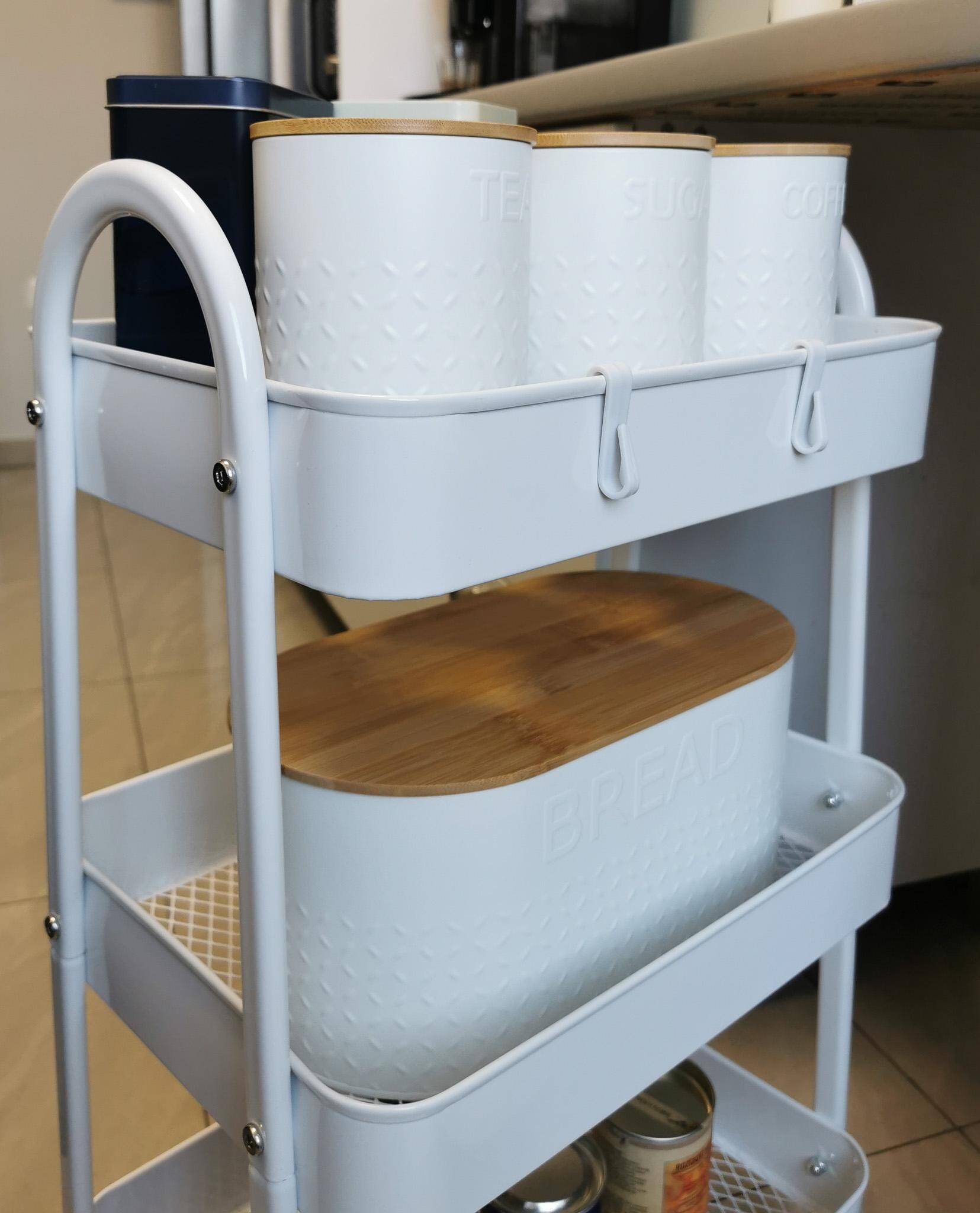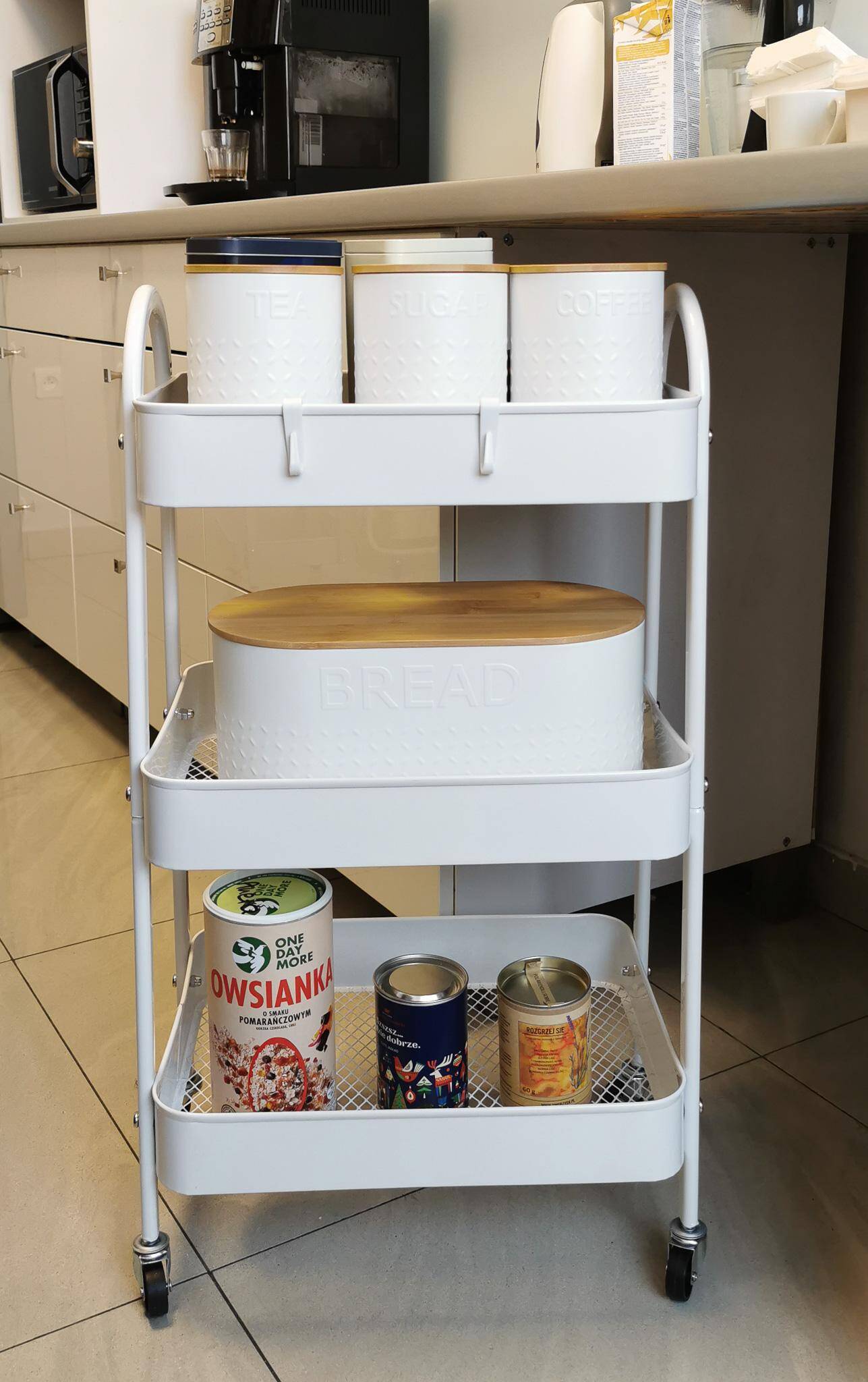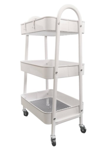 3-рівневий металевий візок білого кольору – це елегантний і практичний предмет меблів, який ідеально вписується в сучасні та класичні інтер'єри. Завдяки компактним розмірам і мобільній конструкції він чудово підійде для кухні, ванної кімнати, гардеробної або офісу.