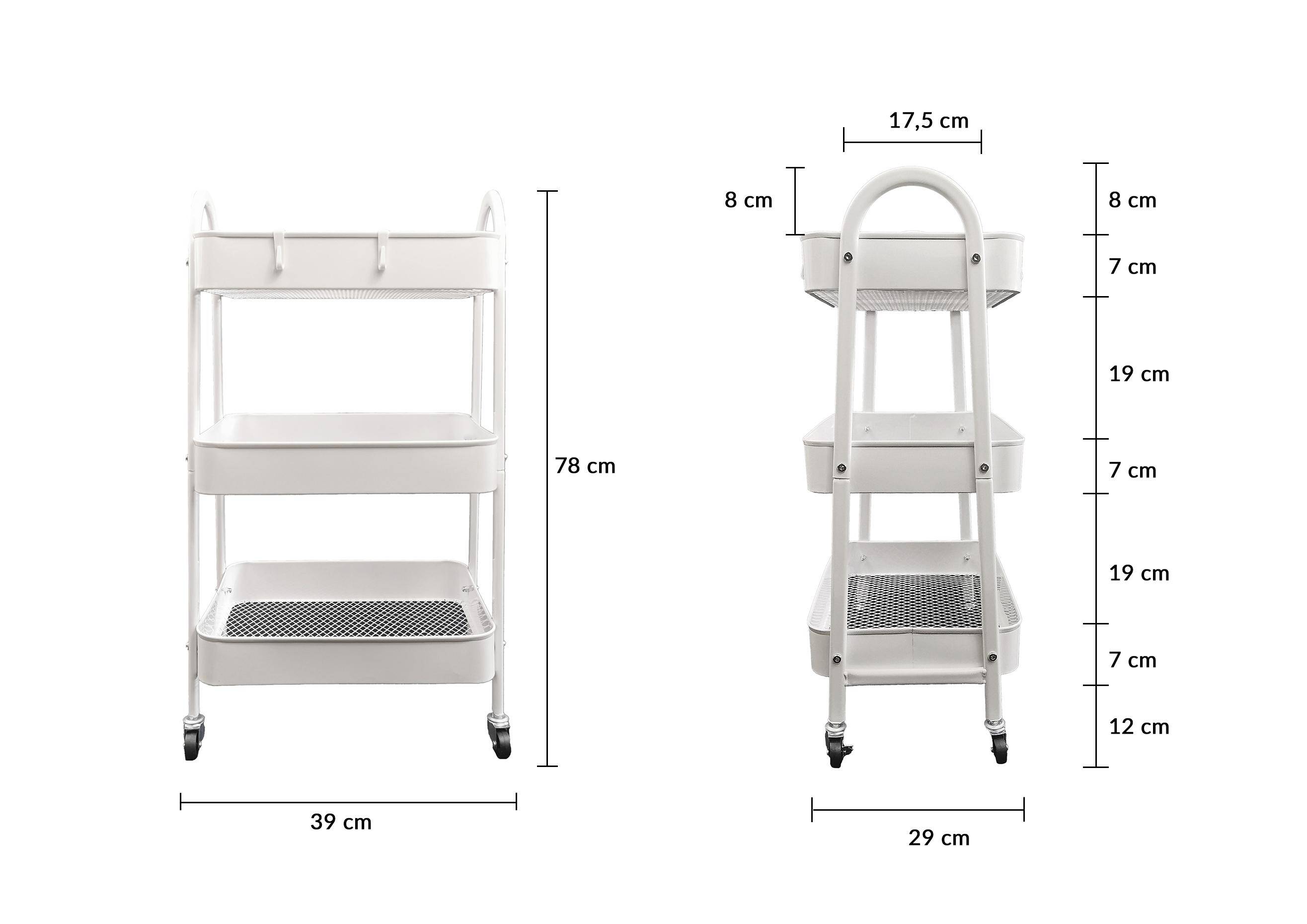 Металевий візок 79 см білого кольору — це універсальне та елегантне рішення, яке допоможе підтримувати порядок у будь-якій кімнаті та додасть їй естетичного вигляду.