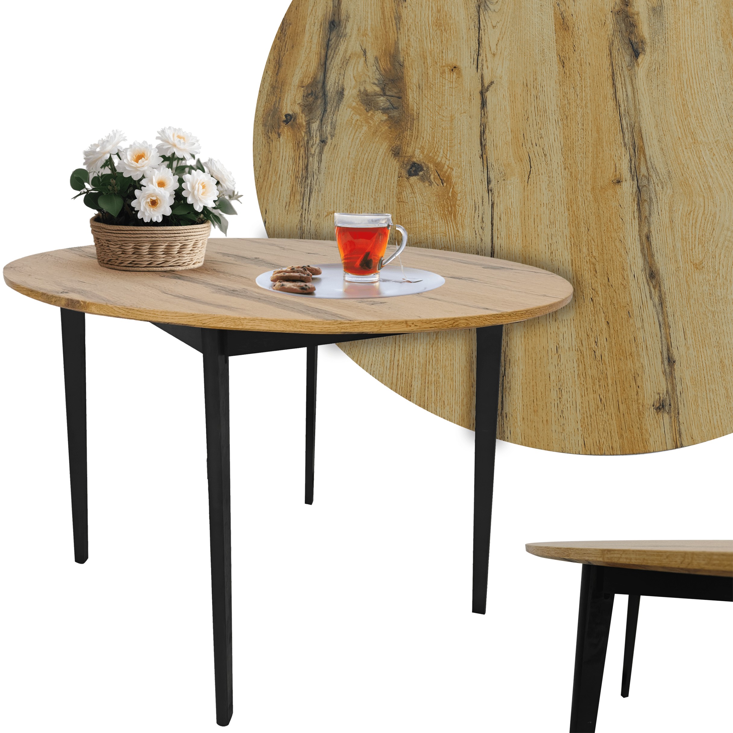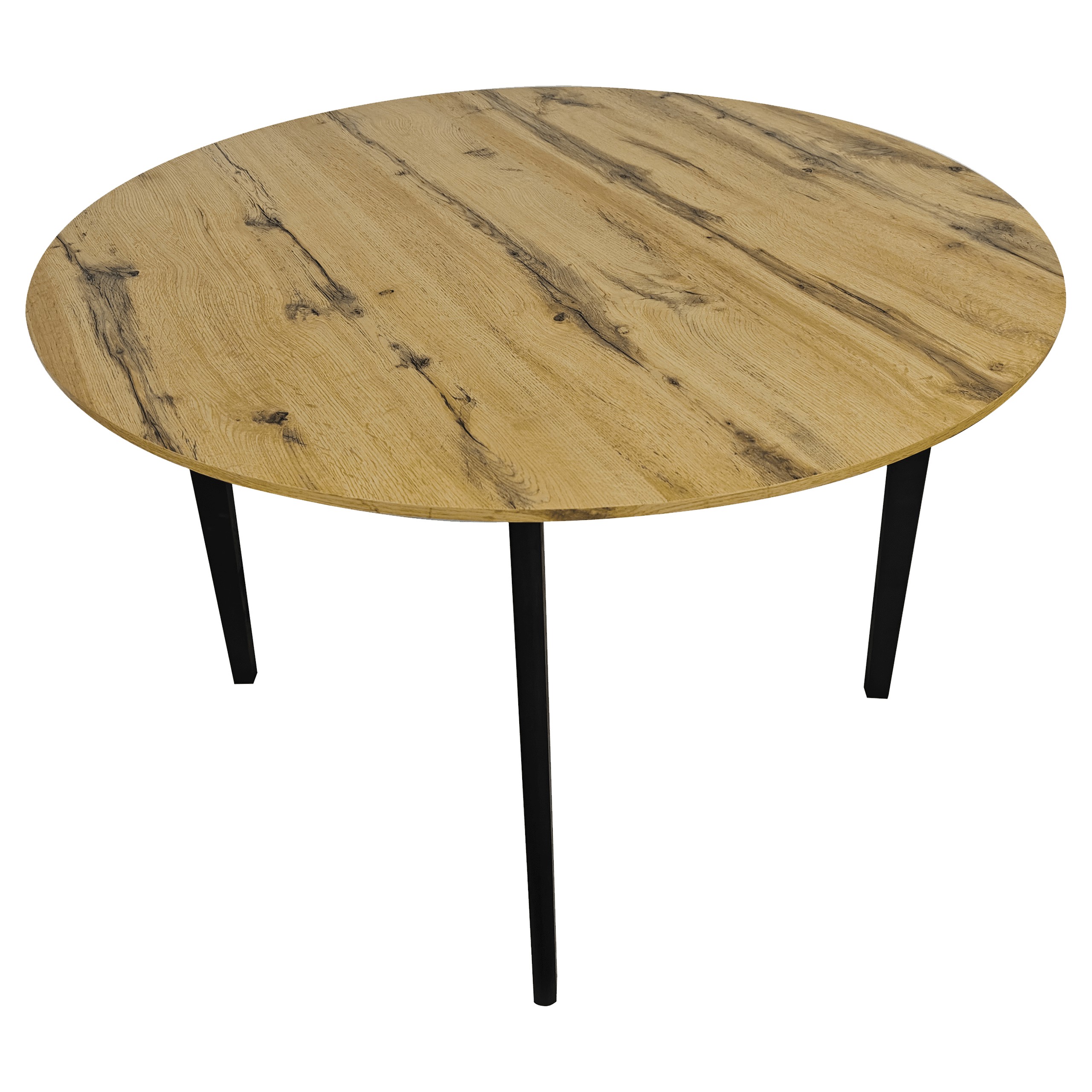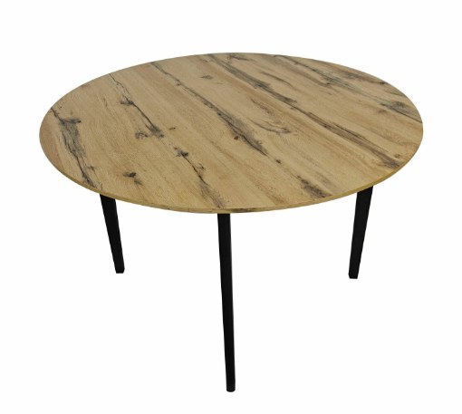 Круглий стіл у стилі лофт кольору рустикального дуба, ідеальний для вітальні, їдальні або кухні. Мінімалістичний дизайн в індустріальному стилі дозволяє столу гармонійно вписатися в різноманітні інтер'єри.