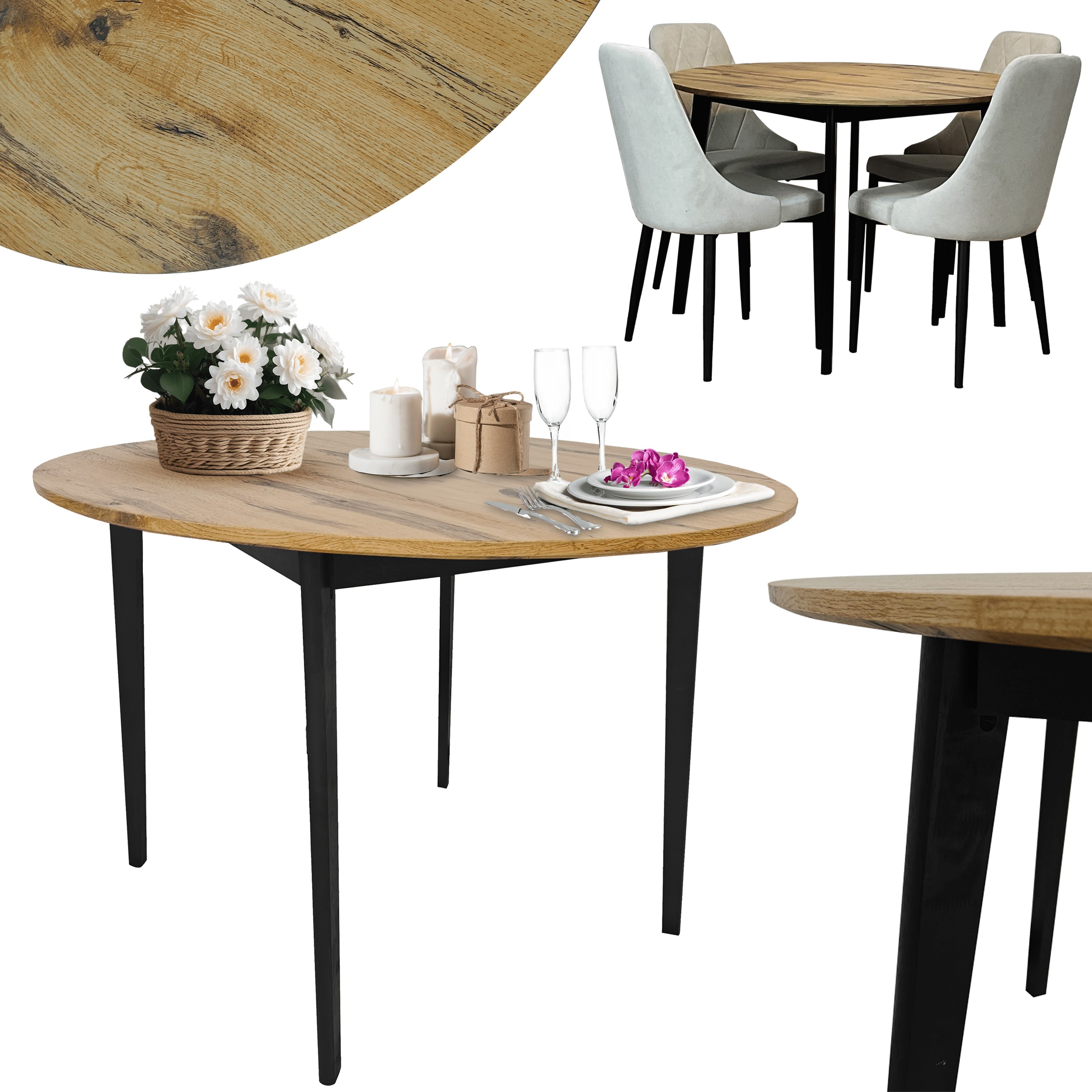 Стіл Ø110 см простий у монтажі та чудово підходить також для невеликих приміщень.