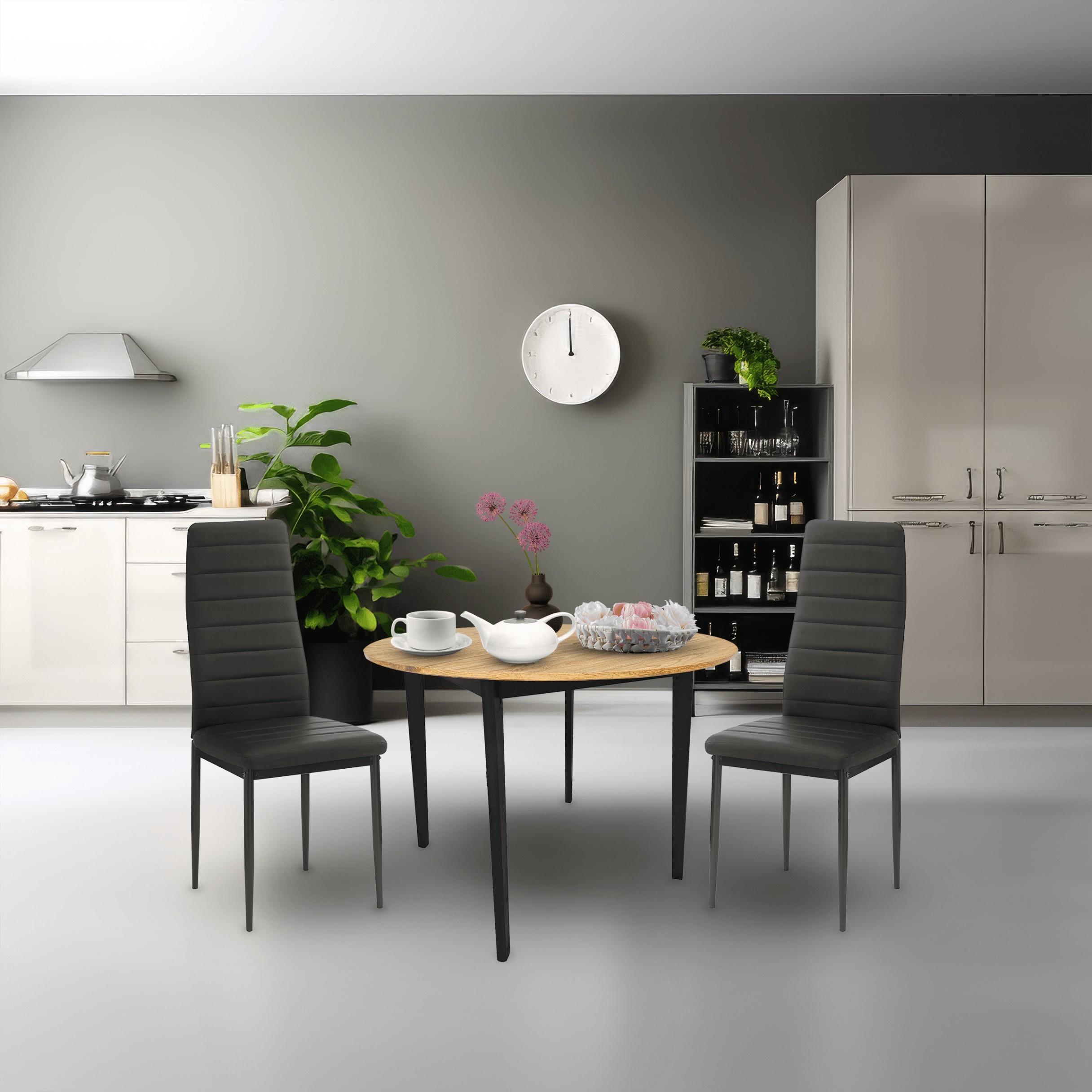 Стіл має міцну конструкцію з каучукового дерева та довговічну стільницю з МДФ, покриту 3D-папером, що забезпечує міцність та елегантний вигляд.