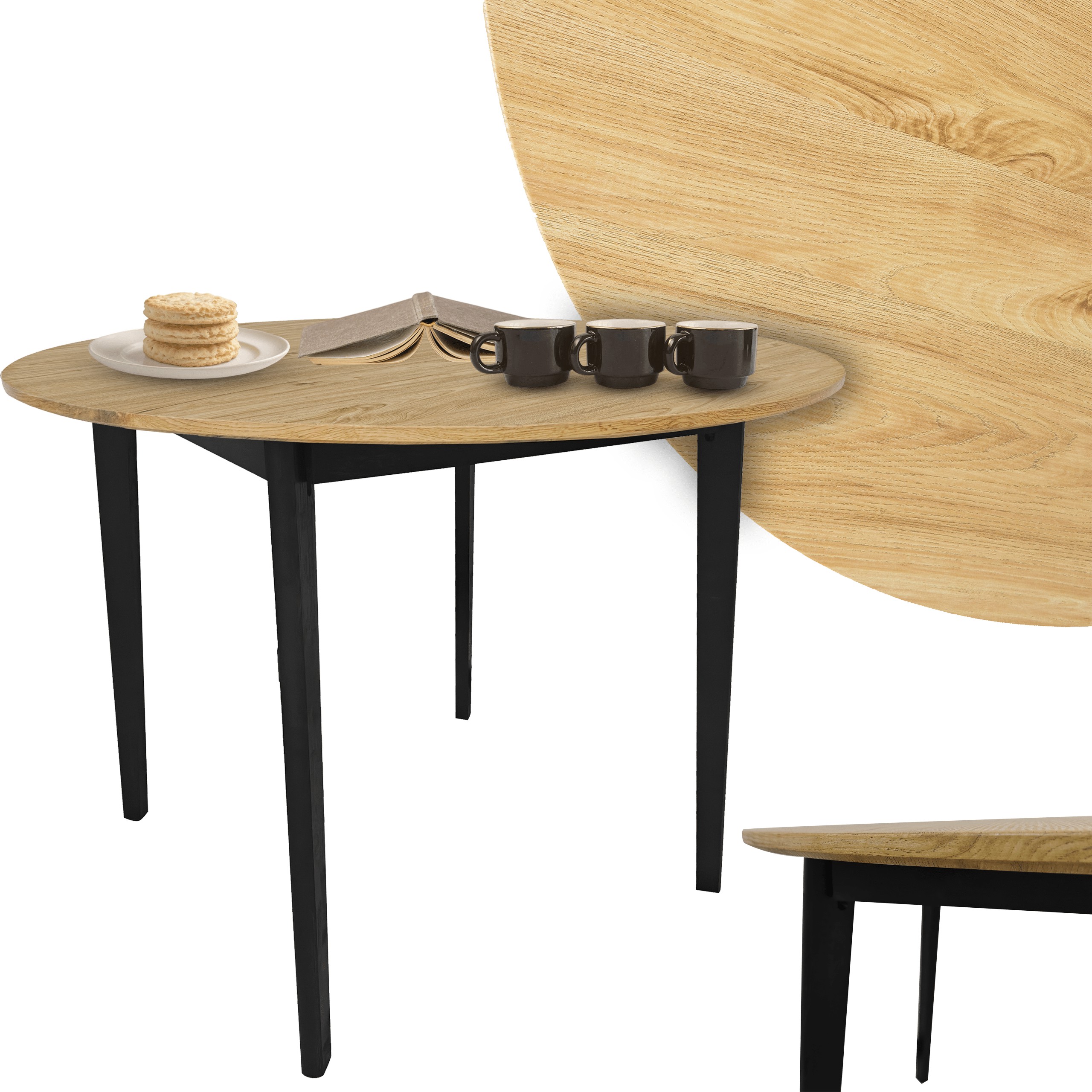 Стіл Ø90 см у кольорі золотий дуб поєднує в собі елегантність, довговічність та практичність, стаючи стильним доповненням інтер'єру в стилі лофт або індастріал.