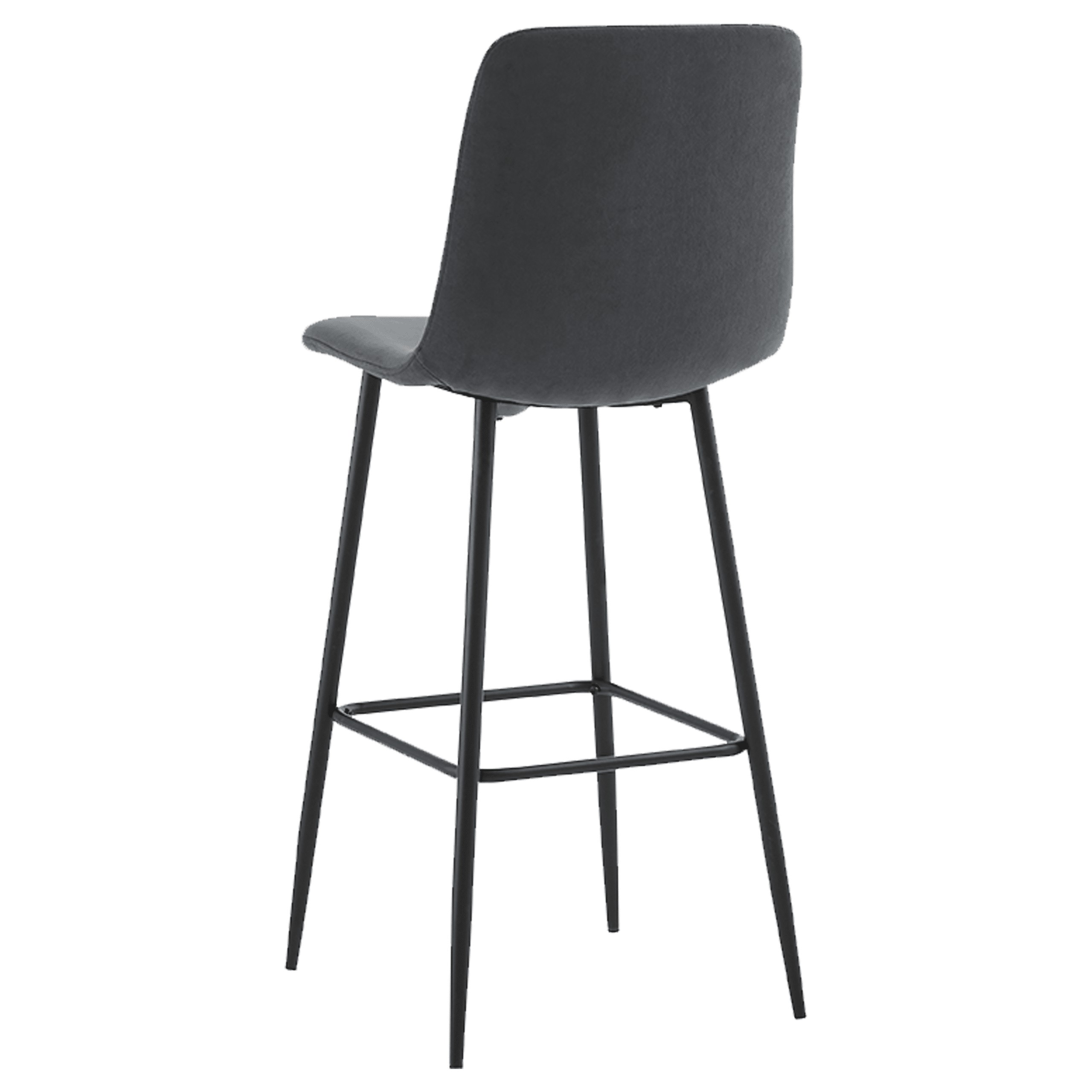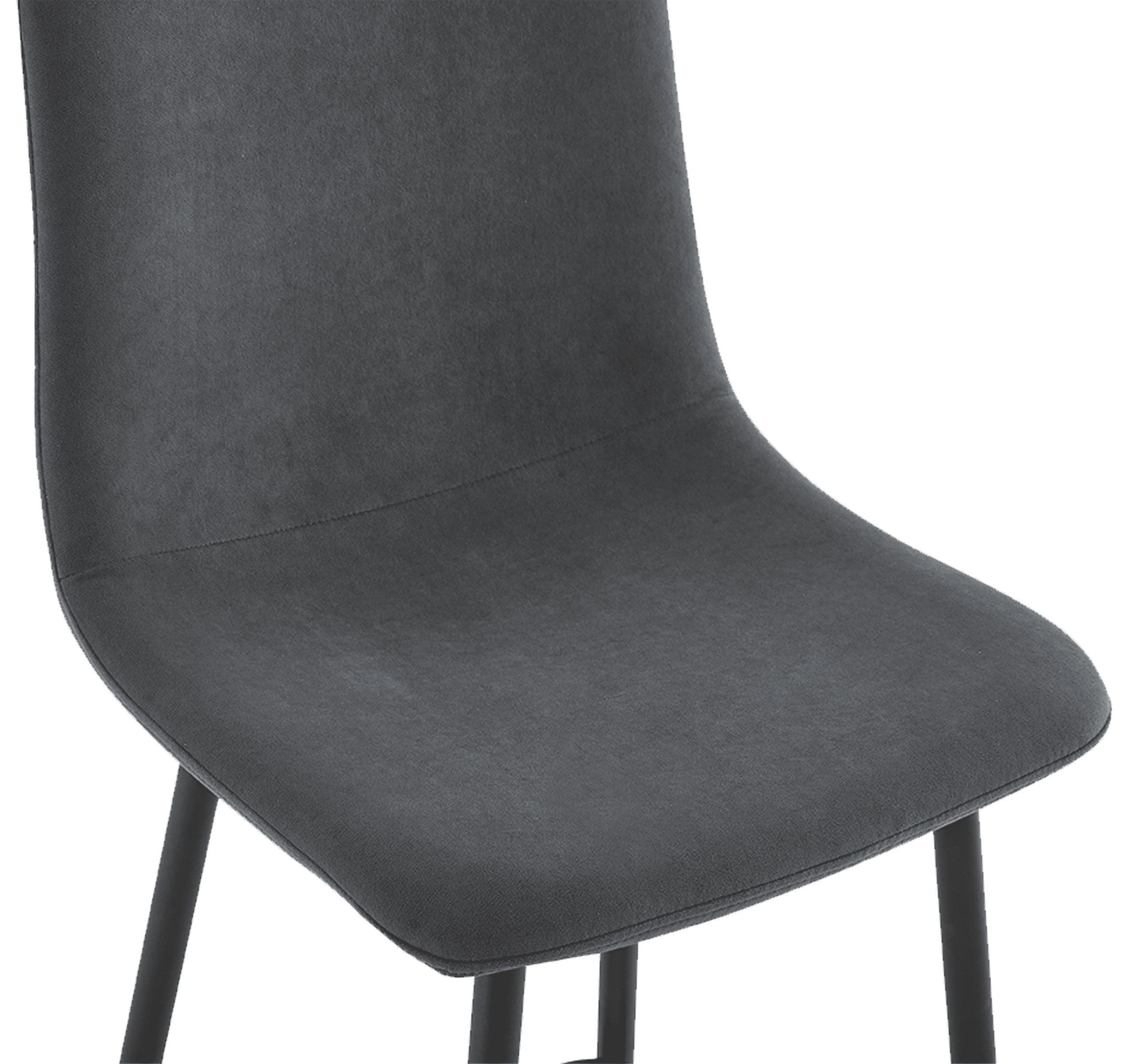 Елегантний і сучасний барний стілець, який ідеально доповнить інтер'єр кухні, їдальні або кухонного острова. Темно-сіра оббивка з м'якої тканини вельвет надає інтер'єру стильного характеру, а чорний сталевий каркас підкреслює індустріальний стиль меблів.