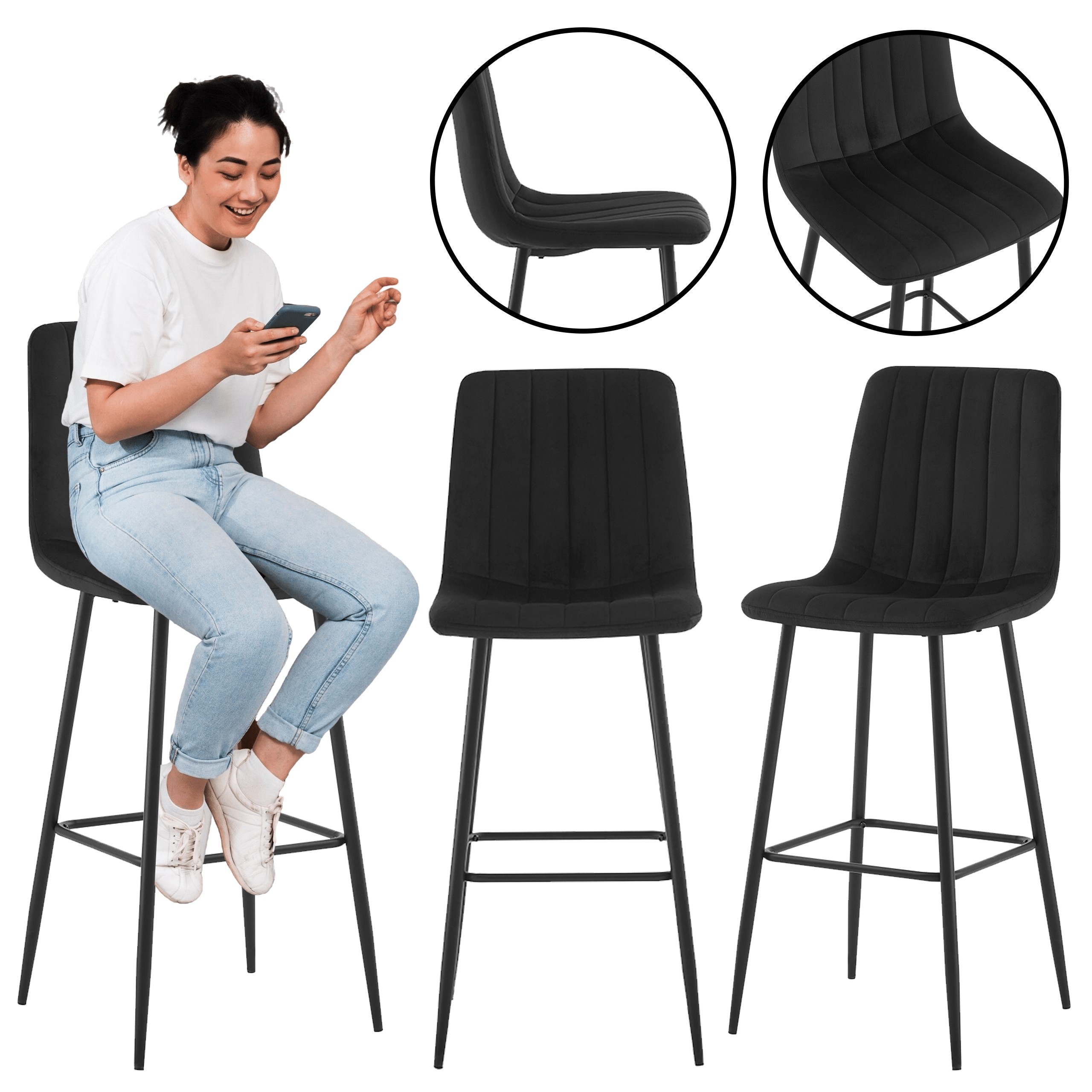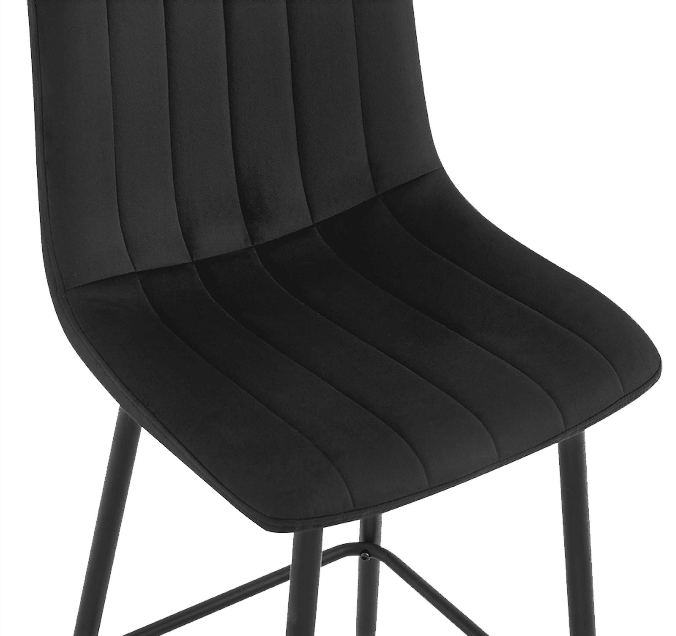 Стильний і функціональний барний стілець H112 чорного кольору – пропозиція для тих, хто цінує сучасний дизайн і зручність. М'яке сидіння з оксамитової тканини виглядає елегантно, а чорна металева конструкція надає всьому виробу легкого індустріального характеру. Відмінний вибір для сучасних кухонь, кухонних островів та їдалень.