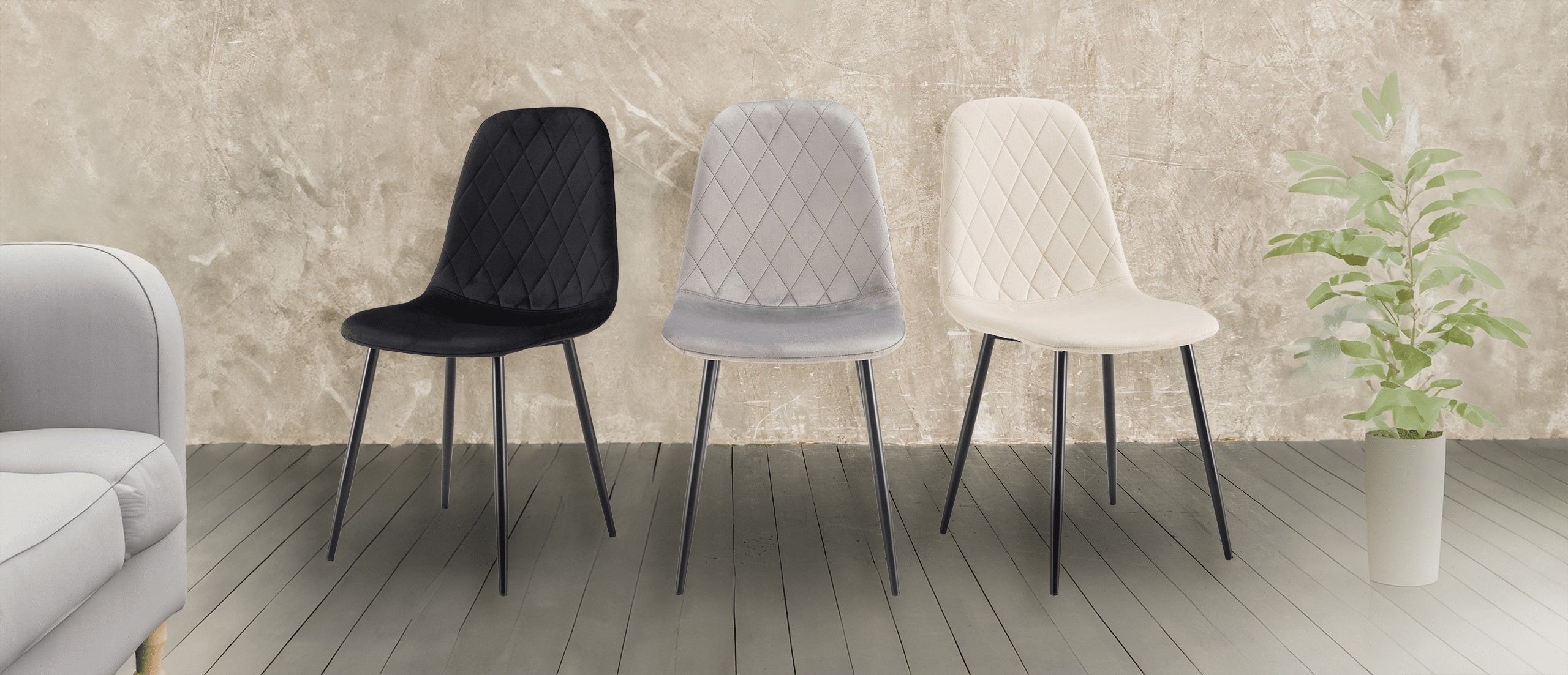Сидіння, наповнене м'якою піною та оббите приємною на дотик тканиною велюр, забезпечує не тільки комфорт, але й елегантний вигляд. Стілець легкий та зручний у зберіганні, що робить його ідеальним рішенням для щоденного використання вдома.