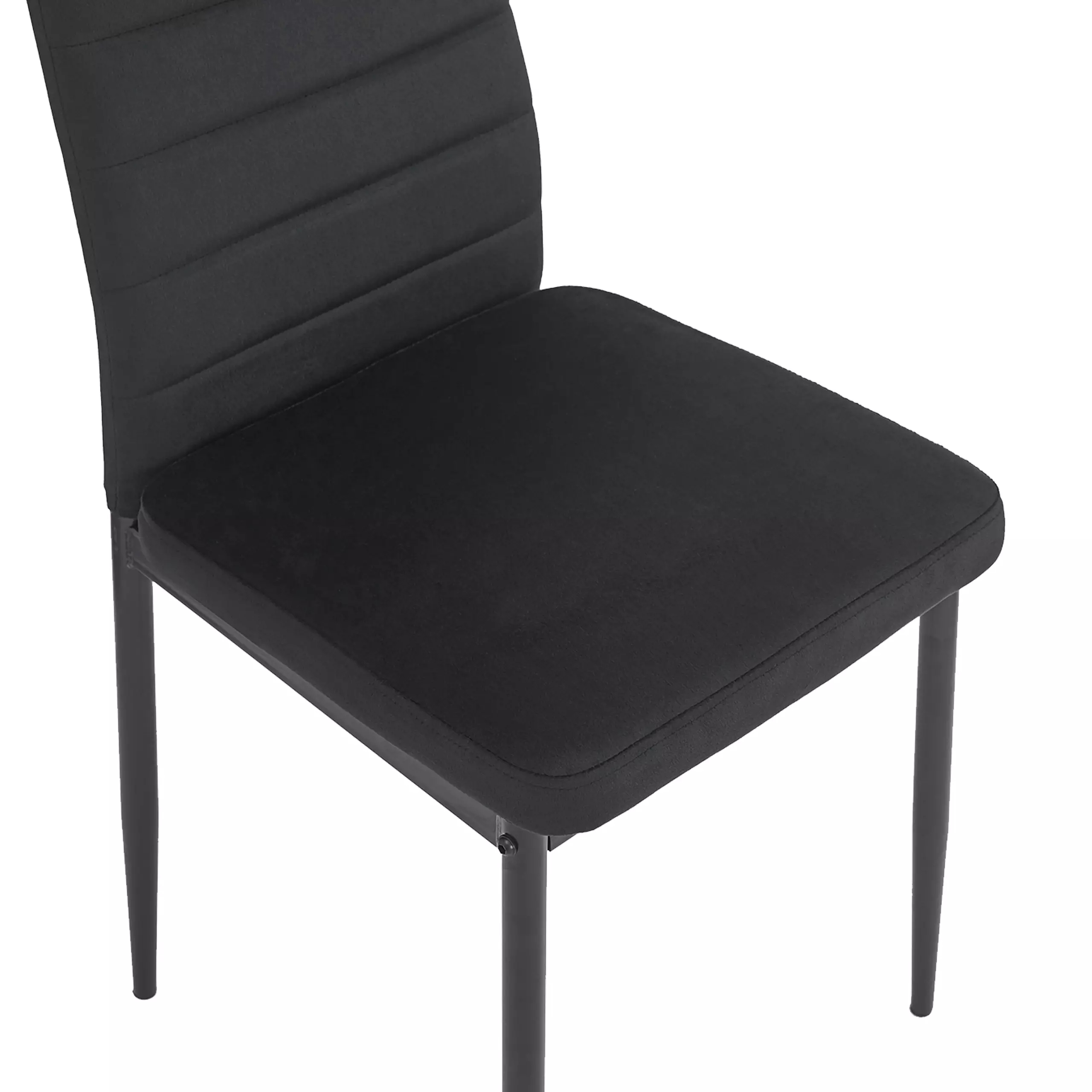 Сидіння та спинка, виготовлені з високоякісної оксамитової тканини, забезпечують винятковий комфорт, а наповнення з м'якої губки товщиною 5 см у сидінні та 4 см у спинці робить крісло надзвичайно зручним навіть при тривалому використанні. Міцна сталева конструкція, пофарбована порошковою фарбою, гарантує стабільність і міцність, а максимальне навантаження на стілець становить аж 120 кг.