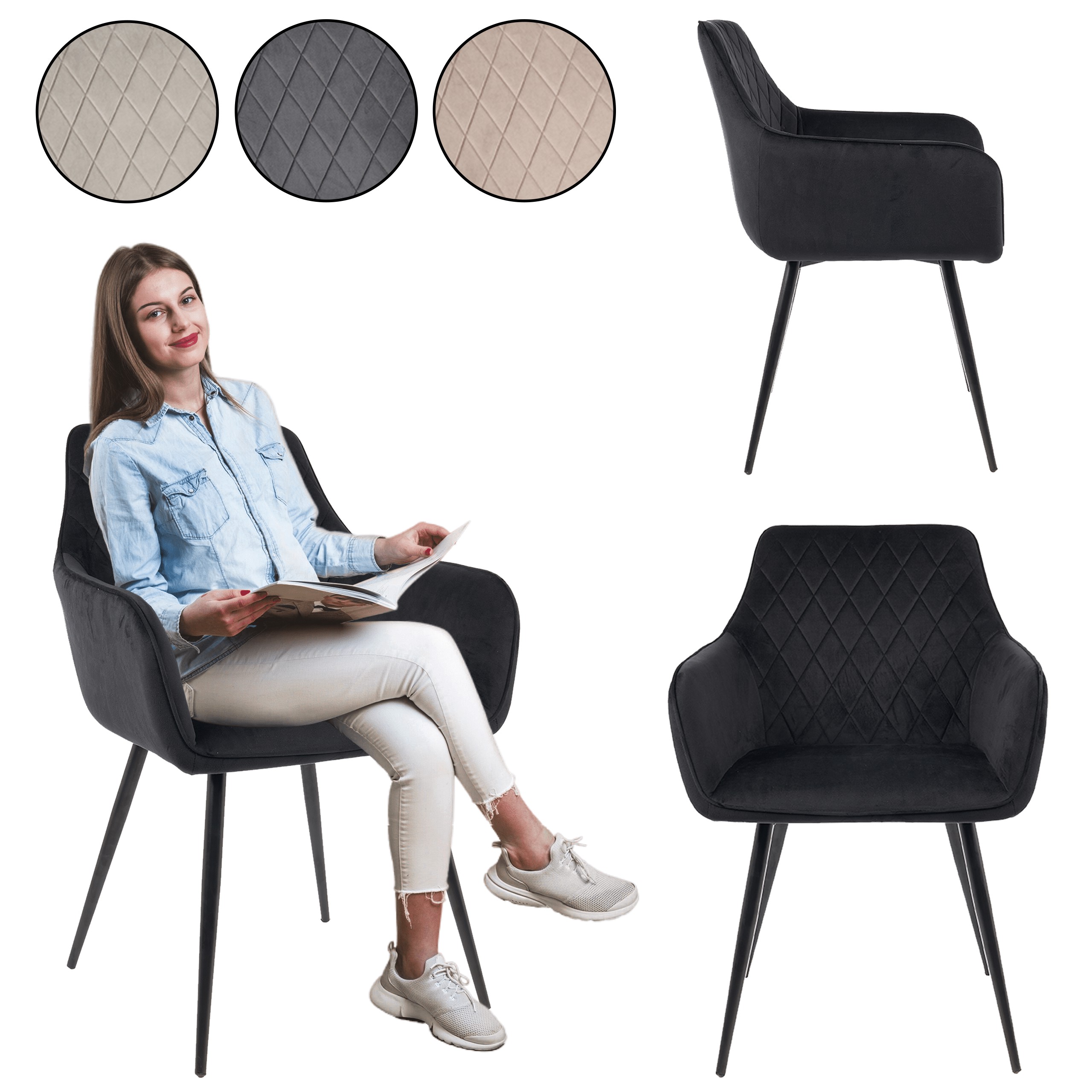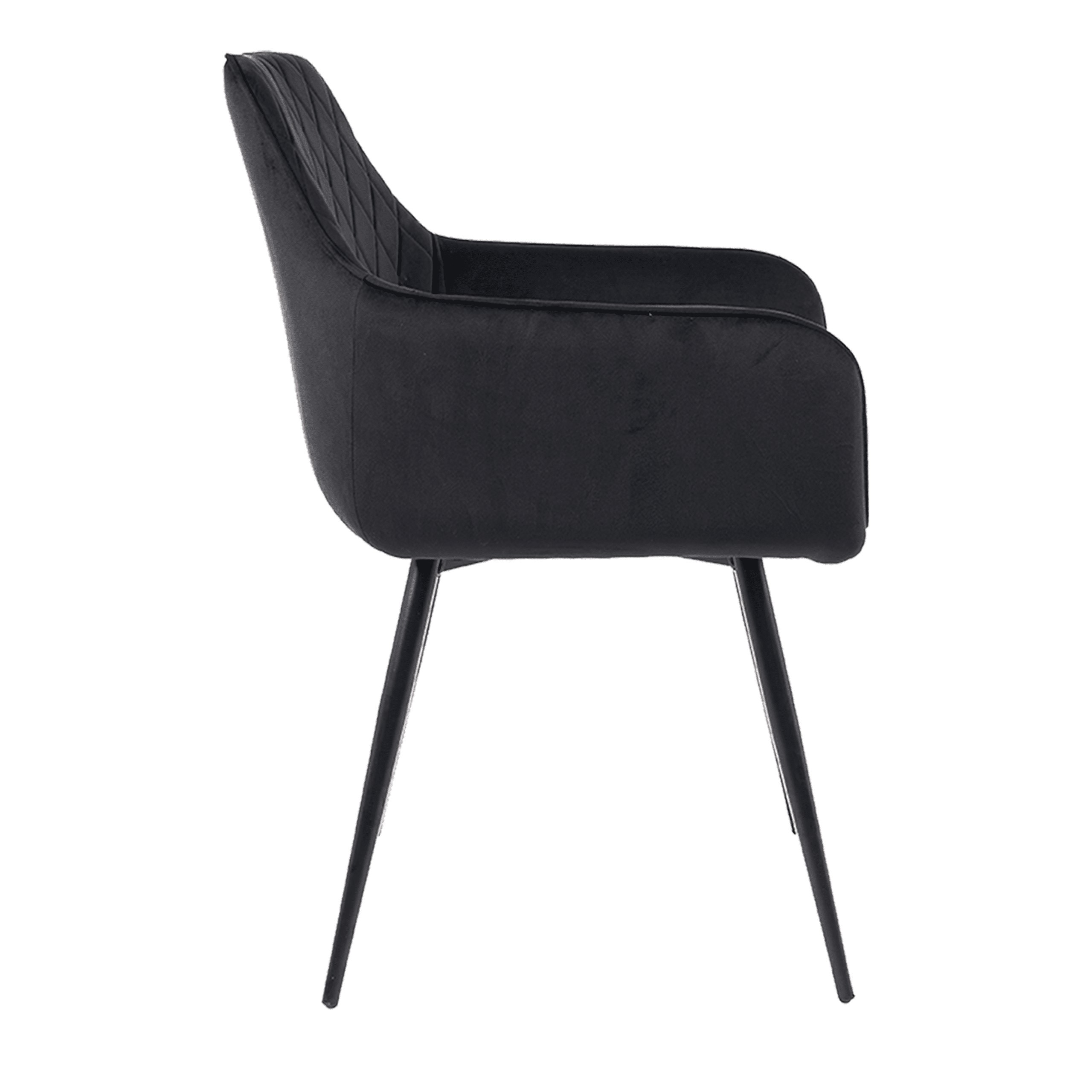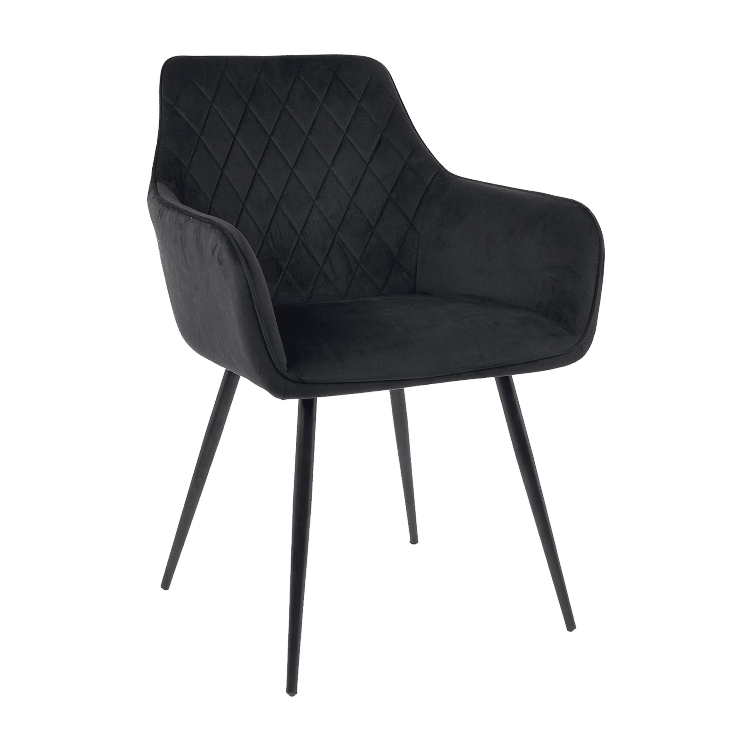 М'яка оббивка з велюрової тканини глибокого чорного відтінку чудово відбиває світло, а ромбоподібна стежка надає виробу особливого шарму. Наповнення з м'якої піни забезпечує комфорт, а металеві ніжки гарантують довговічність і стійкість.