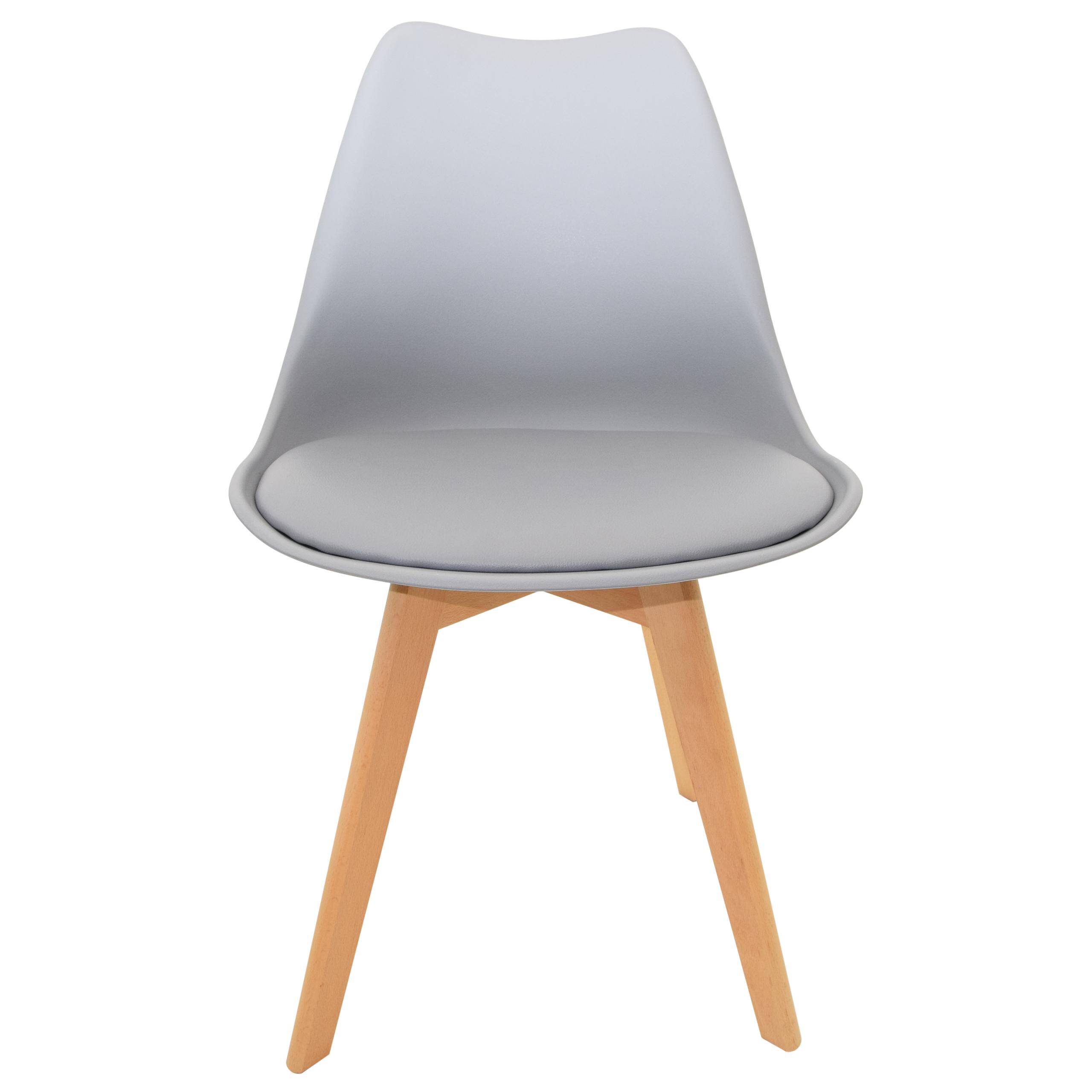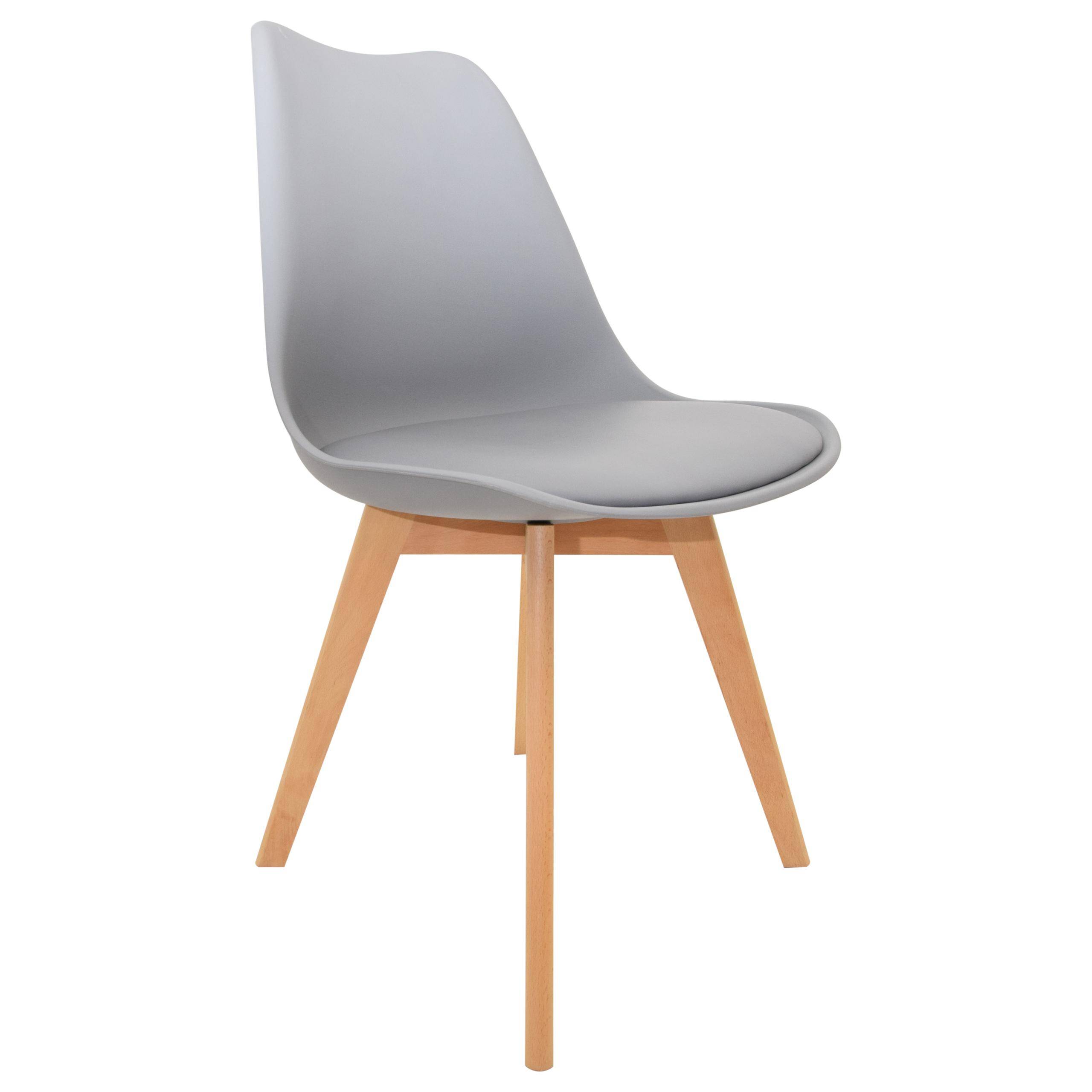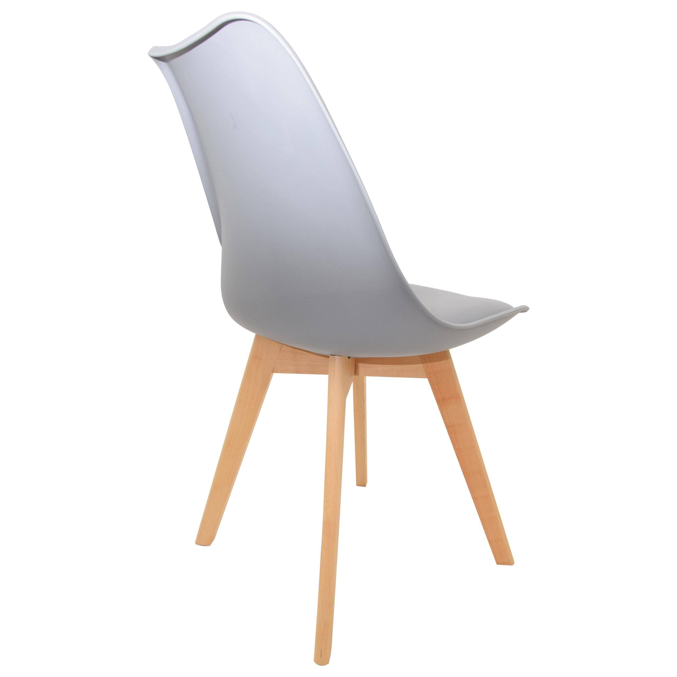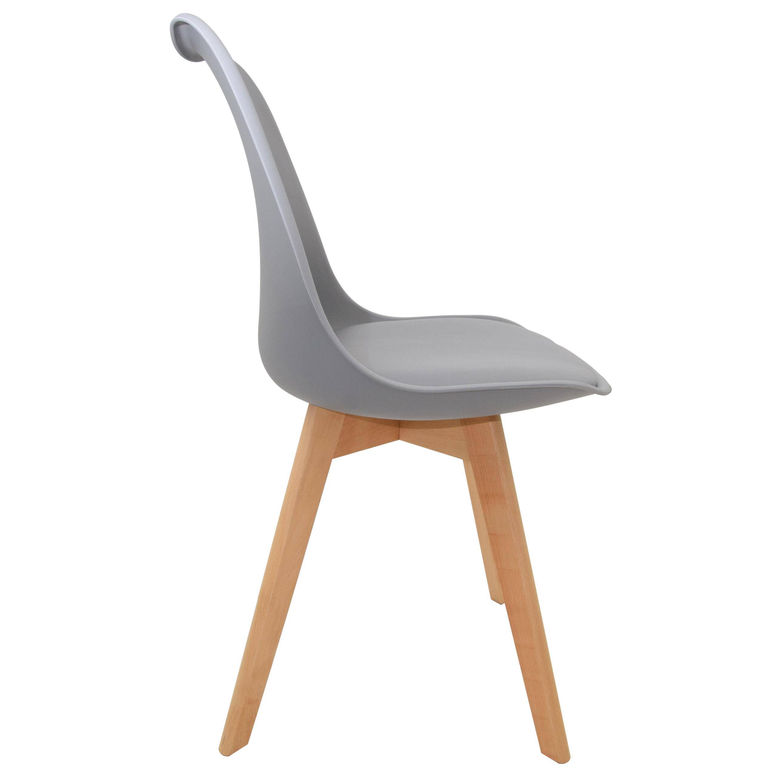Стілець EMMA вирізняється пластиковим сидінням елегантного сірого кольору, яке є як міцним, так і легким у догляді. Завдяки ергономічній формі він забезпечує високий комфорт під час сидіння, що робить його ідеальним вибором для їдальні, кухні чи вітальні.