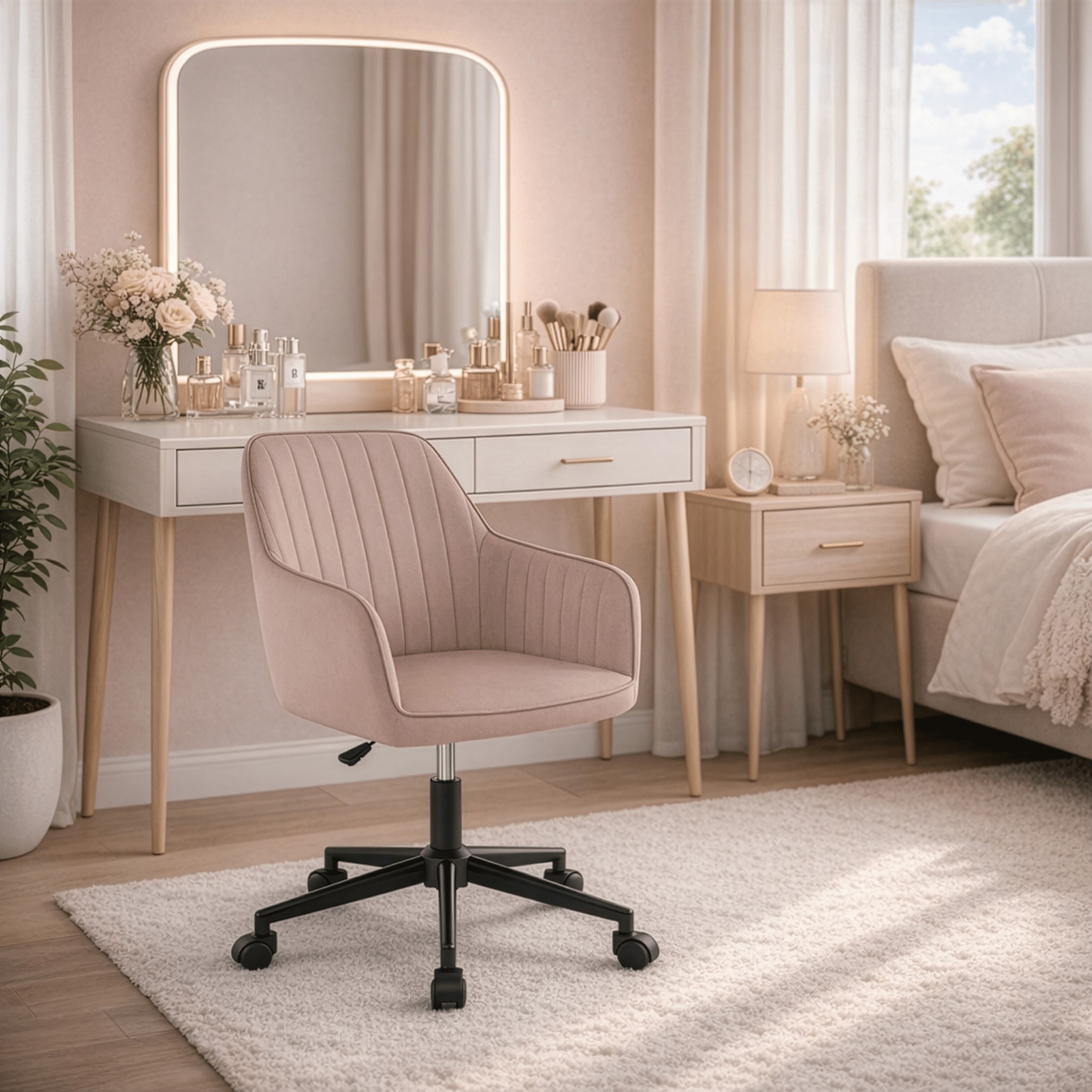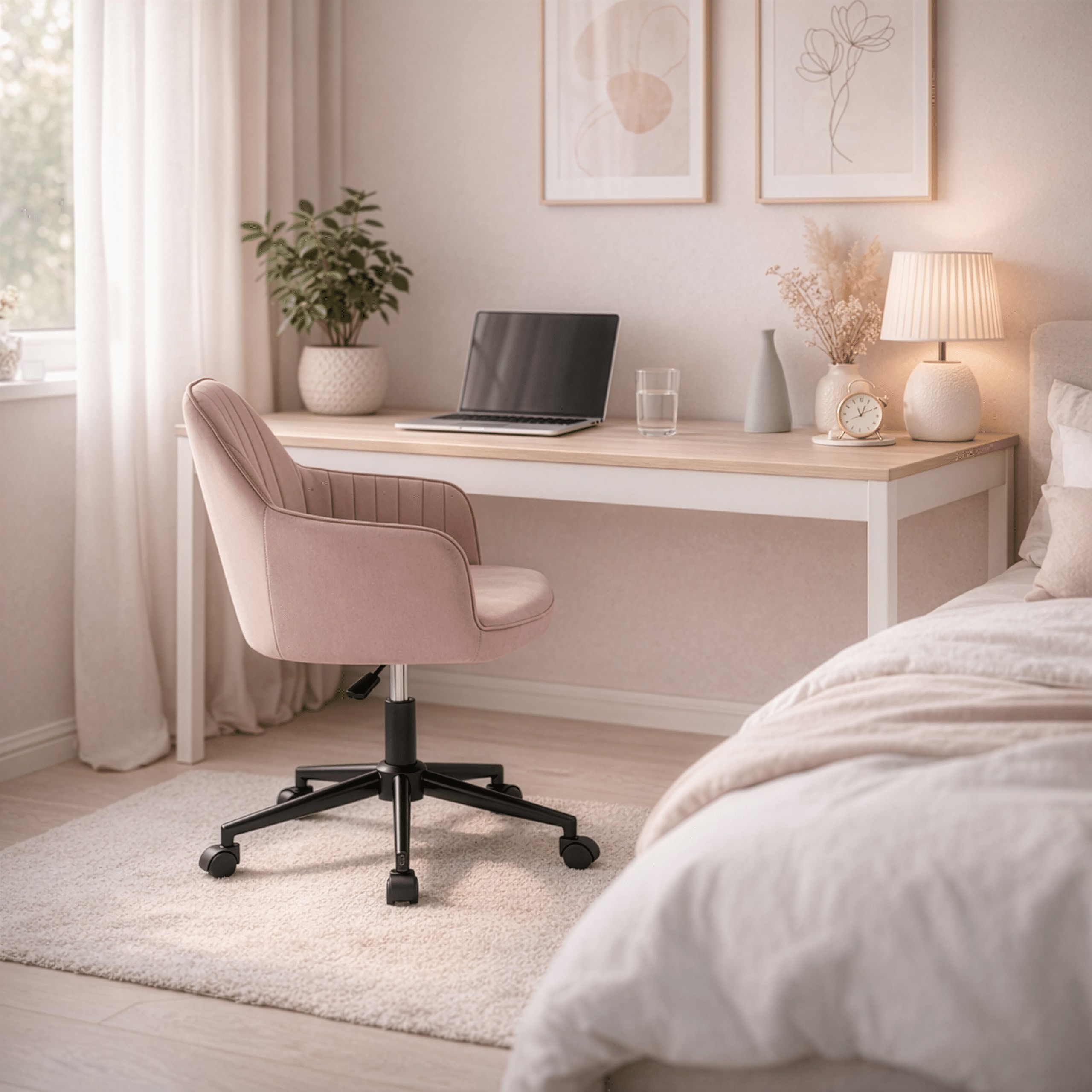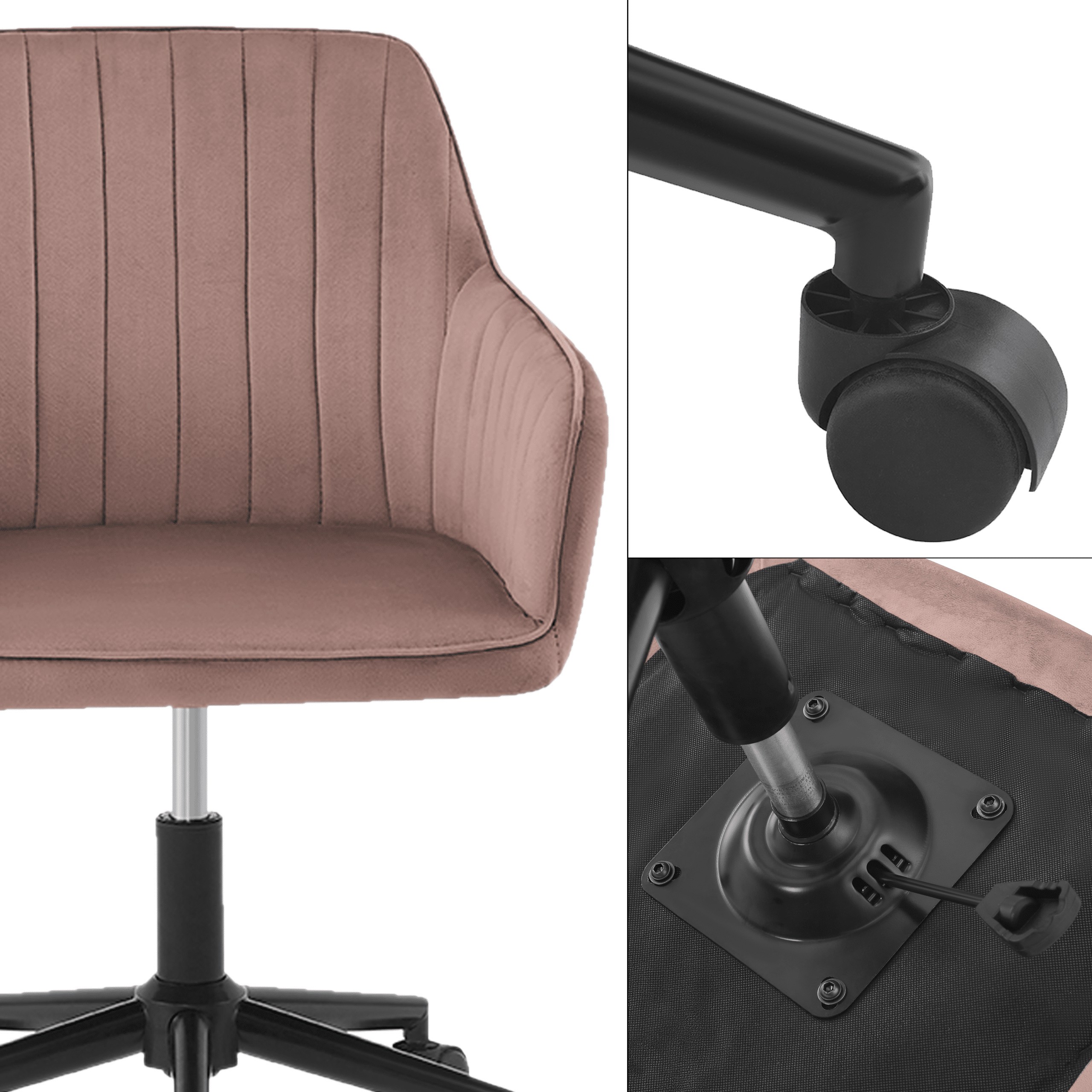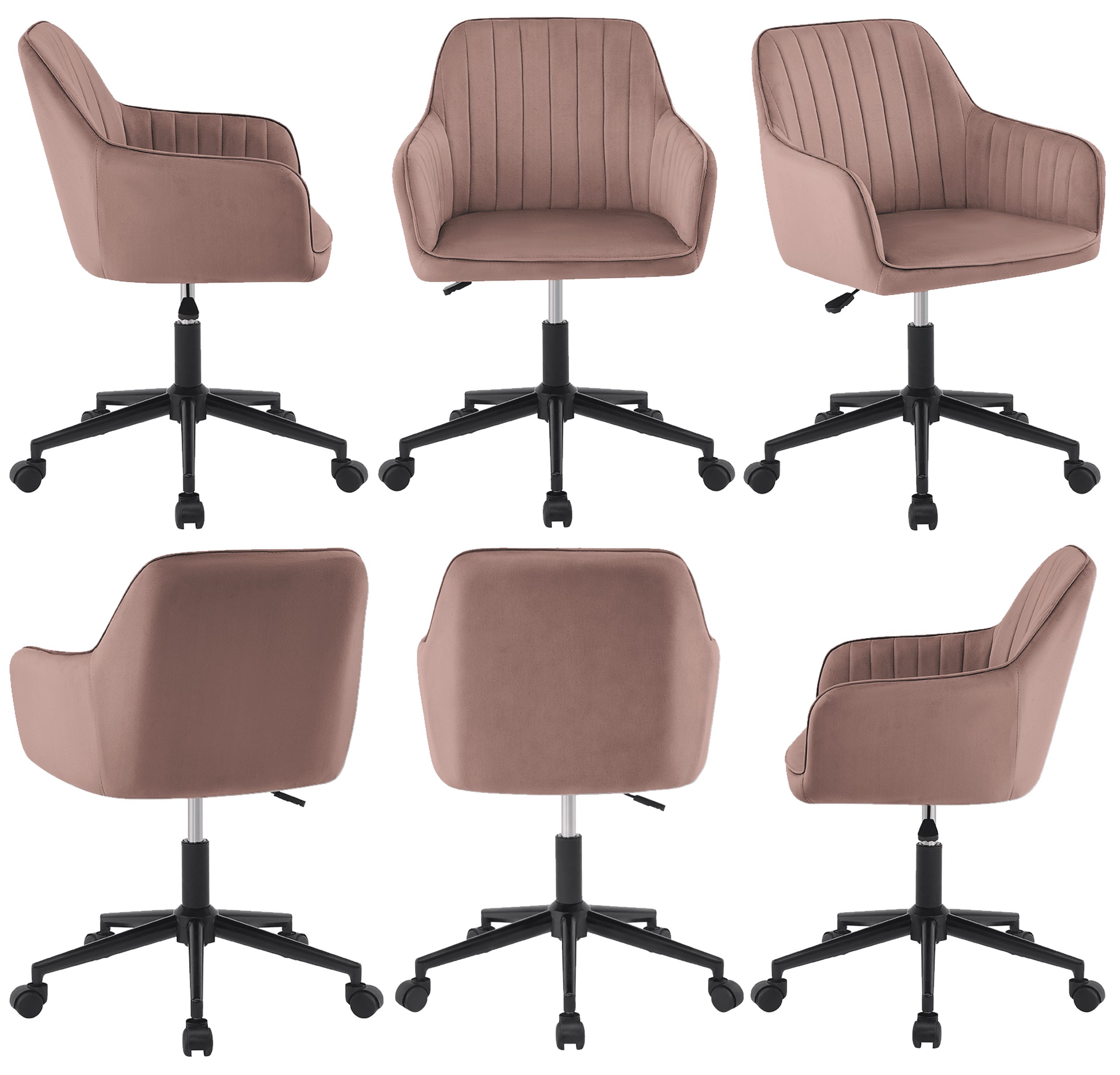 Сучасне офісне крісло Maria III у кольорі ліла / пудровий рожевий — це стильний та функціональний елемент обстановки офісу, кабінету або домашнього робочого простору. Ніжна кольорова гама у поєднанні з елегантною оксамитовою тканиною надає інтер'єру легкості та сучасного характеру.