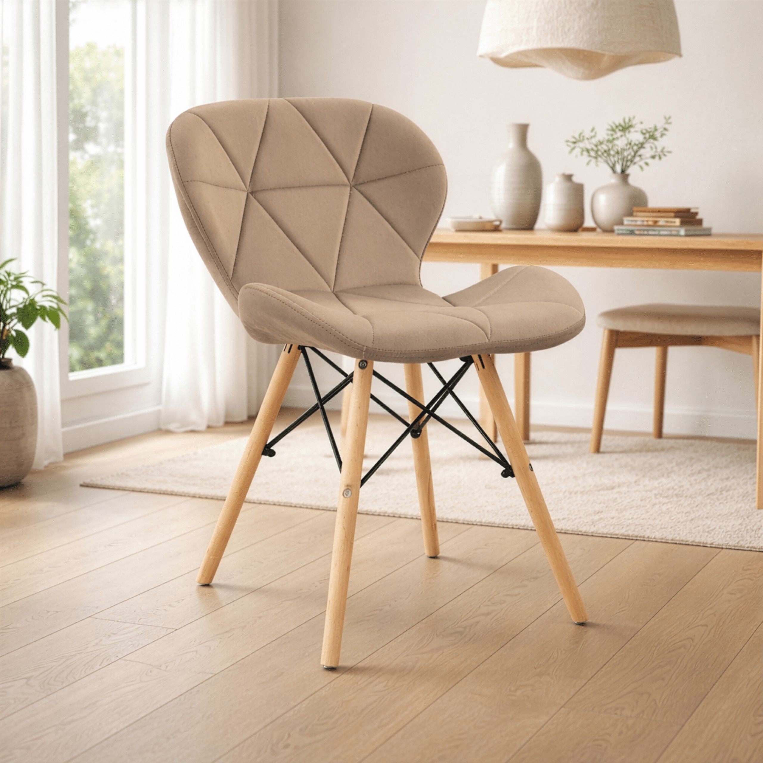 Стильне м'яке крісло у скандинавському стилі, розроблене з думкою про щоденний комфорт використання на кухні, у їдальні або вітальні. Проста форма, м'яке сидіння та натуральні дерев'яні ніжки створюють цілісний та універсальний вигляд.