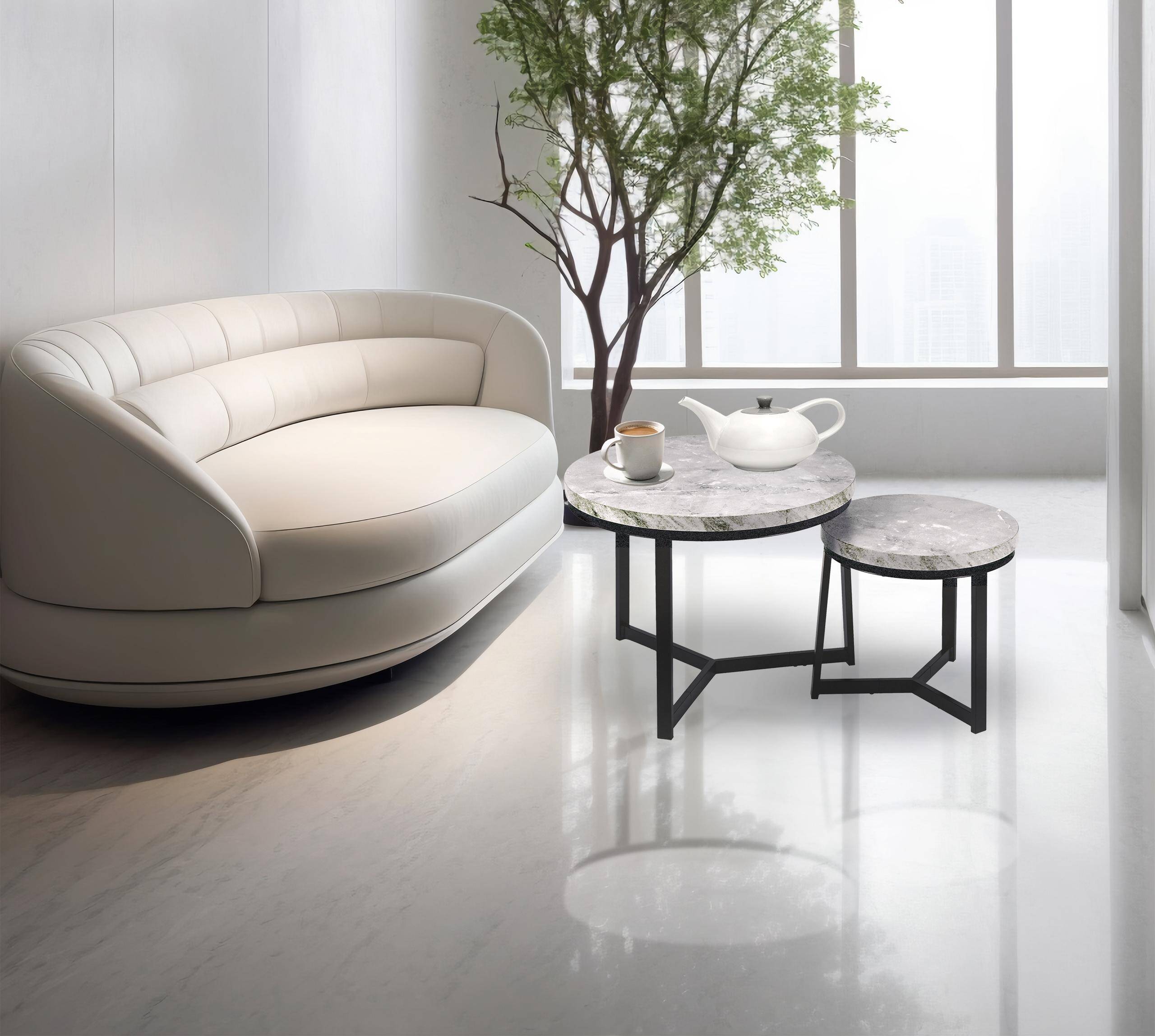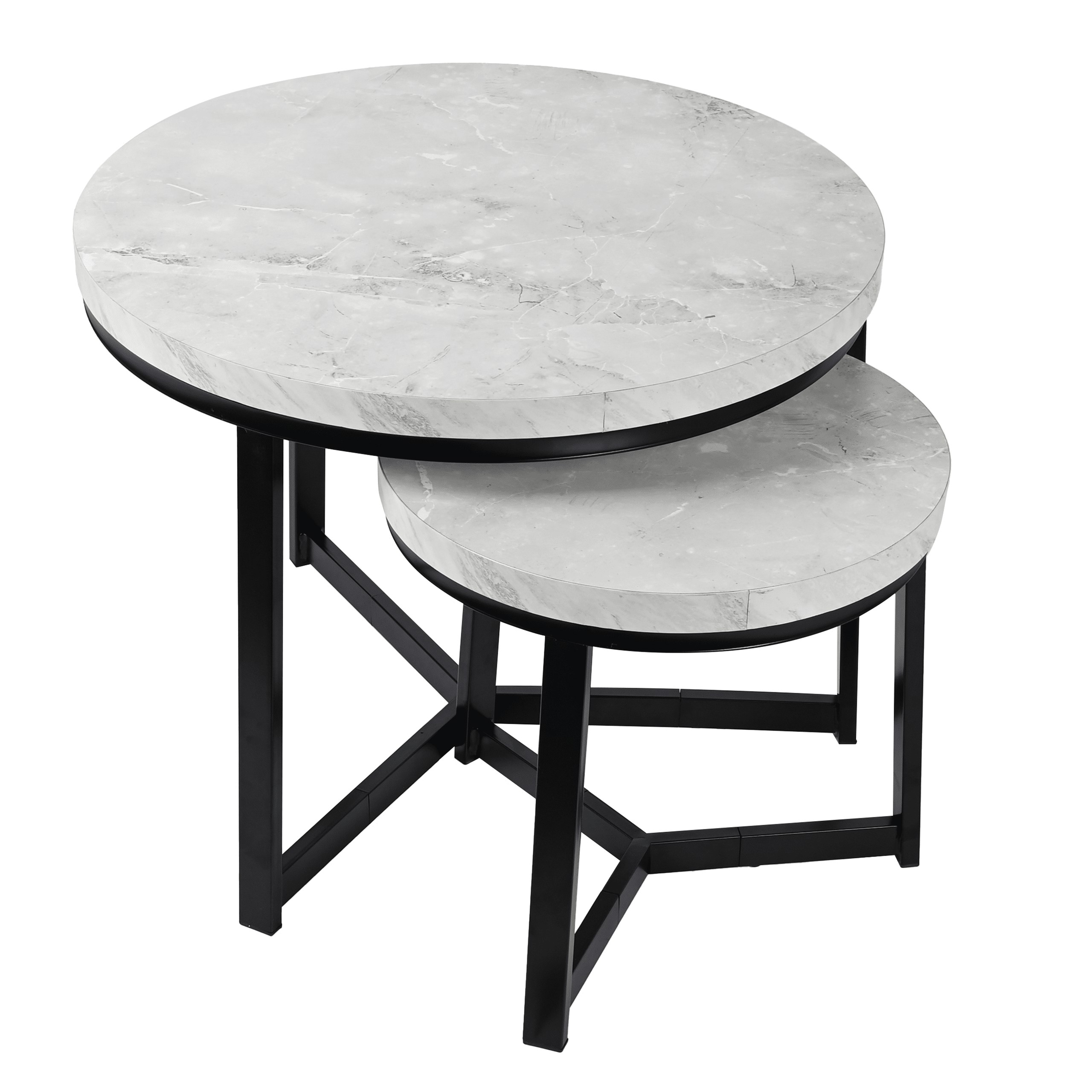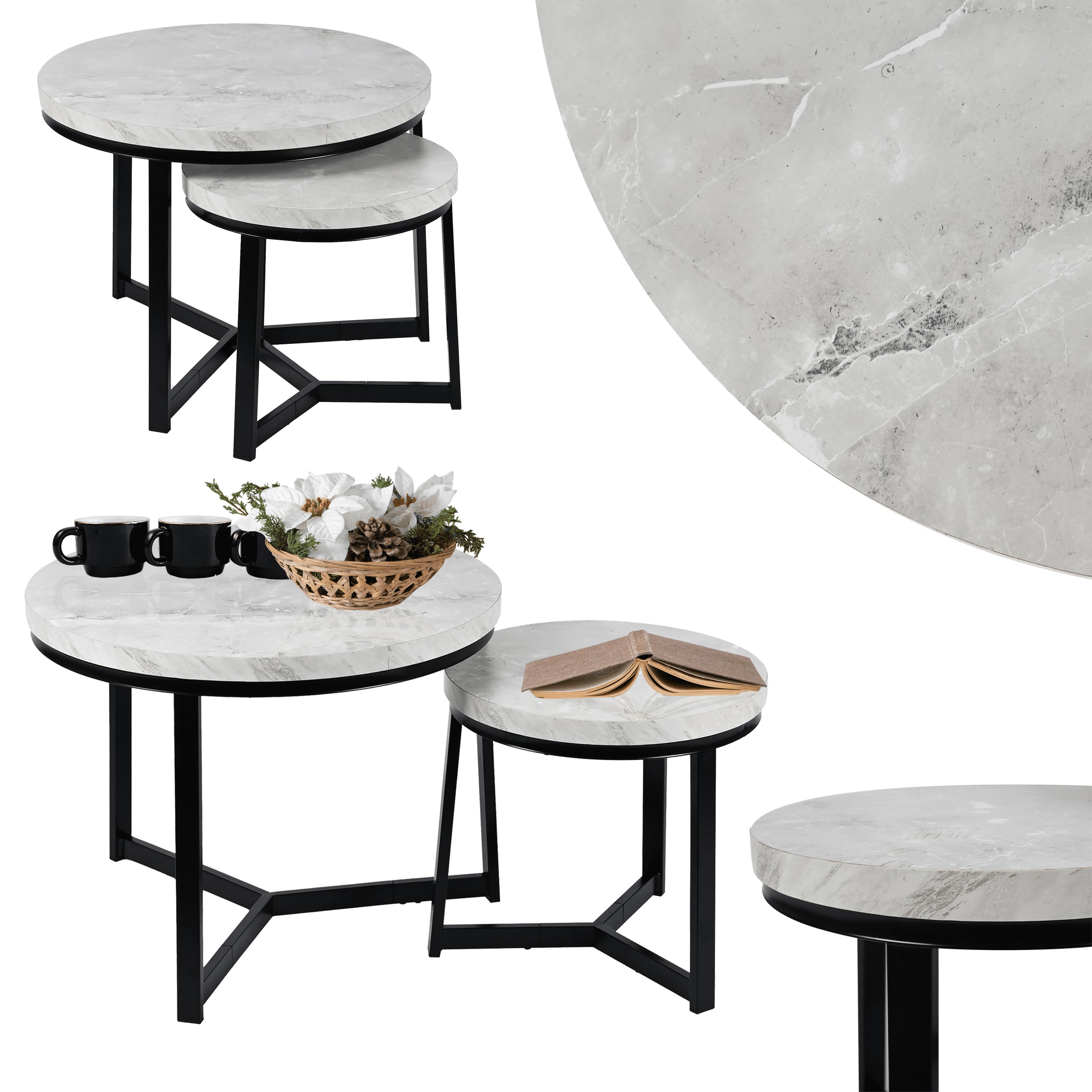 Набір з двох круглих журнальних столиків SK112MSZ – це ідеальний вибір для тих, хто хоче додати сучасних та стильних акцентів до свого інтер'єру. Столики кольору сірого мармуру чудово пасують до вітальні, вітальні або спальні, додаючи елегантності та функціональності. Завдяки сталевій рамі з порошковим покриттям та стільницям з МДФ у відтінку мармуру, вони не тільки естетичні, але й міцні та практичні.