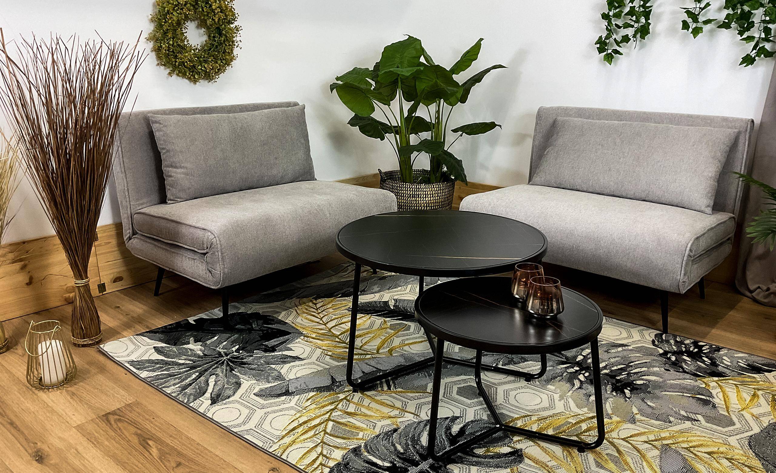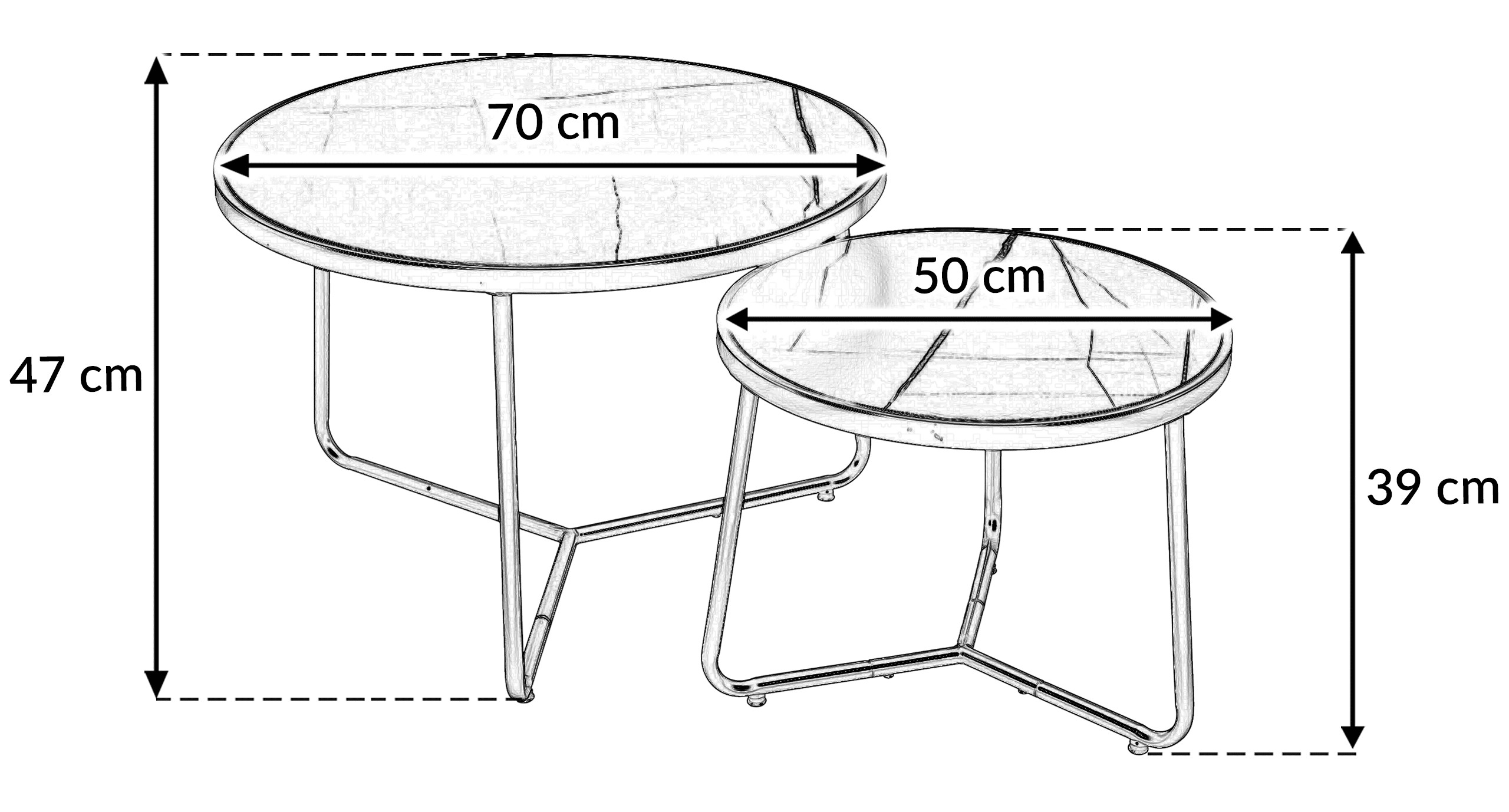 Функціональність та практичність ✔️ Розміри більшого столика: 70x47 см – ідеально підходить як основний журнальний столик, на якому можна розмістити напої, книги чи декорації, стаючи центральним елементом приміщення. ✔️ Розміри меншого столика: 50x39 см – ідеально підходить як доповнення до більшого столика або як самостійний елемент у менших приміщеннях. ✔️ Кругла форма столиків додає легкості та елегантності, а їхні різні розміри дозволяють гнучко пристосовуватися до потреб користувачів. Можливість засунути менший столик під більший.