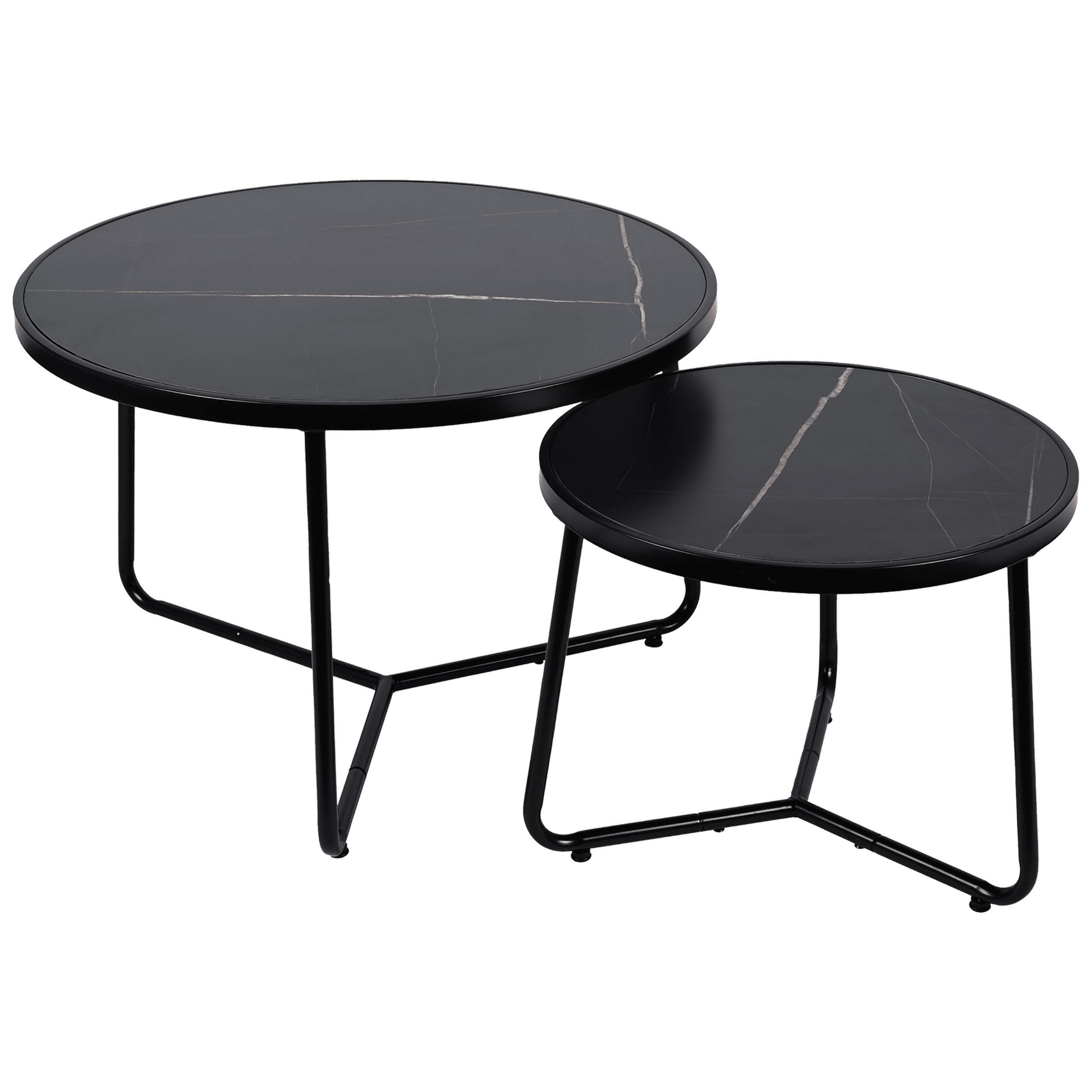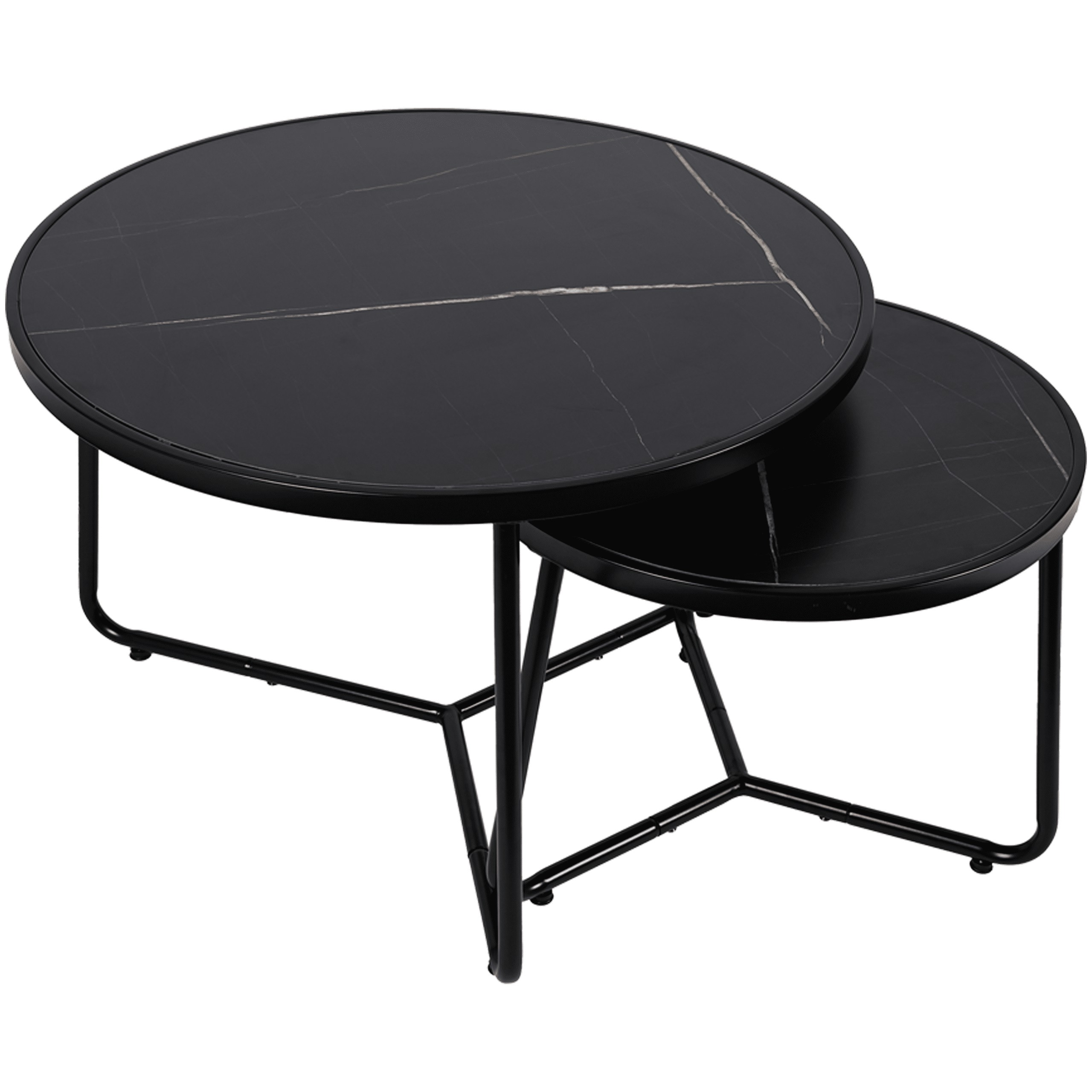 Технічні характеристики: ✔️ Розміри більшого столика: 70x47 см ✔️ Розміри меншого столика: 50x39 см ✔️ Матеріал стільниці: МДФ під чорний мармур ✔️ Матеріал каркаса: метал ✔️ Колір стільниці: чорний мармур ✔️ Колір каркаса: чорний ✔️ Призначення: для використання в приміщенні ✔️ Догляд: легко чиститься, не потребує спеціального догляду