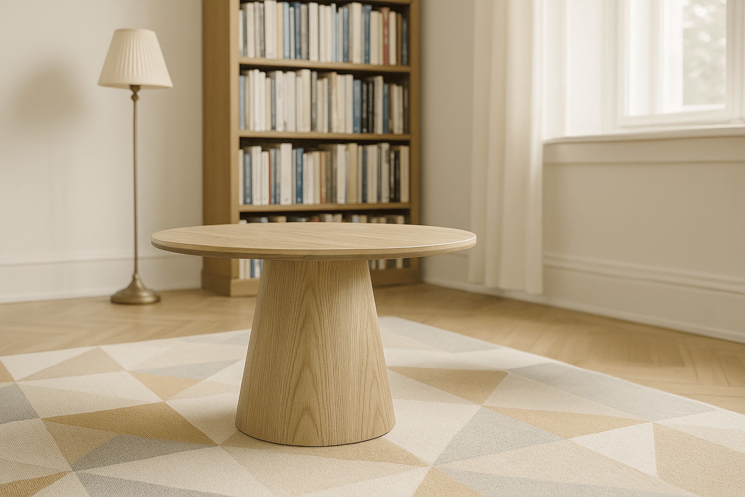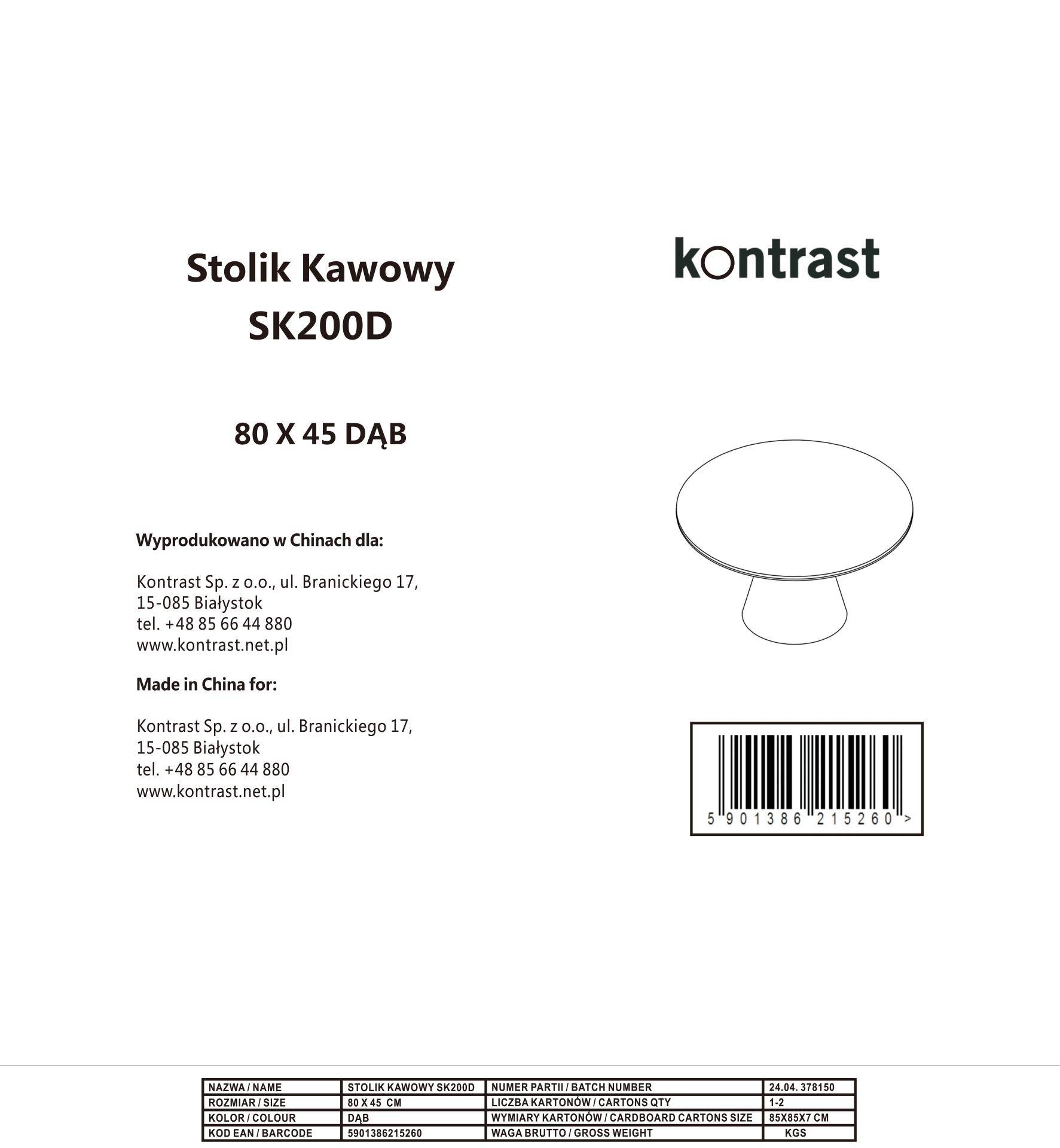 Кавовий столик SK200D діаметром 80 см — це практичний предмет меблів, ідеальний для вітальні, вітальні або навіть спальні. Завдяки своєму винятковому та унікальному зовнішньому вигляду він додає інтер'єру нотку елегантності та стилю. Стільниця столика в кольорі натурального дуба чудово поєднується з різноманітними інтер'єрами, від класичних до сучасних.
