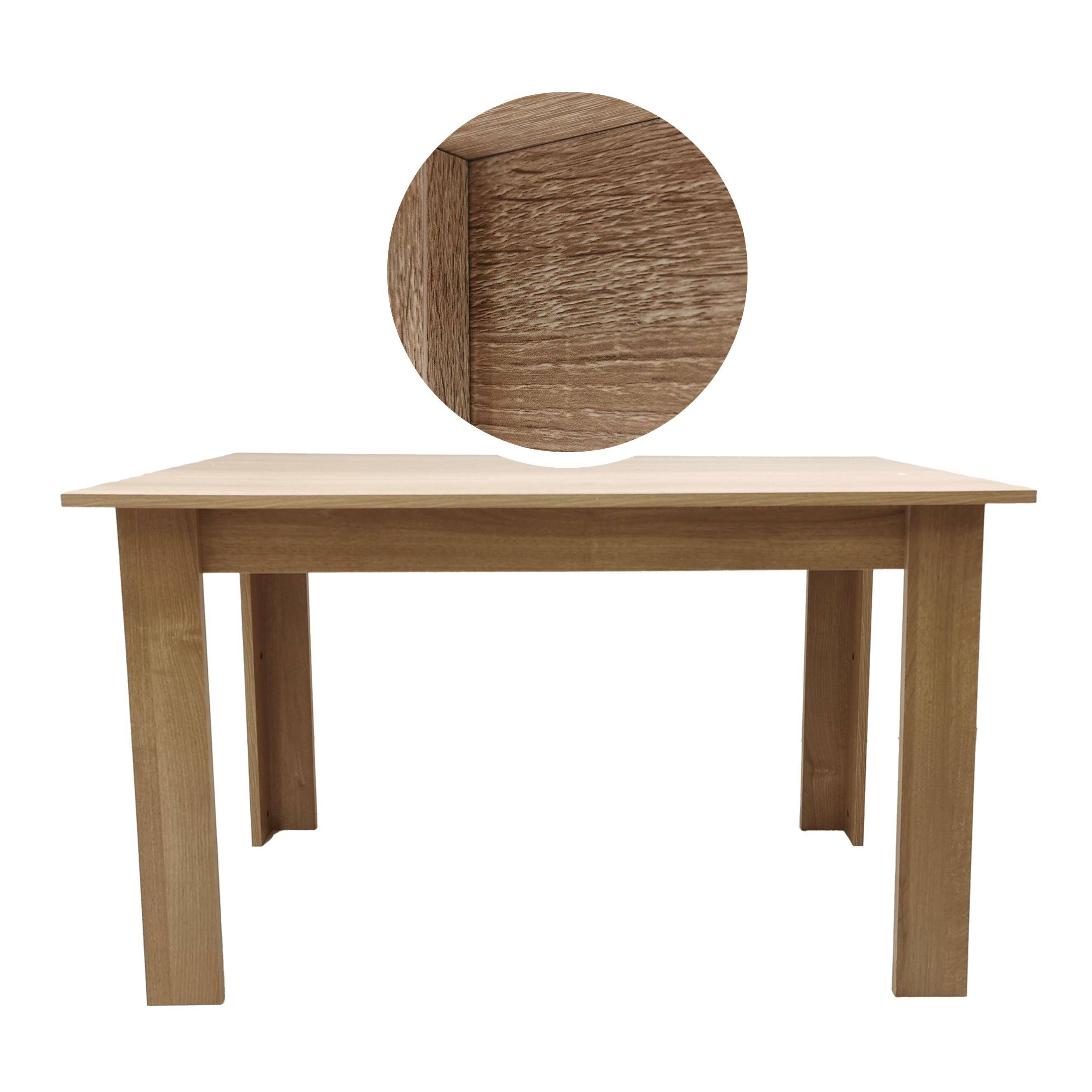✓ Ламінована плита та меламінове покриття гарантують стійкість до щоденного використання, забезпечуючи довгий термін експлуатації столу. ✓ Розміри: 120 x 80 x 75 см (дов. x шир. x вис.) – Відповідні пропорції столу роблять його функціональним, при цьому він не займає занадто багато місця. ✓ Широка стільниця – дозволяє зручно приймати їжу, проводити сімейні зустрічі та працювати. ✓ Мінімалістичний стиль – пропозиція для тих, хто цінує простоту та елегантність в інтер'єрі. ✓ Ідеально підходить для кухні, їдальні та вітальні – універсальність столу дозволяє використовувати його в різних приміщеннях, адаптуючись до потреб користувачів. ✓ Пасує до будь-якого інтер'єру – Завдяки нейтральній кольоровій гамі та простому дизайну стіл чудово підійде до різних стилів оформлення – від скандинавського, через сучасний, аж до класичного. ✓ Колір дуб сонома – Натуральний прохолодний вигляд дерева вносить гармонію в будь-який інтер'єр. ✓ Природна краса – Елегантне оздоблення столу підкреслює простоту форми, водночас виокремлюючи красу природних матеріалів.