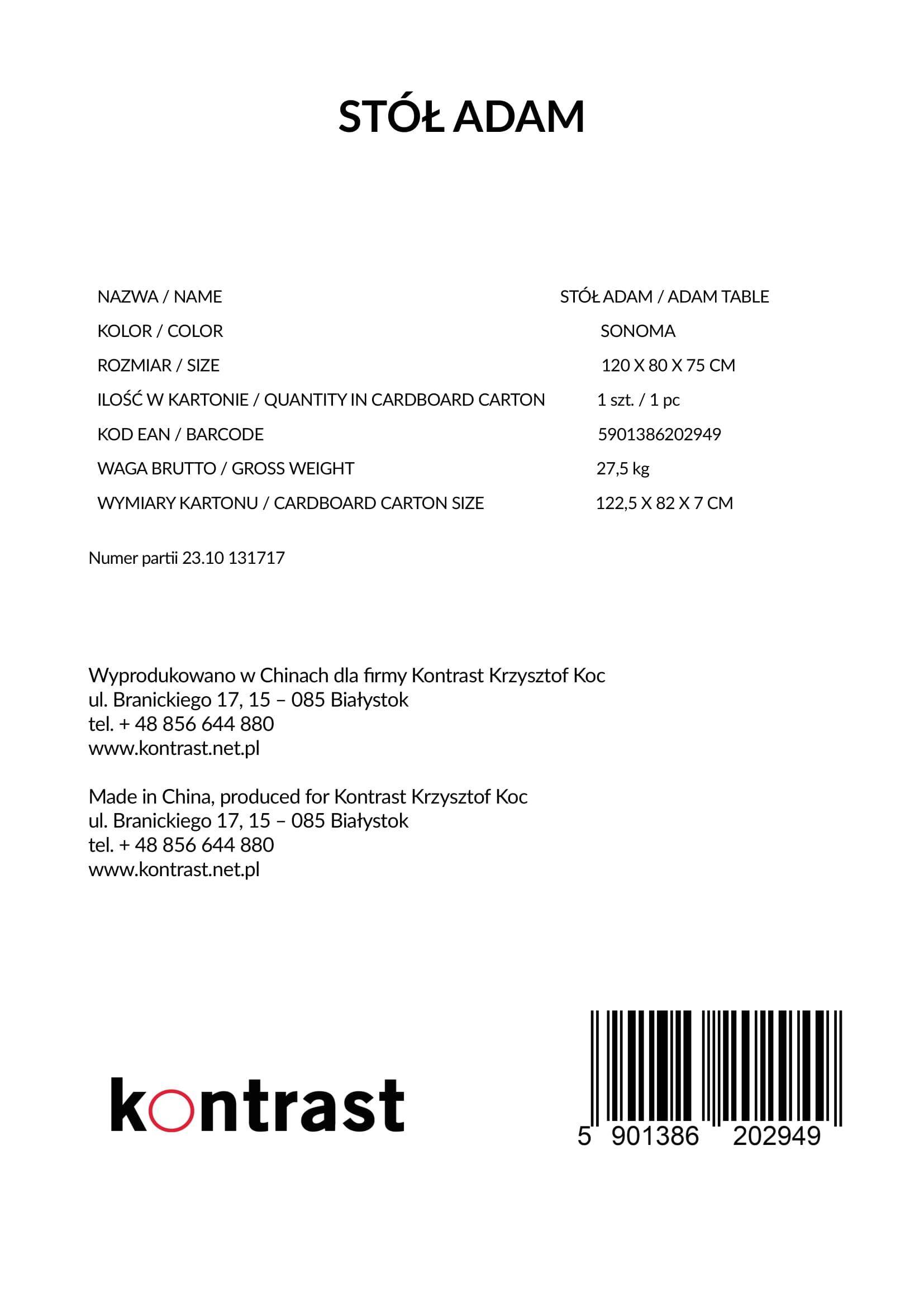 Обідній стіл Adam Dąb Sonoma – це поєднання простоти та функціональності, яке додасть вашому інтер'єру елегантності та комфорту у повсякденному використанні. Ідеальний як для невеликих, так і для великих приміщень, він підійде в будь-якій ситуації.