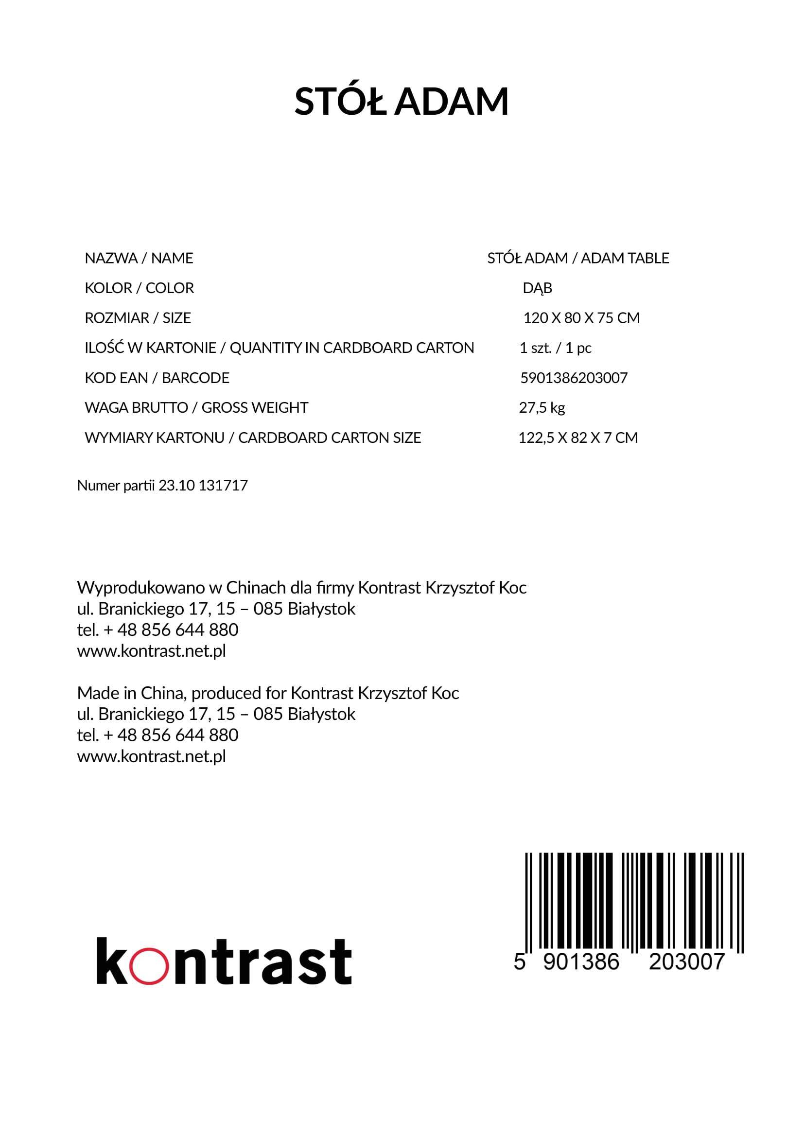 Колір дуба додає інтер'єру теплий, природний акцент, підкреслюючи красу дерев'яної обробки. Стіл ідеально підходить для кухні, їдальні або вітальні, де стане не тільки практичним предметом меблів, але й стильним елементом декору. Стільниця товщиною 20 мм забезпечує належну стійкість і простір для комфортного прийому їжі або роботи.