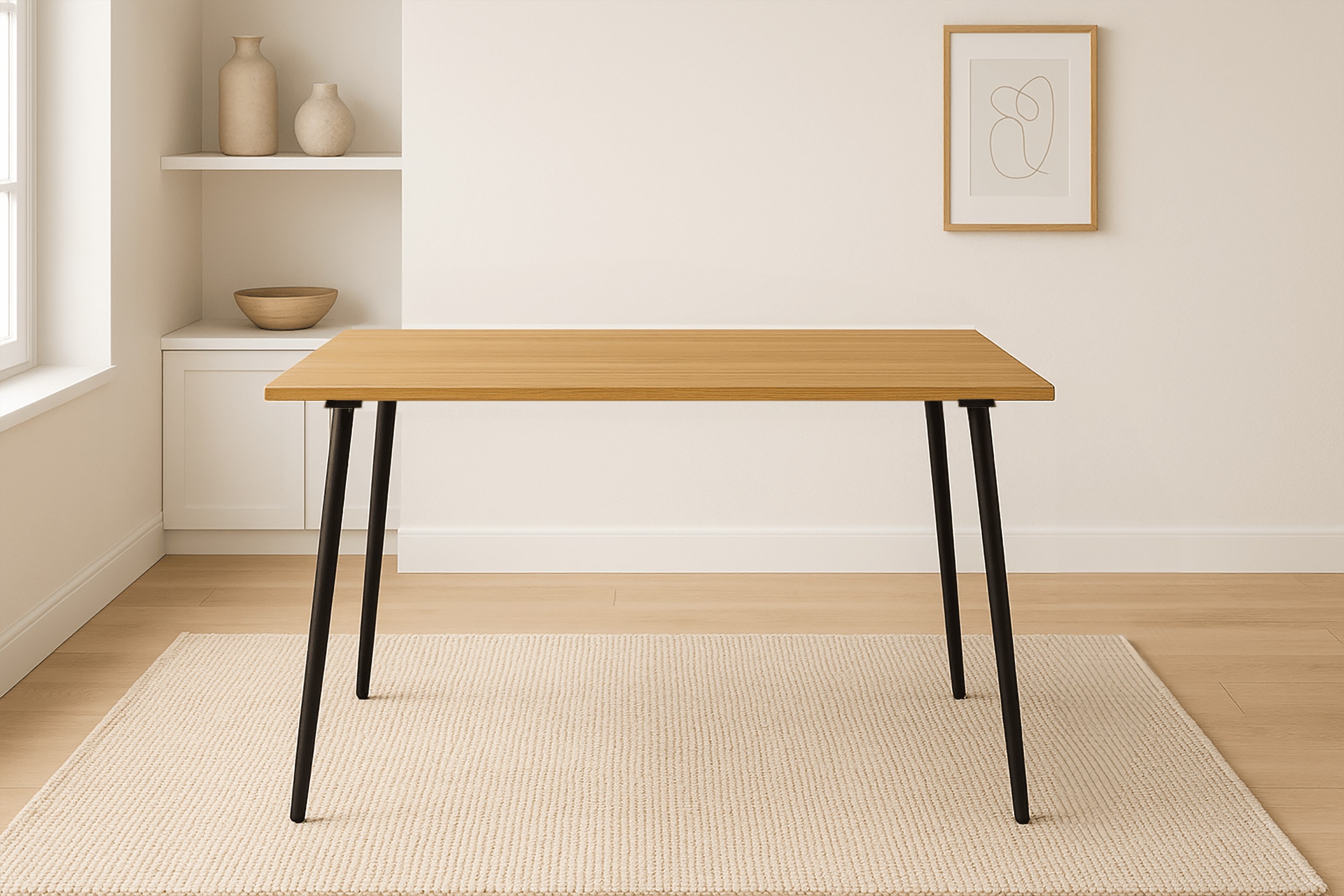 - Матеріал виготовлення: стільниця з МДФ, ніжки зі сталі – міцне та естетичне поєднання матеріалів.