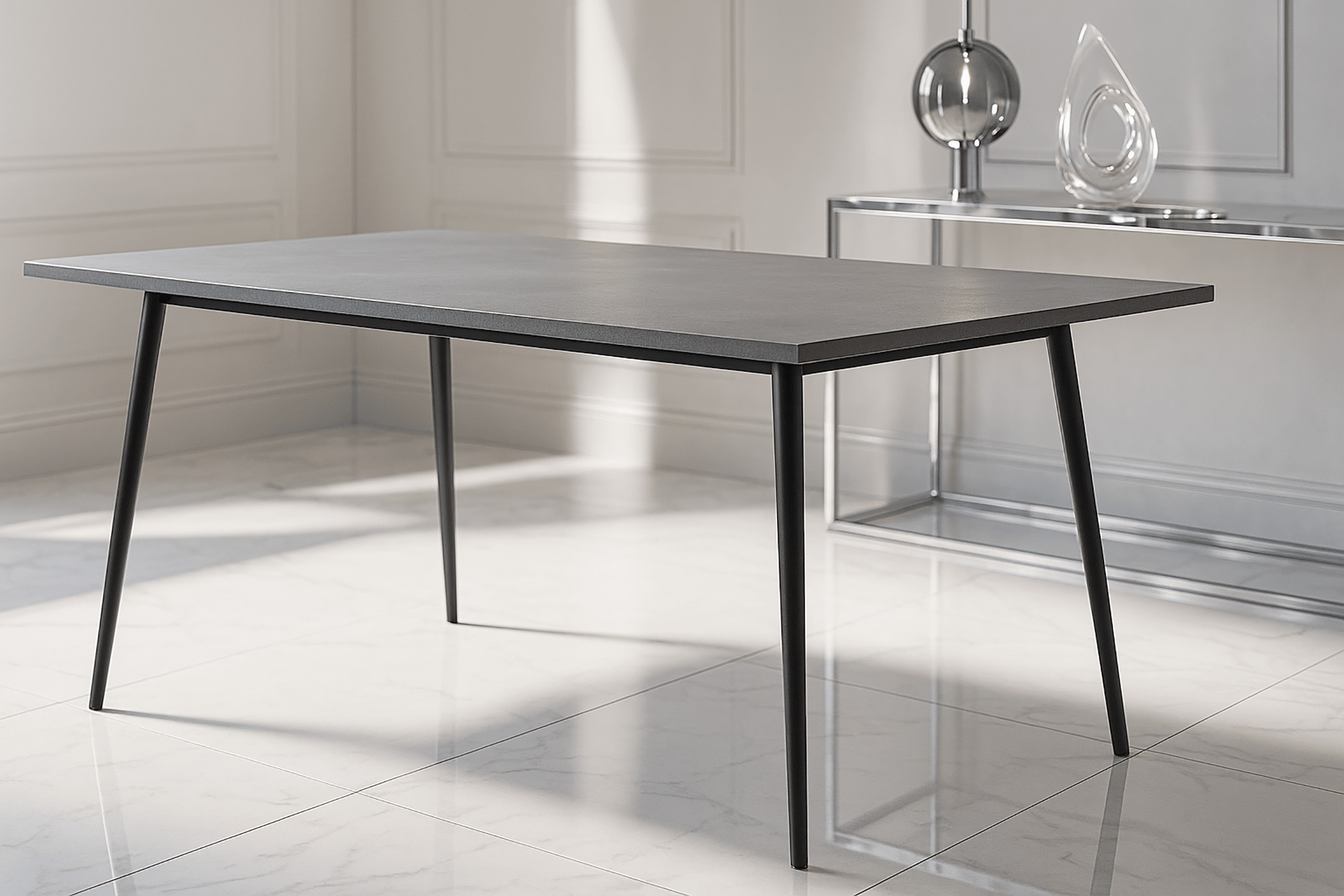 Сучасний стіл Ivo 140 поєднує елегантну стільницю з міцною сталевою конструкцією, ідеально пасуючи до вітальні, кухні та їдальні. Велика поверхня стільниці забезпечує зручність під час щоденних трапез та зустрічей.