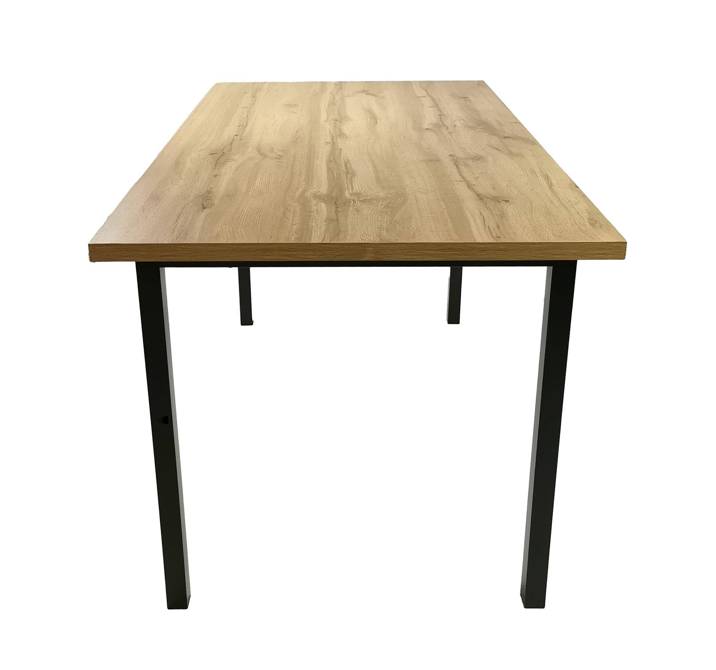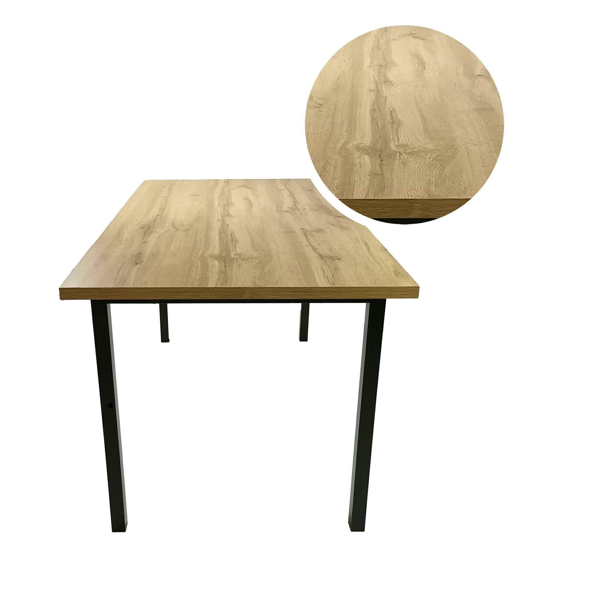 Стільниця кольору дуба виготовлена з МДФ, а сталеві ніжки з додатковими з'єднаннями, що підсилюють конструкцію, гарантують стабільність і міцність. Ніжки захищають підлогу від подряпин.