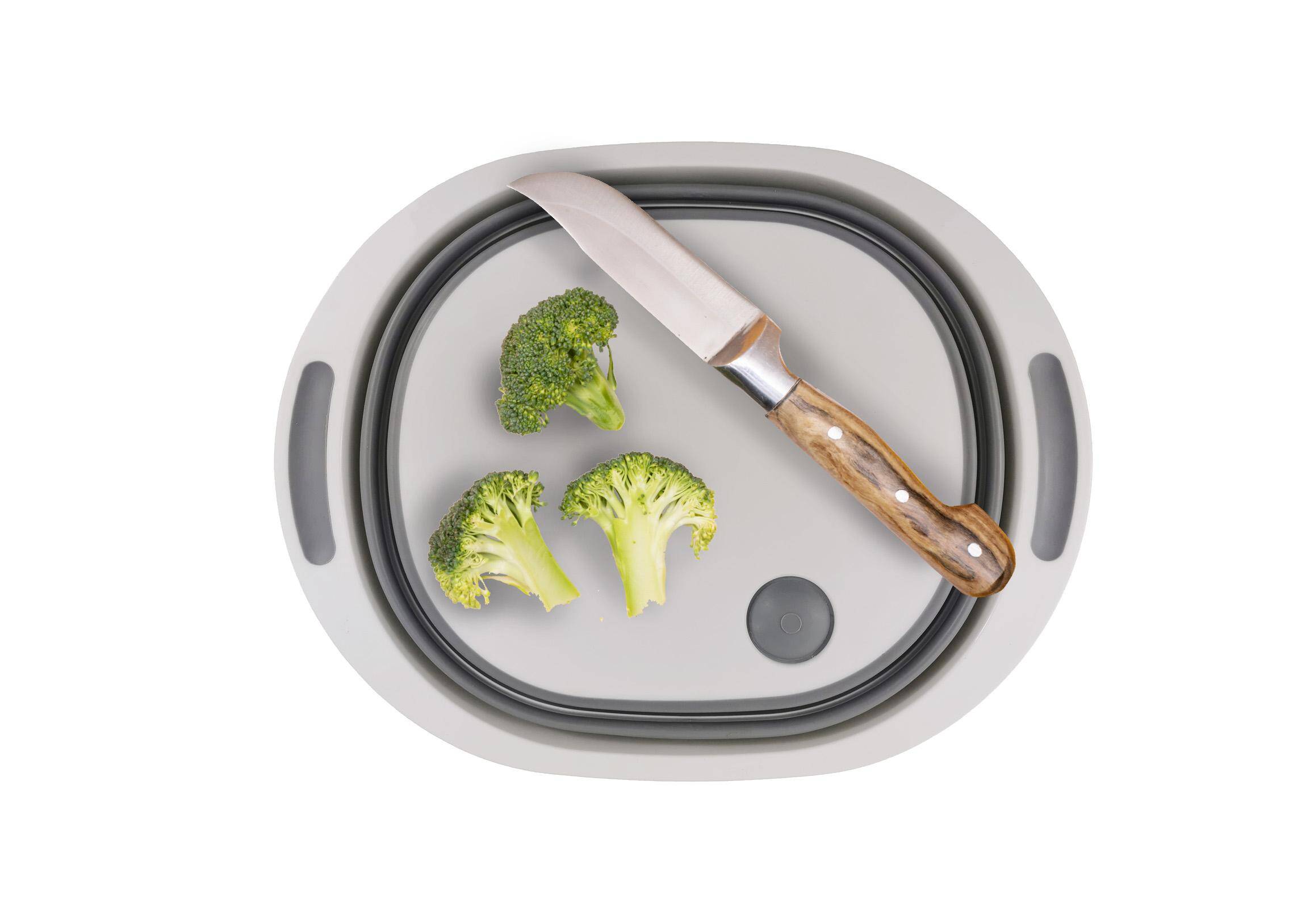 Практична та компактна силіконова миска, ідеальна для кухні та дому. Поєднує в собі функції піддону для стікання води та кошика, завдяки чому економить місце та полегшує щоденні справи, такі як миття овочів, фруктів або зливання води з макаронів. Чудово підходить для однокамерної мийки та для будь-якої кухні, де важлива функціональність.
