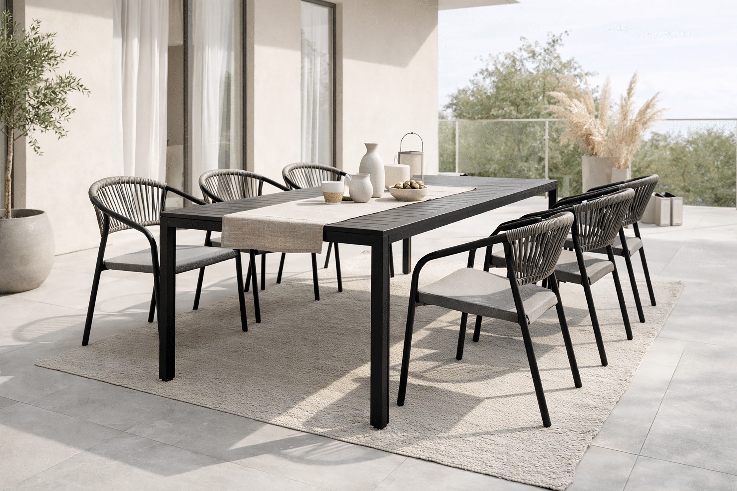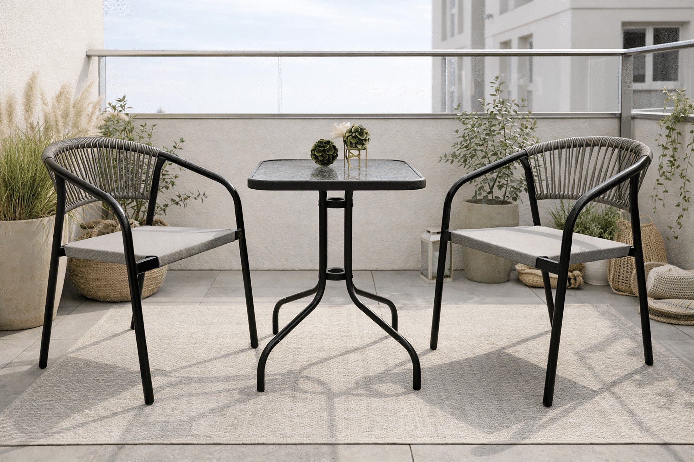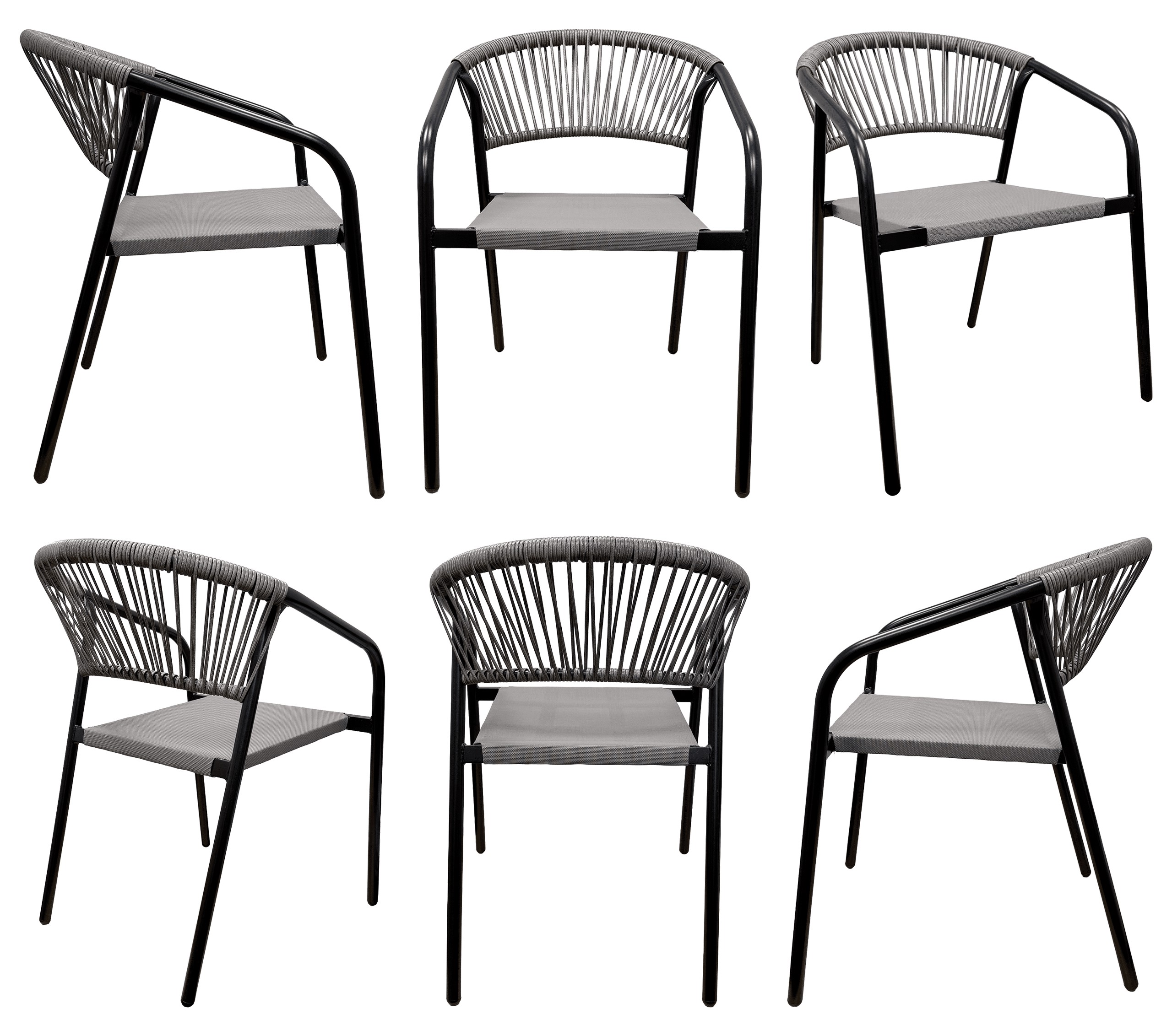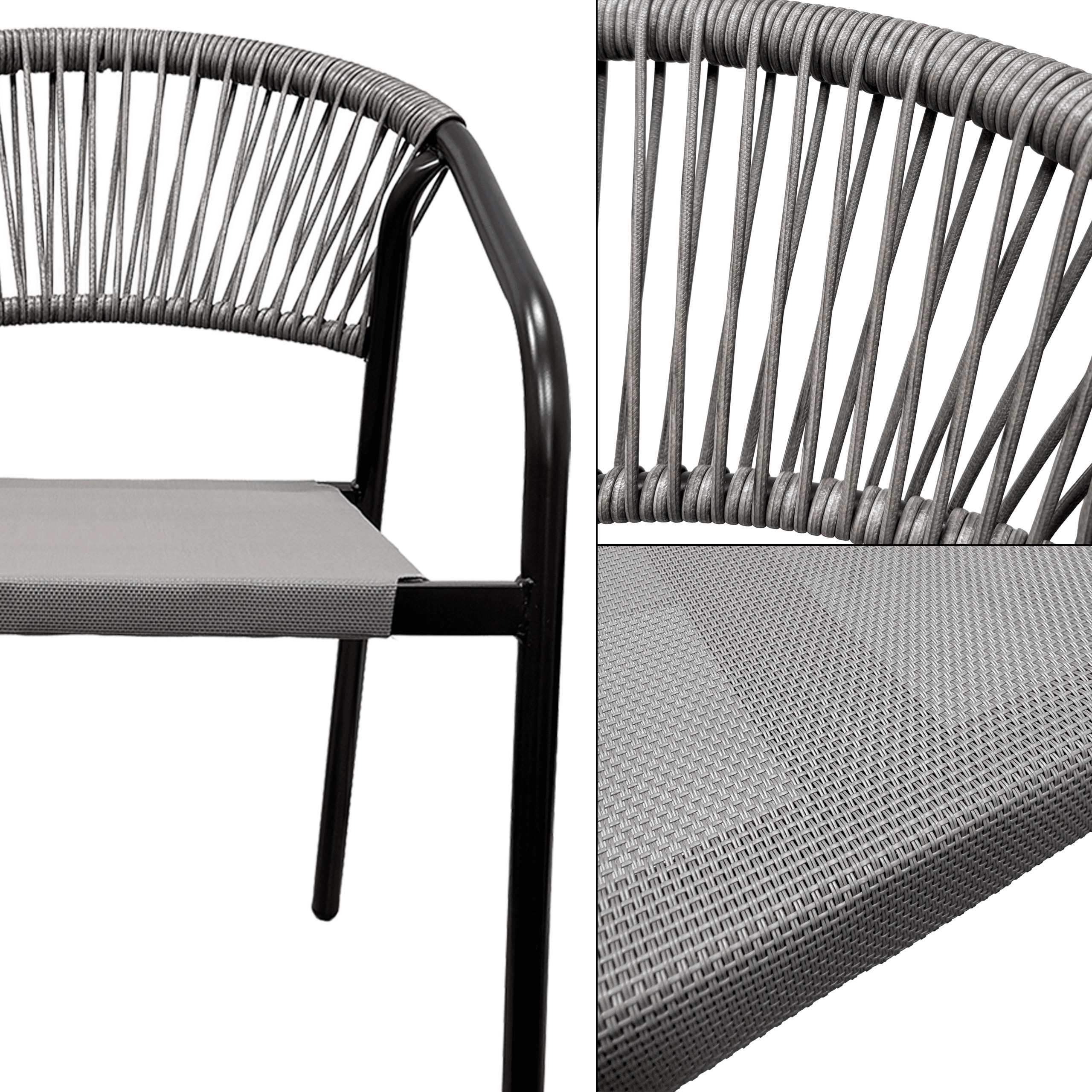 Стілець Portino у чорно-сірому кольорі ідеально підійде для тераси, балкона або саду, поєднуючи зручність використання з легким зберіганням.