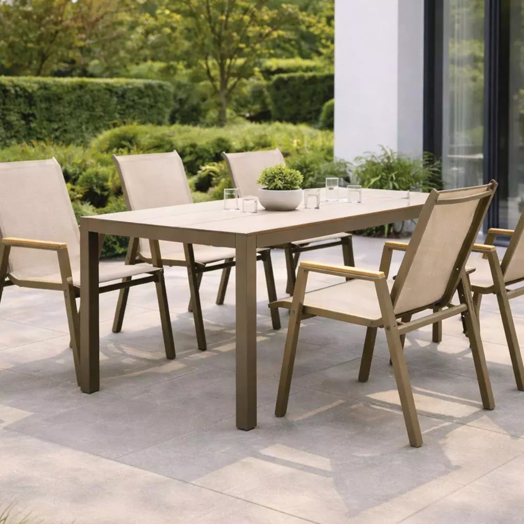 Стіл ALLEN PRO — це практичне рішення для саду, тераси, балкона або патіо, яке поєднує довговічність матеріалів з естетичним зовнішнім виглядом. Завдяки використанню алюмінію та стільниці з полівуду він чудово підійде для щоденного використання як на відкритому повітрі, так і в приміщенні.