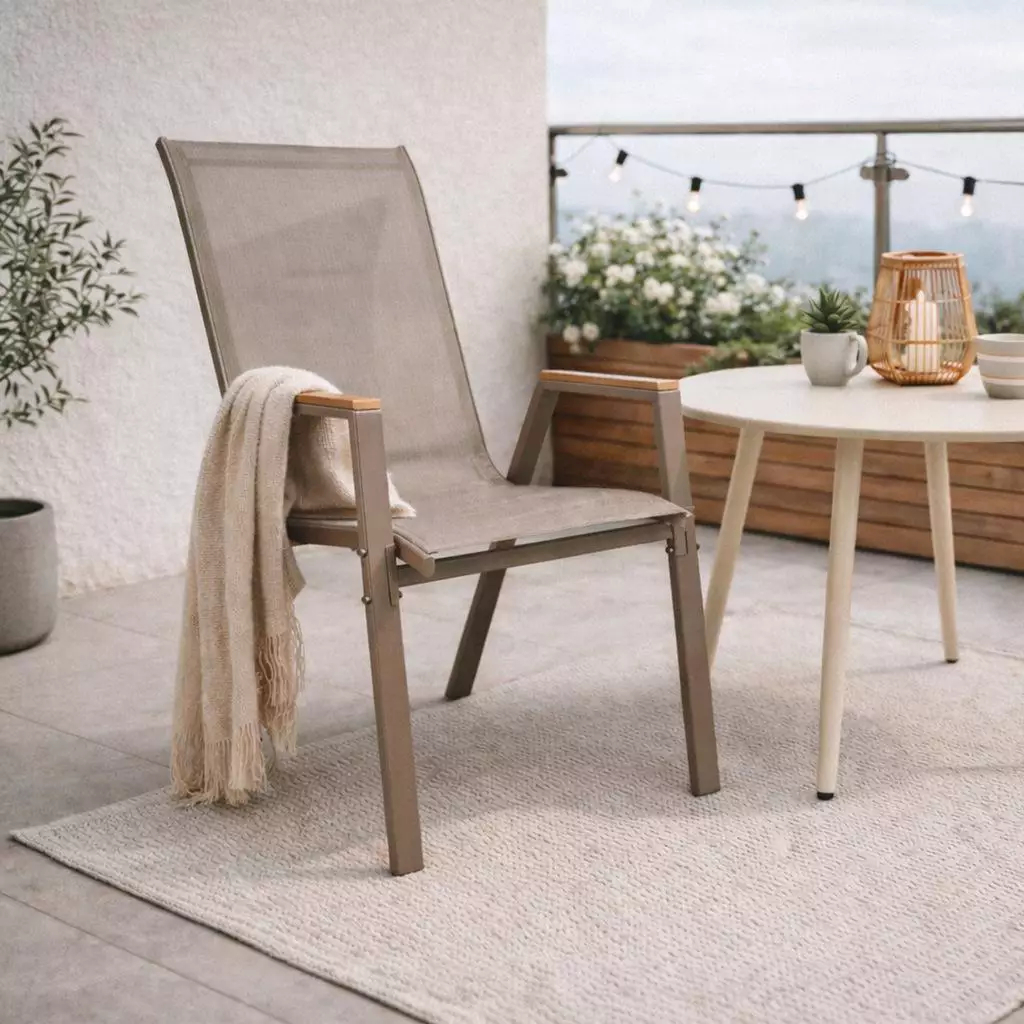 Сучасне садове крісло Pola KD кольору таупе — це функціональне рішення для тераси, балкона або саду. Проста форма та міцні матеріали роблять цю модель ідеальною як для щоденного використання, так і для зустрічей на свіжому повітрі.