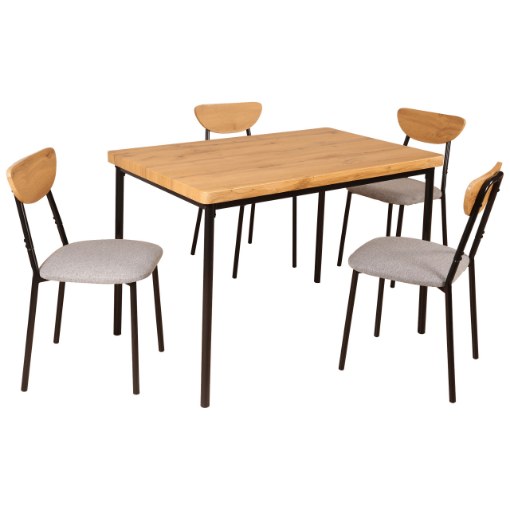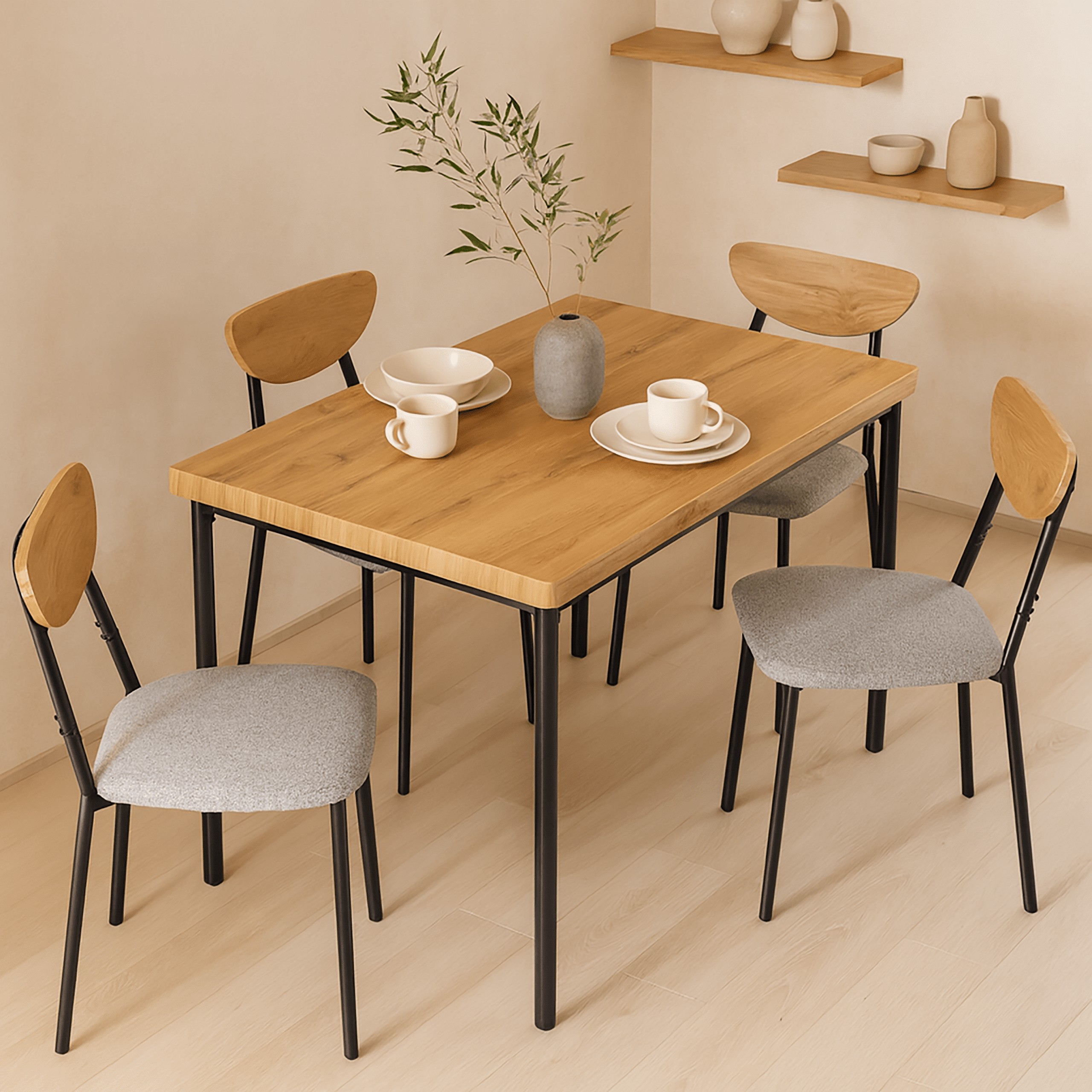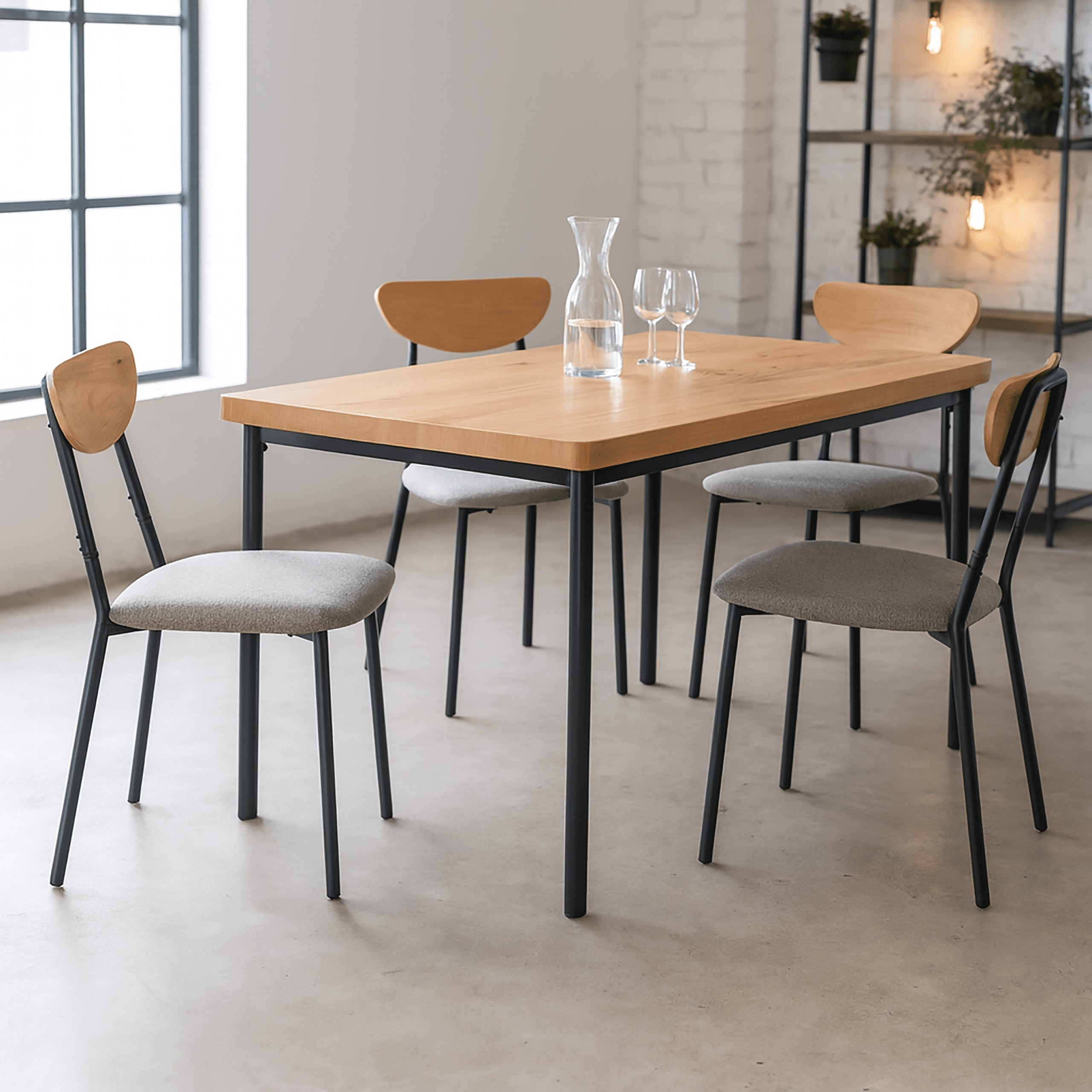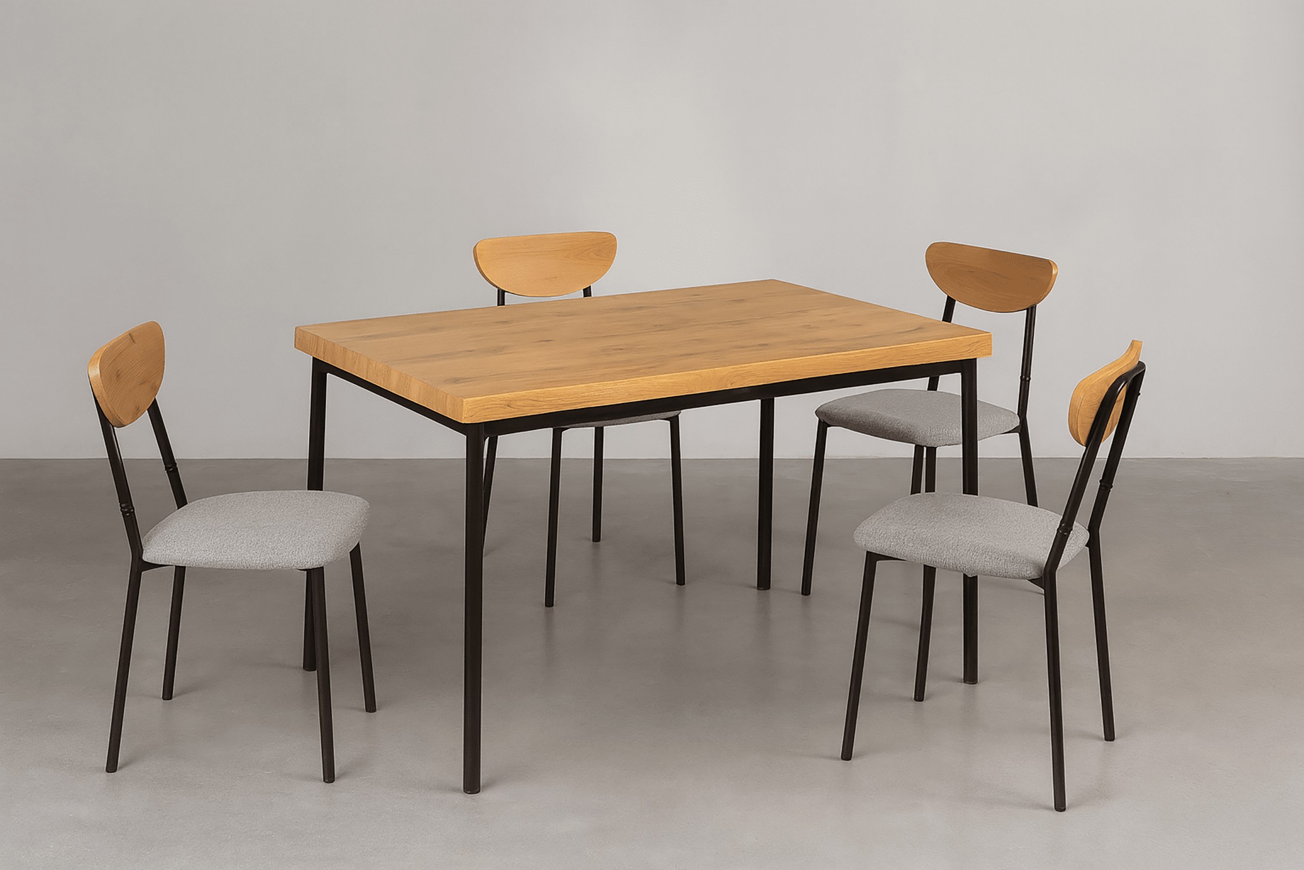 Комплект меблів VERO на 4 особи — це поєднання елегантності, сучасного дизайну та функціональності, яке ідеально пасує до будь-якого інтер'єру. Комплект складається з чотирьох ергономічних стільців та прямокутного столу, що робить його чудовим вибором для кухні, їдальні або вітальні.