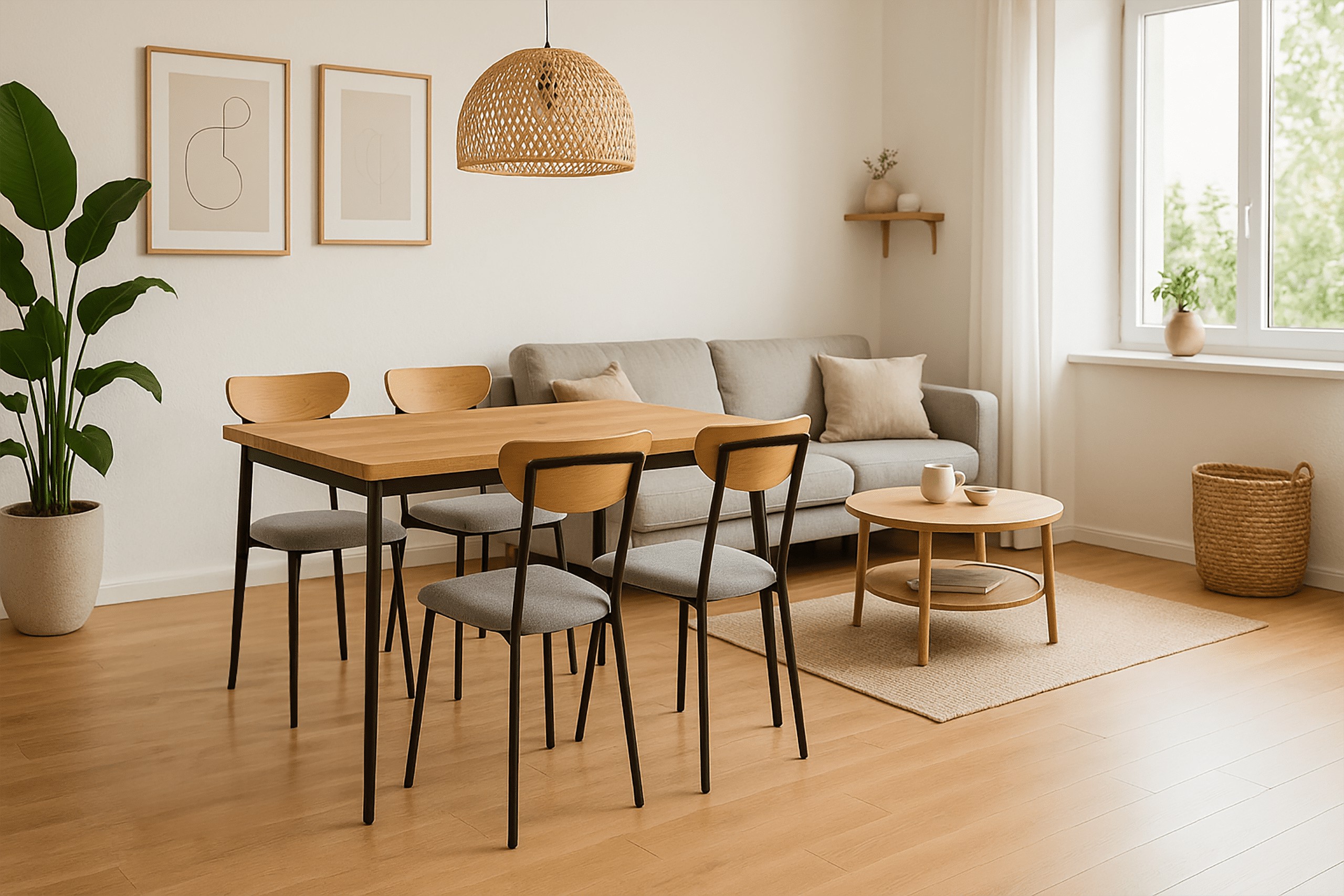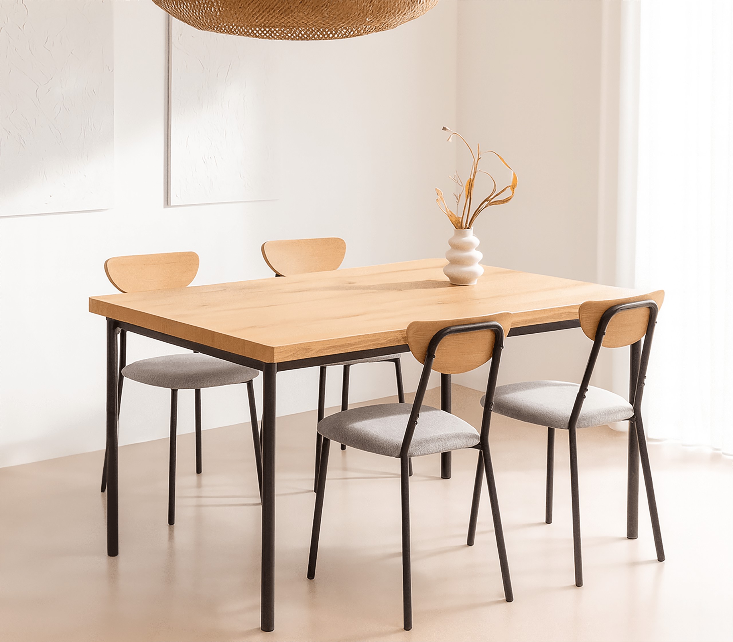 Прямокутна стільниця столу забезпечує більшу просторість, що робить його практичним рішенням для сімейних обідів та дружніх зустрічей. Світлий відтінок дуба додає затишку та тепла інтер'єру, а мінімалістичний дизайн пасує до різних стилів, таких як сучасний, скандинавський, лофт або класичний.