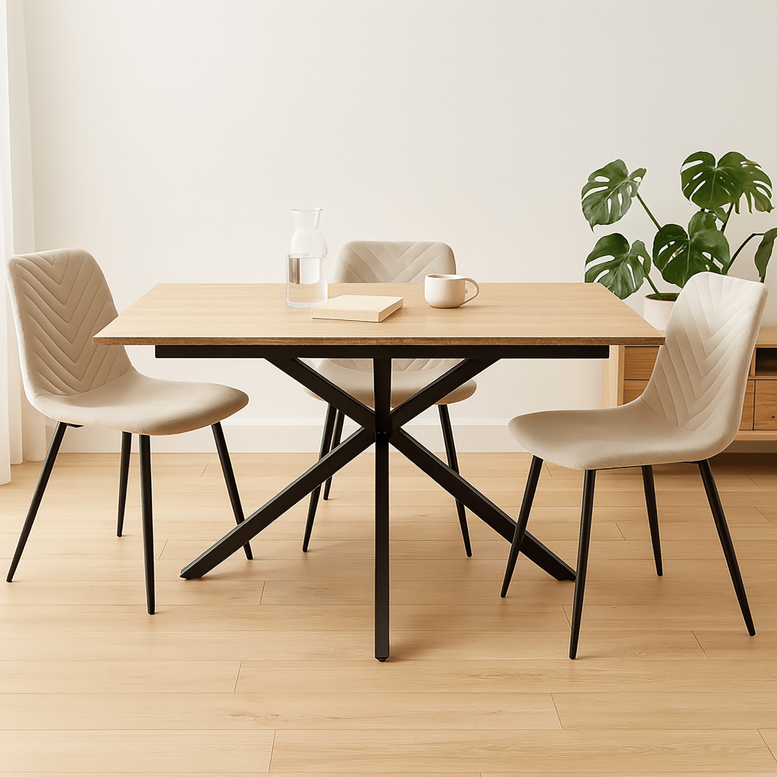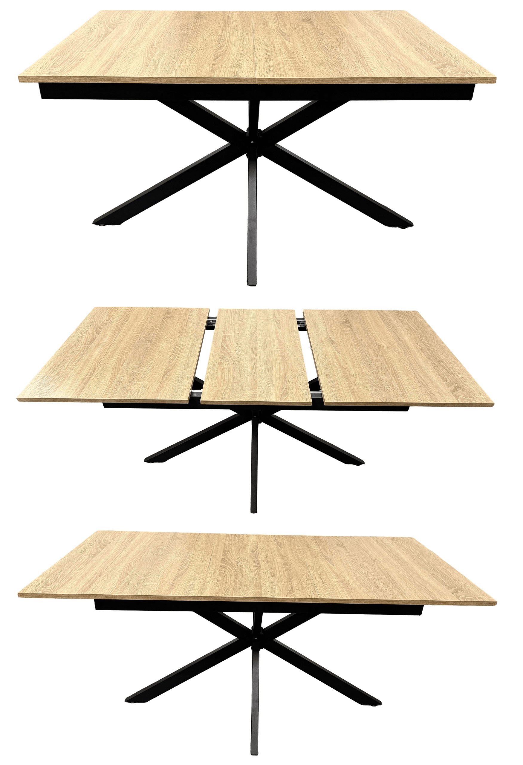 Розкладний стіл Julian поєднує елегантну широку стільницю кольору золотого дуба з сучасними сталевими ніжками, пофарбованими порошковою фарбою. Ідеально підходить для кухні, їдальні та вітальні.