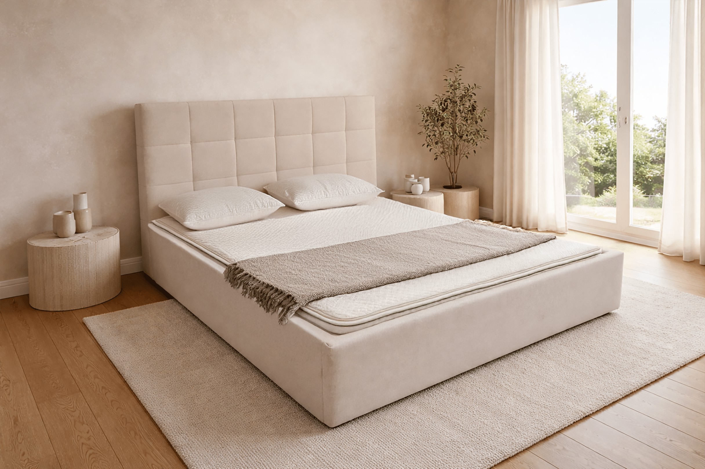 Оббите ліжко LT104 Modulo у версії з вищим узголів'ям — це поєднання елегантної форми, функціональних рішень та комфорту щоденного відпочинку, ідеальне для сучасних і класичних спалень.