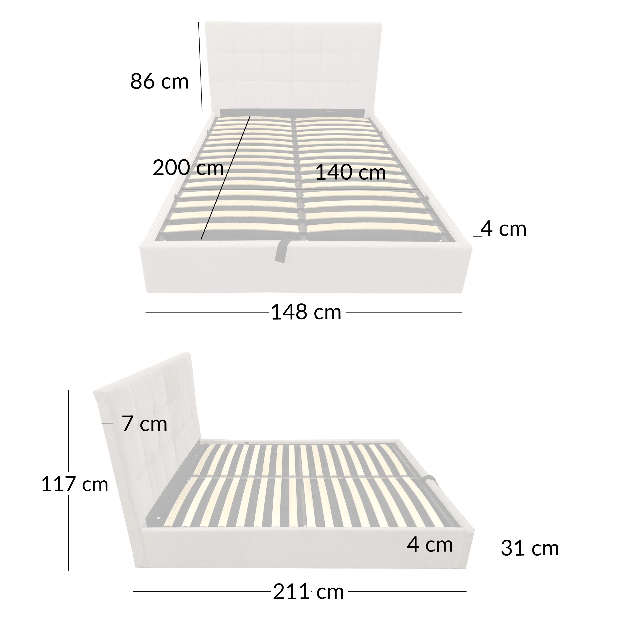 Модель LT104 Modulo розміром 140x200 з підвищеним узголів'ям — це практичний вибір для тих, хто цінує комфорт сну, естетичне оздоблення та додатковий простір для зберігання речей, що дозволяє створити цілісну та функціональну спальню.