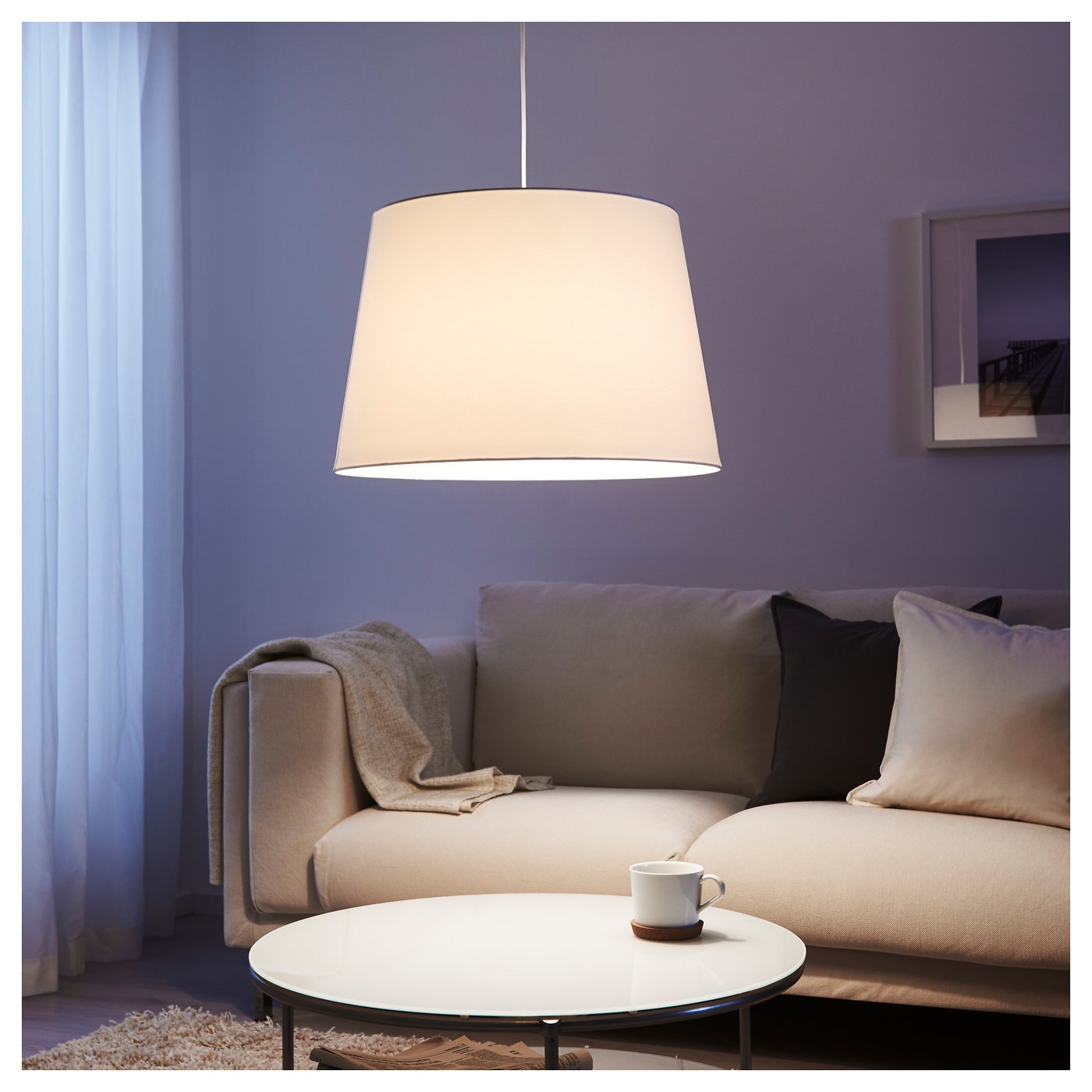 Текстильний абажур, м'яко розсіює світло, створює в кімнаті затишну і розташовує атмосферу.