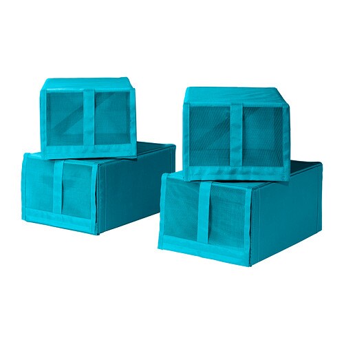 Через сетку видно, какая обувь хранится внутри. Окошко легко открывается и закрывается благодаря застежке-липучке. Все четыре ящика подходят к каркасу гардероба шириной 100 см. Когда коробка вам не нужна, ее можно сложить. Для этого нужно открыть молнию на дне коробки.