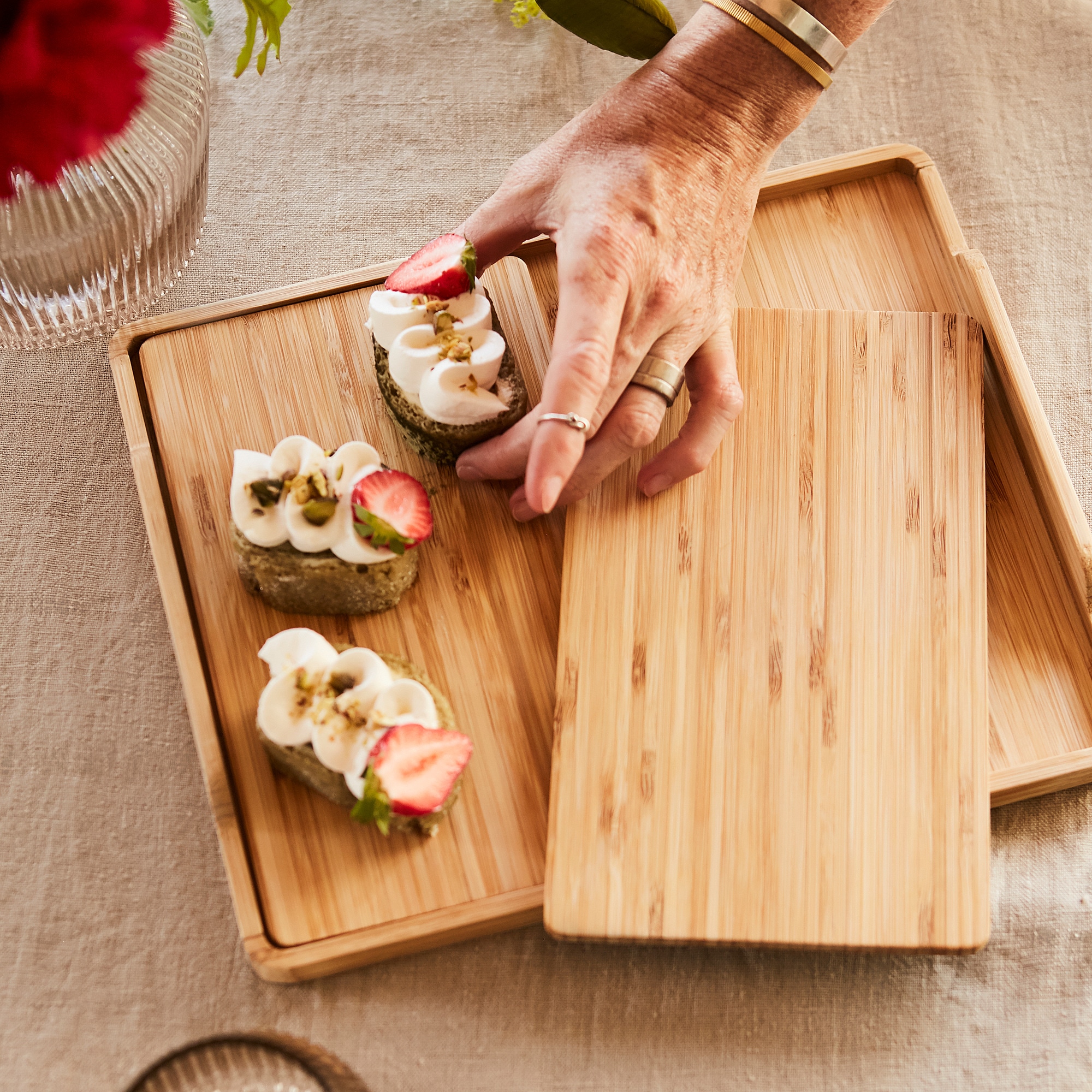Виготовлений з бамбука, стійкого та легкого в догляді природного матеріалу.