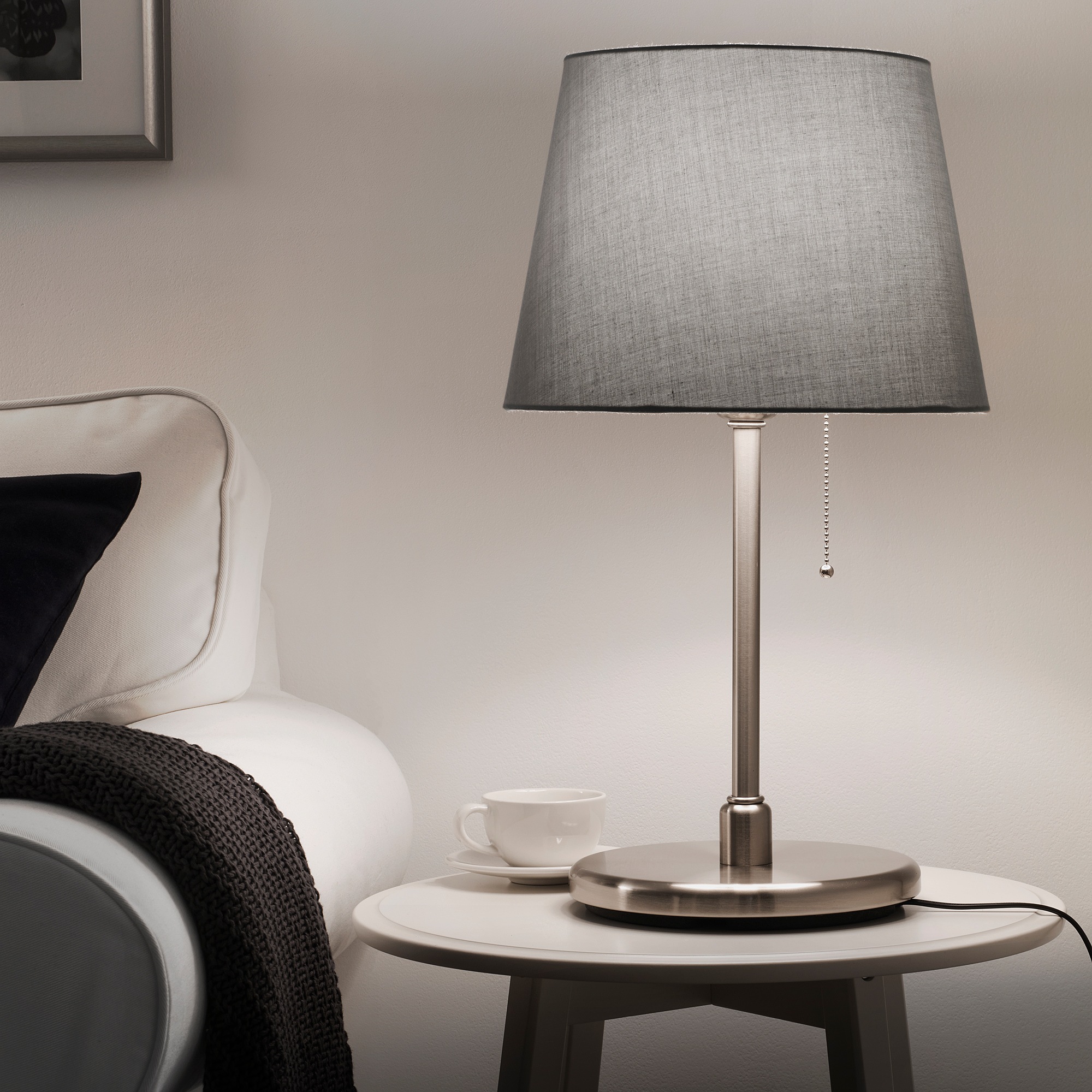Текстильний абажур, м'яко розсіює світло, створює в кімнаті затишну і розташовує атмосферу.