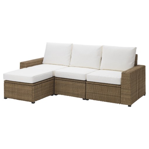 Секція з підлокітником, садом: Основні частини: поліетиленовий пластик, поліпропіленовий пластик Рама: сталеве, поліефірне порошкове покриття Розділ 1-місний, сад / табурет, сад: Основні частини / Панель для брюк: Поліетиленовий пластик, Поліпропіленовий пластик Рама: сталеве, поліефірне порошкове покриття Еластичний матеріал: 100% нейлон Задня подушка, зовні: Наволочка: 100% поліестер Внутрішня тканина: нетканий поліпропілен Заповнення: поліефірні волокна Подушки сидінь, сад: Наволочка: 100% поліестер Внутрішня тканина: нетканий поліпропілен Заповнення: поліефірна вата Наповнювач: поліуретанова піна 25 кг / м3