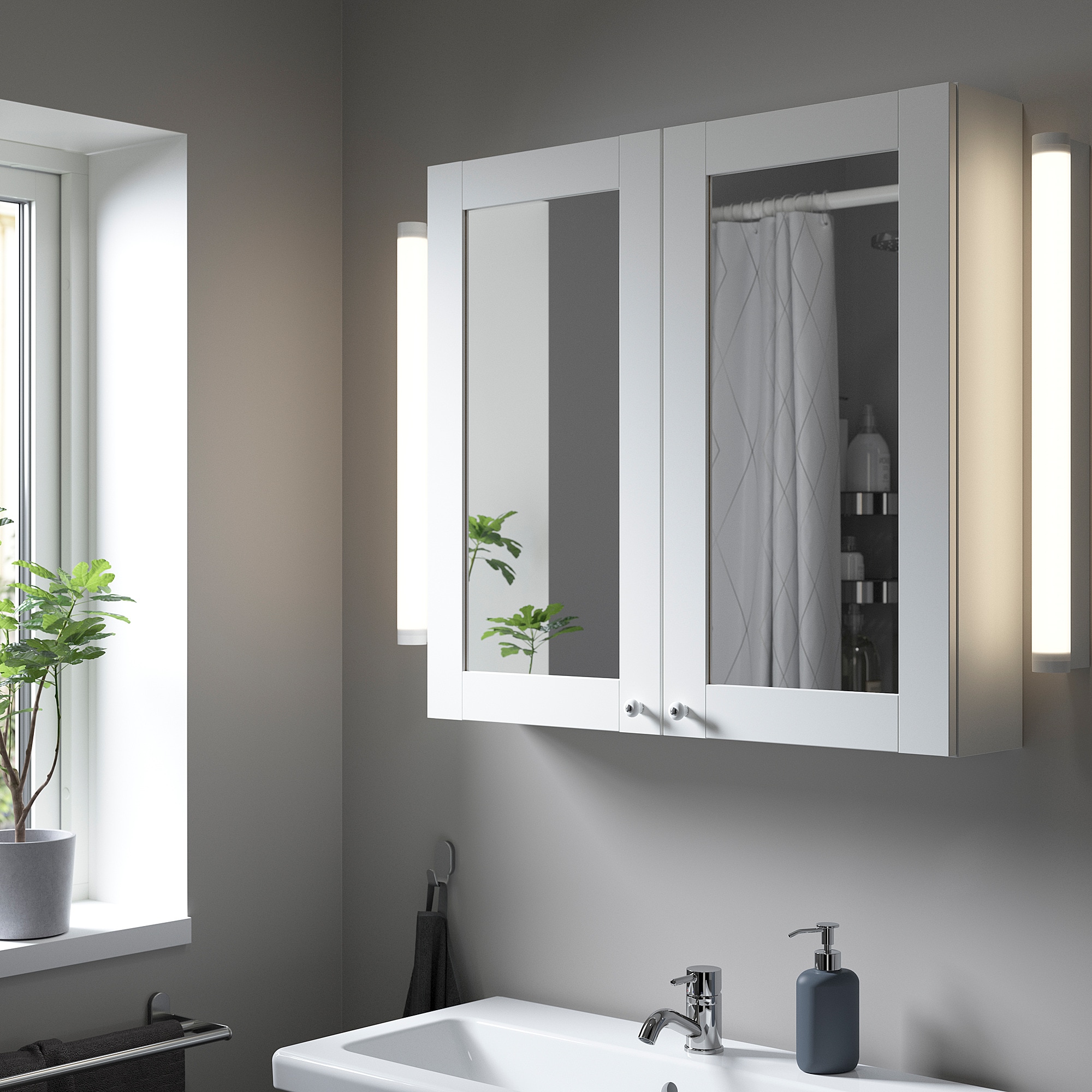 Упаковки: 3Загальна вага упаковки: 18.4 кг ІКЕА ENHET ЕНХЕТНавісна шафа + 2 полички, білий, 80х15х75 смАртикульний номер: 40440441Ширина: 40 смВисота: 7 смДовжина: 83 смВага: 11.1 кгІКЕА ENHET ЕНХЕТДверцята дзеркальні, біла рамка, 40х75 смАртикульний номер: 10457739Ширина: 40 смВисота: 2 смДовжина: 81 смВага: 3.6 кгКількість: 2