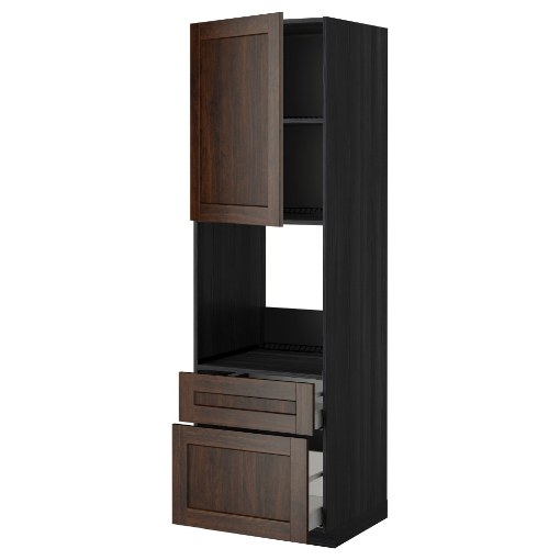 висока шафа для холодильника, кухонні плити, імітація чорного дерева, 60х60х200 см
