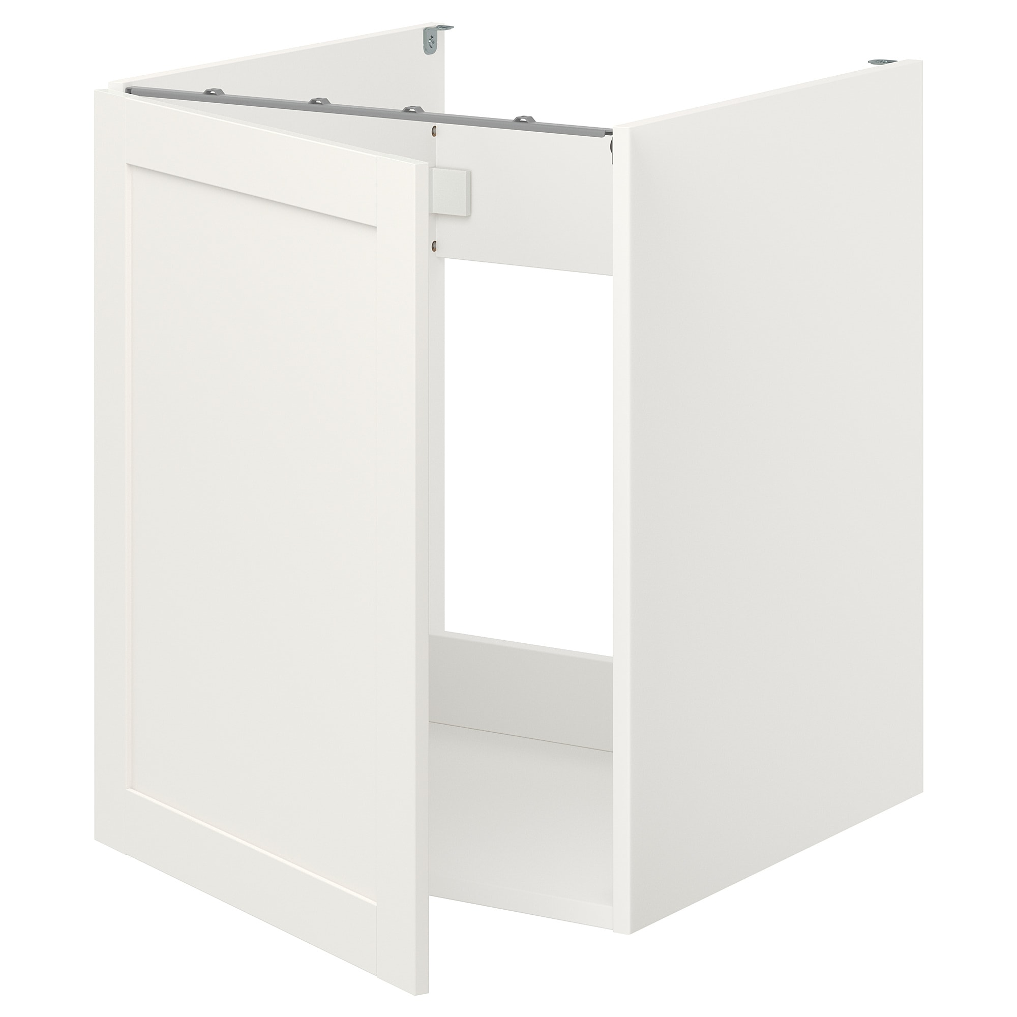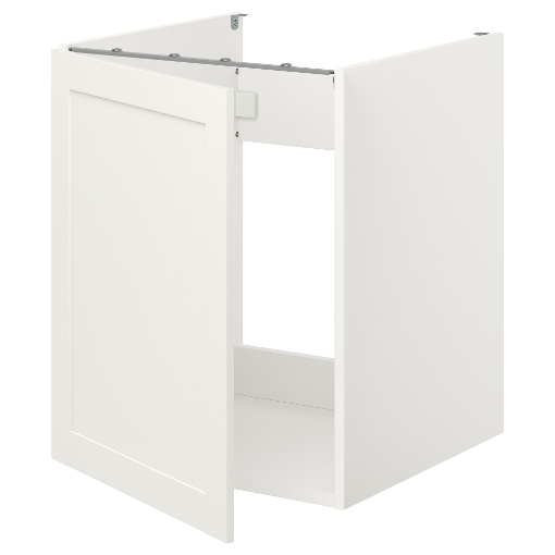 Серія ENHET дозволяє легко створити нове рішення на кухні. Ця підлогова шафа з полицею ідеально підходить для чаш або невеликих приладів, а позачасові двері з білої рами підходять під будь-який стиль.