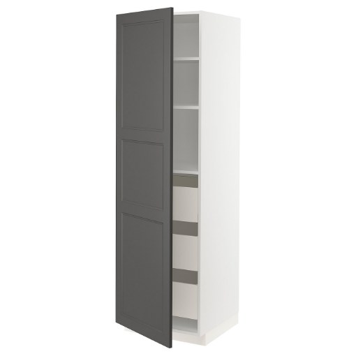 Упаковки: 11Загальна вага упаковки: 96.83 кг ІКЕА AXSTADДверцята, темно-сірий, 60х200 смАртикульний номер: 60454333Ширина: 62 смВисота: 3 смДовжина: 209 смВага: 17.3 кгІКЕА METOD МЕТОДКаркас високої шафи, білий, 60х60х200 смАртикульний номер: 60212565Ширина: 61 смВисота: 7 смДовжина: 210 смВага: 44.5 кгІКЕА MAXIMERA МАКСІМЕРАШухляда, високий, білий, 60х60 смАртикульний номер: 90204639Ширина: 50 смВисота: 8 смДовжина: 57 смВага: 7.4 кгКількість: 3 ІКЕА UTRUSTA УТРУСТАФронтальна панель для шухляди, високий, білий, 60 смАртикульний номер: 50204655Ширина: 22 смВисота: 2 смДовжина: 57 смВага: 1.3 кгКількість: 3 ІКЕА UTRUSTA УТРУСТАЗавіса з вбуд амортизатором д/кухні, сірий, 153 °Артикульний номер: 10427262Ширина: 22 смВисота: 6 смДовжина: 26 смВага: 0.4 кгКількість: 2 ІКЕА UTRUSTA УТРУСТАПолиця, білий, 60х60 смАртикульний номер: 50205612Ширина: 58 смВисота: 4 смДовжина: 58 смВага: 8 кг